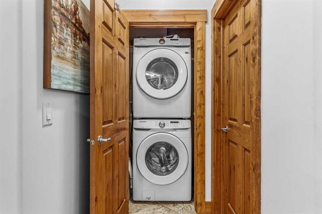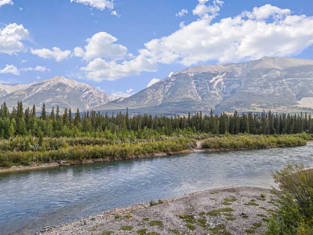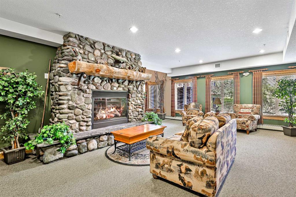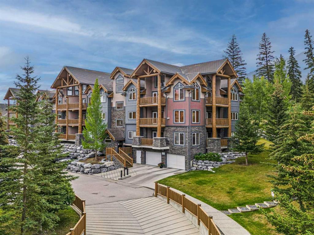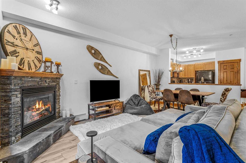 Experience the ultimate mountain escape with breathtaking views, sunshine, and a newly renovated space. This unit comes FULLY FURNISHED with impeccable decor and nothing left to do but move in and enjoy! Great room concept and modern touches from new fixtures, paint and counter tops. .Open concept kitchen with an eat up bar overlooking a spacious dining area and great room with corner gas fireplace. Step onto a private ground level patio with amazing views, BBQ set up and rock wall landscape surround. Retreat to the primary bedroom with ensuite bathroom and large window looking onto forest and mountains. A convenient guest room/den has its own 3 piece bathroom. Walk the grounds and discover the 'secret beach' along the river, enjoy the quiet or join in for some of the social activities. Your condo fees cover all essentials—gas, power, heat, and water—plus grant you access to an upscale clubhouse featuring a pool, hot tub, library, theatre, party room, boardroom, and guest quarters. This complex offers guest suite accommodation for owner's guests and some pretty amazing spaces to entertain in the clubhouse. Away from the busy of downtown Canmore, but close enough to walk or bike to on the paved trails along the river all the way to main street. NOT ELIGIBLE FOR SHORT TERM RENTALS.
