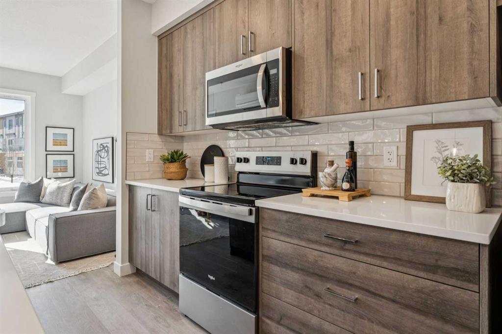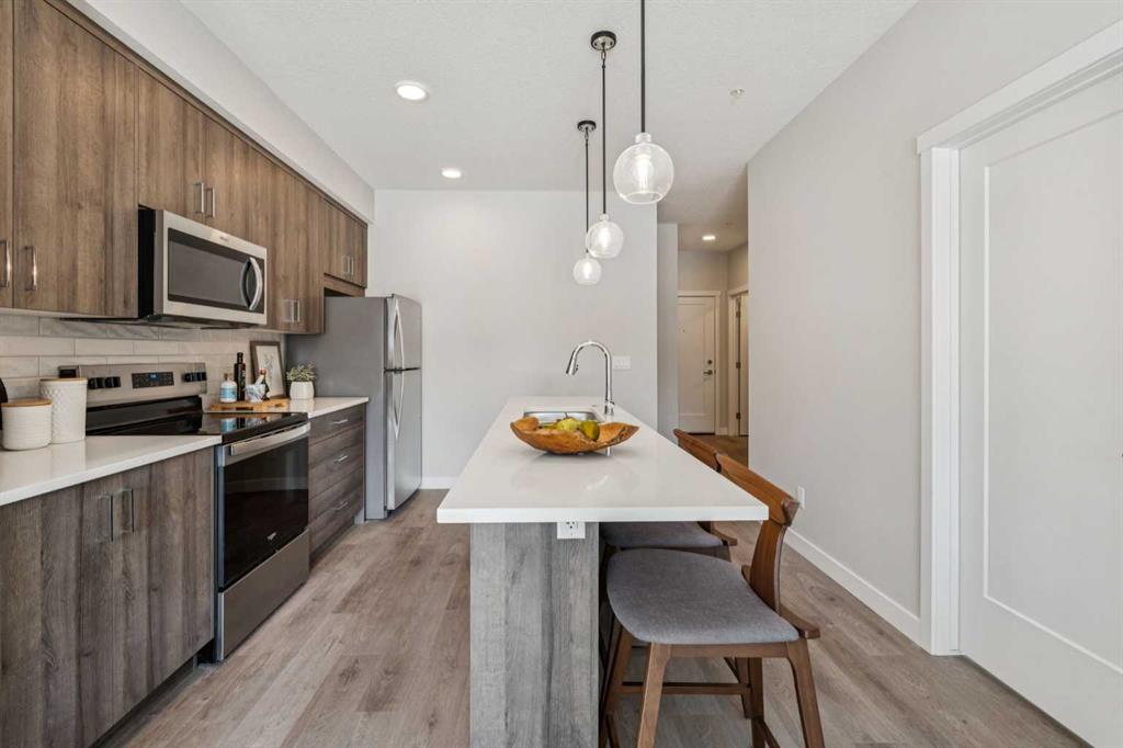 Welcome to this beautifully designed brand-new, never-lived-in 2-bedroom condo, offering modern comfort, stylish upgrades, and immediate possession. Inside, the open-concept layout features luxury vinyl plank flooring throughout, including the bedrooms, and a contemporary kitchen complete with quartz countertops, stainless steel appliances, and a central island with breakfast bar seating—perfect for everyday living and entertaining. The spacious living area is filled with natural light and flows seamlessly to the balcony, creating the perfect place to relax and take in the views. The primary bedroom features elegant tray ceilings and beautiful outlooks, while the second bedroom offers flexible space for guests, a home office, or additional living needs. A well-appointed full bathroom with quartz counters and a tub/shower combination, along with convenient in-suite laundry, adds to the home’s functionality. Air conditioning is also included, providing comfort during warm summer days. Additional highlights include titled underground parking and titled storage, visitor parking, and a pet-friendly building. Low monthly condo fees of $344.19 include heat, water, sewer, garbage and recycling, exterior maintenance, reserve fund contributions, snow removal, underground parkade maintenance, and professional management. Ideally located in Shawnee Slopes, residents enjoy easy access to Fish Creek Provincial Park, nearby LRT stations, Macleod Trail, and the shopping, dining, and everyday amenities of Shawnessy. Combining nature, convenience, and modern living, this home is an exceptional opportunity in one of Calgary’s most desirable communities.
