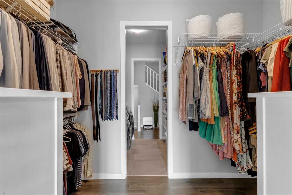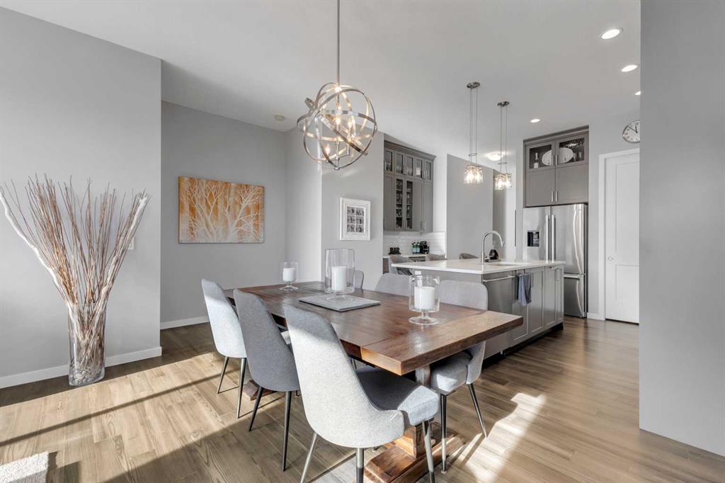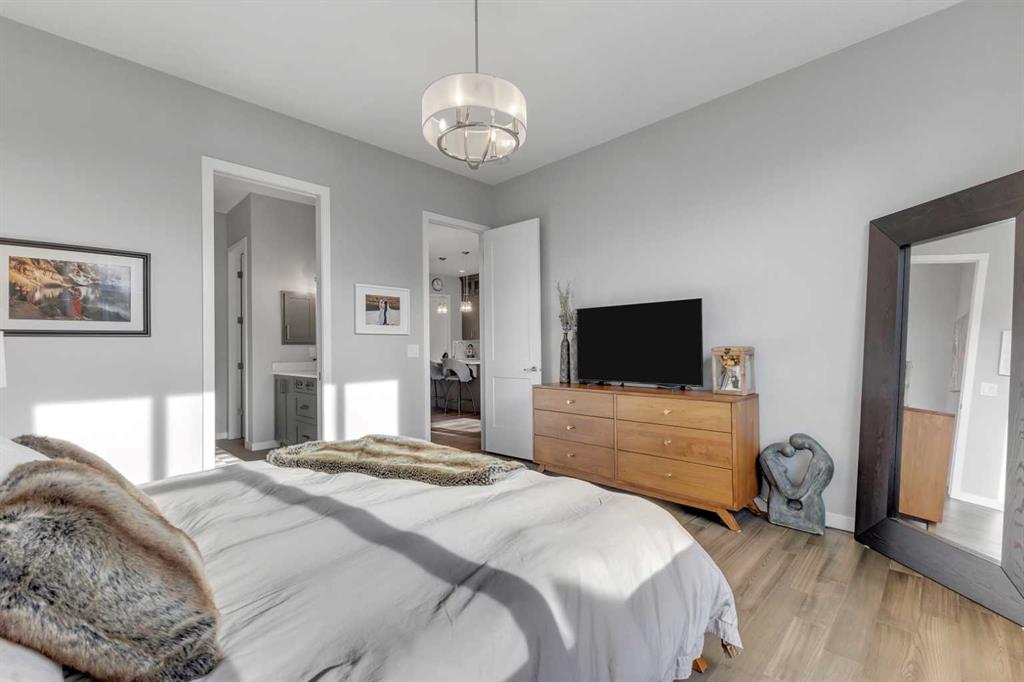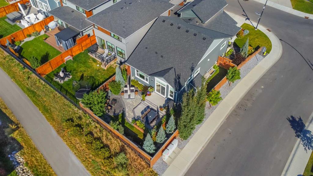 Welcome to this stunning luxury bungalow with an upper loft nestled in the heart of the highly sought-after Riverstone community in Cranston. Surrounded by nature and located along the edge of the Bow River, Riverstone offers breathtaking scenery, tranquil walking paths, and an unmatched sense of peaceful living. Perfectly positioned on a corner lot backing directly onto a pathway, this exceptional home offers the rare combination of refined indoor living and serene outdoor surroundings. With over 2,900 sq ft of developed living space this thoughtfully designed home offers a total of five bedrooms, making it ideal for both growing families and those looking to downsize. Step inside to an inviting open-concept layout highlighted by wide-plank flooring, soaring 10-foot ceilings, and elegant 8-foot doors throughout the main level. Natural light floods every corner through the array of additional east facing windows. The expanded gourmet kitchen features a sprawling island, beautiful quartz counters, upgraded stainless steel appliances, a beverage fridge, large pantry, and custom ceiling height cabinets - perfectly designed for those who like to cook and entertain. The dining area easily accommodates larger dinner gatherings and flows seamlessly into the spacious great room with views of the perfectly manicured back yard. The primary suite is a true sanctuary, complete with a luxurious ensuite that features dual vanities, a fully tiled walk-in shower, a soaker tub, and a walk-through closet connecting to your main floor laundry room. This home also features a rare and highly sought-after upper bedroom/loft with a walk-in closet, offering exceptional flexibility for use, including as an office space. A stylish 2-piece powder room and large mudroom complete the main level. The fully finished lower level expands the home’s living space with a large open recreation and family area, perfect for movie nights or entertaining. In-floor heating throughout ensures year-round comfort, while three additional bedrooms and a full four-piece bathroom offer flexible options for guests, teens, or extended family. The backyard is a professional masterpiece featuring a large tiered deck, a patio, shed, and a cozy firepit area. An abundance of trees, shrubs, and vibrant perennials are perfectly arranged to create both beauty and a serene, private space for relaxation. This home truly reflects pride of ownership; every feature is thoughtfully designed and maintained to the highest standards. Additional upgrades including central A/C, exterior security cameras, extended garage, 36" bathroom vanities, and high-end lighting, enhance this home's beauty.