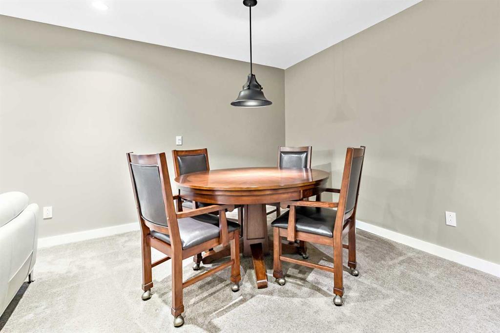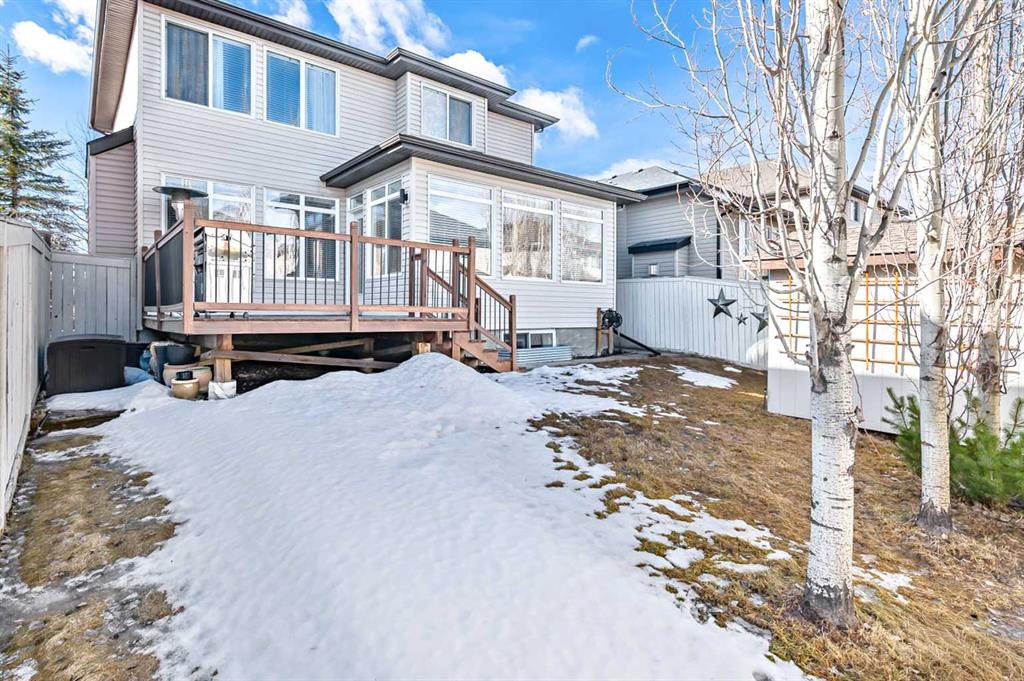 Welcome to this beautifully maintained two-storey home offering the perfect blend of space, comfort, and functionality in a highly desirable location. A dramatic vaulted ceiling entrance and gleaming hardwood floors create an impressive first impression the moment you step inside. The bright and inviting main floor features a spacious living room with a large window and cozy gas-burning fireplace, filling the home with natural light and warmth. The open-concept kitchen is designed for both everyday living and entertaining, complete with stainless steel appliances, gas stove, central island, and a convenient walk-through pantry leading directly to the mudroom/laundry area. The generous dining room, surrounded by additional windows, provides plenty of space for family meals and gatherings while allowing sunlight to pour throughout the home. Upstairs you’ll find a versatile loft with custom built-ins, ideal for a home office, study area, or reading nook. The upper level also features three generously sized bedrooms, including a spacious primary suite with a walk-in closet and a luxurious 5-piece spa-inspired ensuite designed for relaxation. The fully finished basement expands the living space with a huge family room, bar area, fitness room, storage room, and rough-in plumbing for a future bathroom, offering excellent flexibility for growing families. Step outside to enjoy the fully landscaped backyard featuring a mature tree, oversized deck with gas BBQ line, and storage shed, perfect for entertaining or relaxing outdoors. Note: Central air conditioning and a double oversized attached garage with loft storage provide added comfort and convenience. Ideally located within walking distance to schools, playgrounds, shopping, public transit, and Fish Creek Park. This home shows extremely well with pride of ownership!