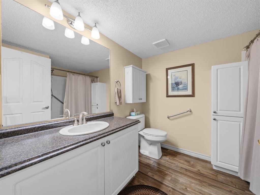 Welcome to comfortable, low-maintenance living in this well-kept 1 bedroom, 1 bathroom unit in Millrise’s desirable 60+ adult living. This well-maintained home offers a functional layout with thoughtful upgrades and features that make everyday living easy. The kitchen stands out with additional cabinetry for extra storage, a rare feature in this building, along with newer appliances (approximately 2 years old). Updated flooring flows through the space, creating a clean and modern feel. The living area is warm and inviting, with access to your private balcony, the perfect spot to enjoy your morning coffee or some fresh air. A Murphy bed adds extra flexibility, making it ideal for hosting guests or maximizing space when needed. The bathroom and bedroom also feature added cabinetry for enhanced storage, another thoughtful upgrade. This well-managed 60+ building offers fantastic amenities, including a library & puzzle room, exercise room, games room, car wash bay, guest suite, and a dining room with a $75/month mandatory meal plan (includes 3 flexible meals per month that can be accumulated). Residents enjoy regular social events and a welcoming community atmosphere. Located just minutes from LRT transit, shopping, and everyday amenities, this home offers both comfort and convenience in a fantastic location.