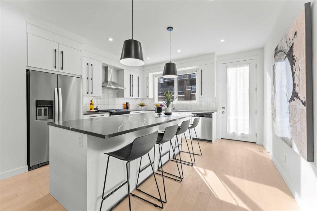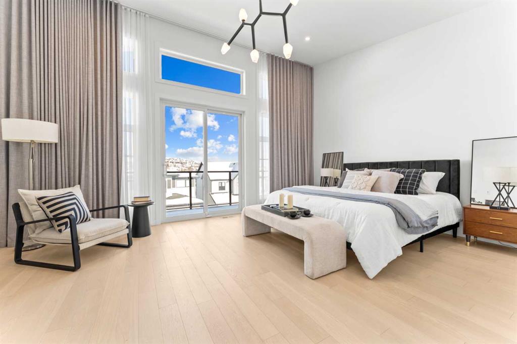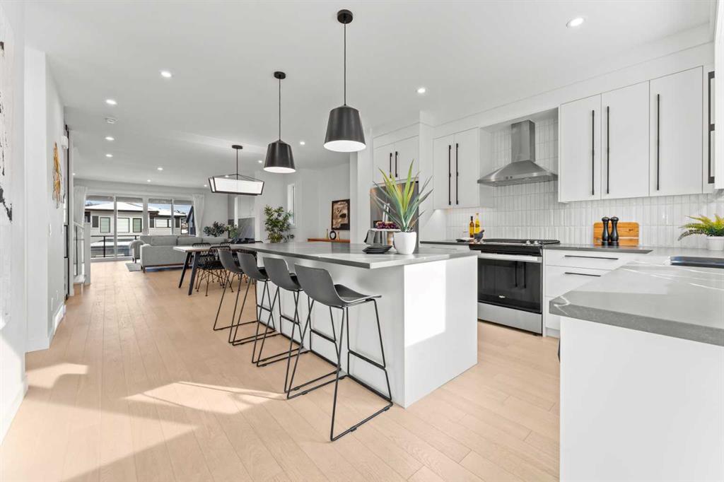 ***OPEN HOUSE – Sunday, March 15, 12:00 - 2:00 PM*** Discover upscale living in this beautifully finished TRUMAN home in the prestigious community of Timberline Estates. Ideally located near parks, pathways, schools, Aspen Landing Shopping Centre, Calgary Transit, the LRT, and with easy access to the mountains, this 3-bedroom home offers an exceptional blend of style, comfort, and convenience. The bright open-concept main floor is designed for both everyday living and entertaining, featuring 9-foot ceilings, engineered hardwood flooring, a private den, elegant powder room, and central air conditioning. The chef-inspired kitchen is a standout with full-height cabinetry, soft-close doors and drawers, quartz countertops, stainless steel appliances, a gas stove, built-in microwave, range hood, under-cabinet lighting, oversized island with seating, walk-in pantry, and dedicated wine room. The adjoining dining and living areas are equally impressive, complete with a wet bar and striking quartz fireplace feature wall. Step out to the covered main-floor balcony with BBQ gas line connection for easy indoor-outdoor living. Upstairs, the spacious bonus room with tray ceiling detail adds flexibility, while the primary suite offers a private retreat with its own covered balcony, custom walk-in closet with built-ins, and a spa-inspired 5-piece ensuite with freestanding soaker tub, tiled shower, dual vanities, and separate water closet. Two additional bedrooms, a full bathroom, and a well-appointed laundry room with built-in cabinetry and sink complete the upper level. The finished basement extends the living space with a movie room, wet bar, and full 4-piece bathroom, perfect for entertaining or relaxing. Additional highlights include painted ceilings, built-in bench seating at the lower entrance, a 200-amp electrical panel, and an oversized garage. A rare opportunity to own a thoughtfully upgraded home in one of Calgary’s most desirable west-side communities.