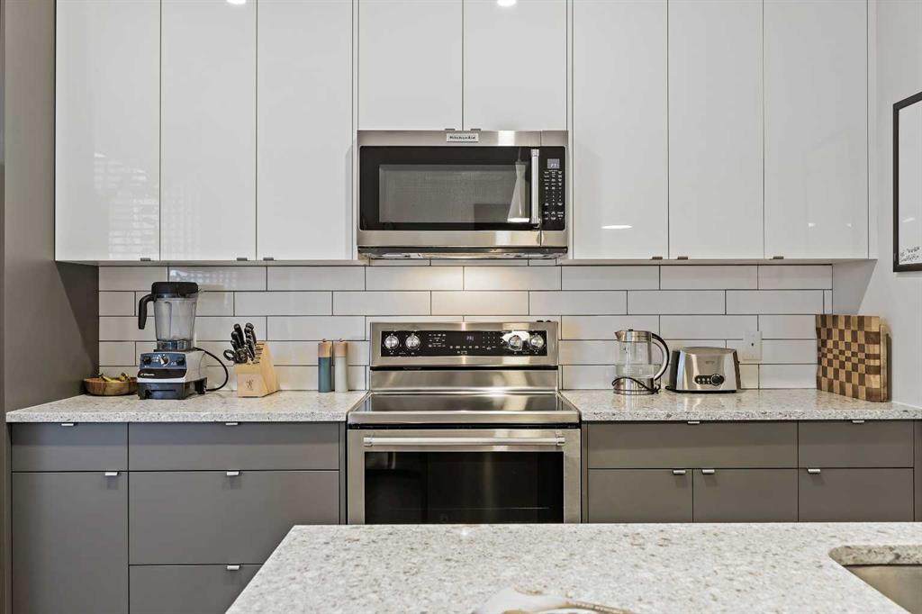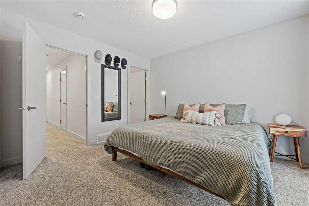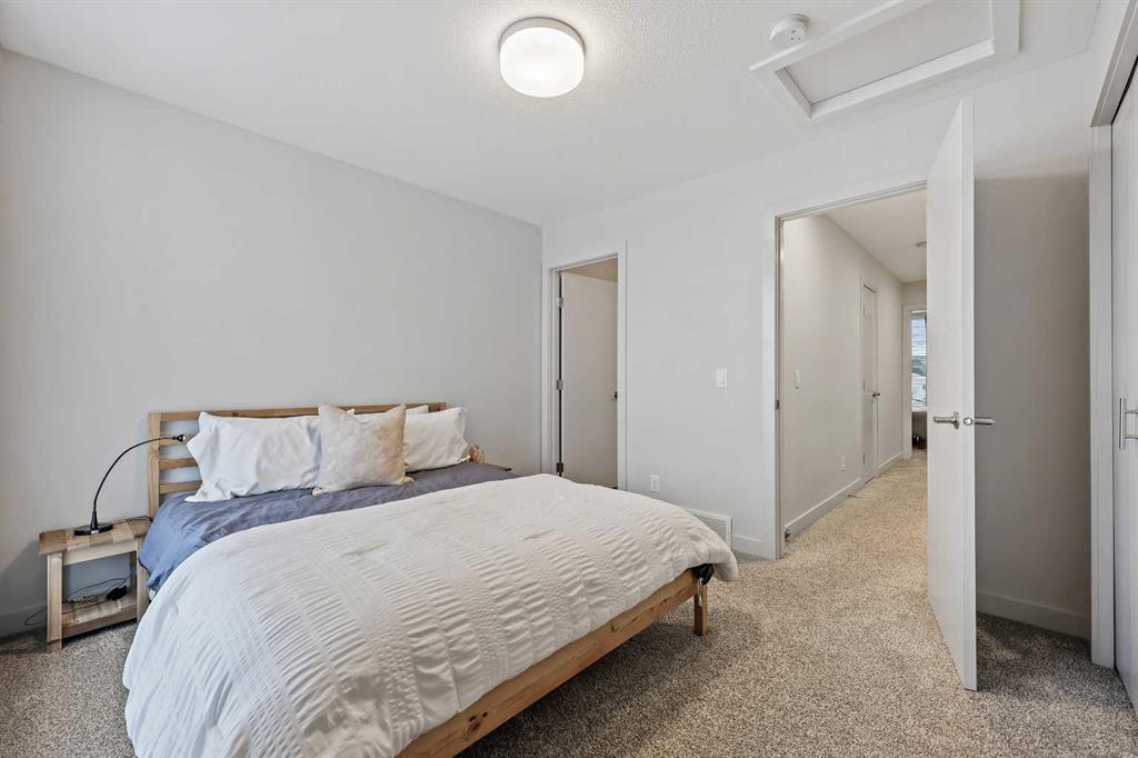 Thoughtfully designed and beautifully finished, this stylish Bowness townhome offers modern living with a functional layout and two spacious upper level primary suites. Enter through the attached garage to a welcoming main level that features a spacious foyer with ample closet space, a convenient powder room, and a versatile flex area—ideal for a home office, workout space or optional third bedroom. The main living area is on the second floor and highlights wide-plank flooring, oversized windows, and an open-concept design. A sleek and practical kitchen features quartz countertops, stainless steel appliances, and an oversized island with seating. Just off the kitchen, a west-facing covered balcony with a gas line offers the perfect spot to barbecue and unwind at the end of the day. The dining and living areas connect seamlessly creating a comfortable space for both everyday living and entertaining. Continue up to the third level and discover two large primary bedrooms, each with ample closet space and ensuites. A conveniently located laundry area and additional storage complete this level. There is central A/C for year-round comfort. Located in the heart of Bowness, you’re just minutes from the Bow River pathways, local cafés, and everyday community amenities. The Calgary Farmers’ Market West and Trinity Hills shopping area are a short drive away, and quick access to Stoney Trail, Sarcee Trail, and 16th Avenue makes getting downtown or across the city easy. A fantastic opportunity to enjoy modern living in the heart of Bowness!