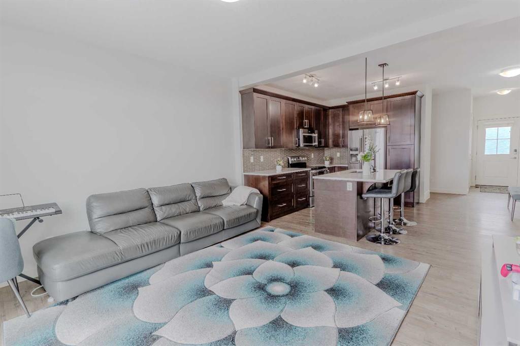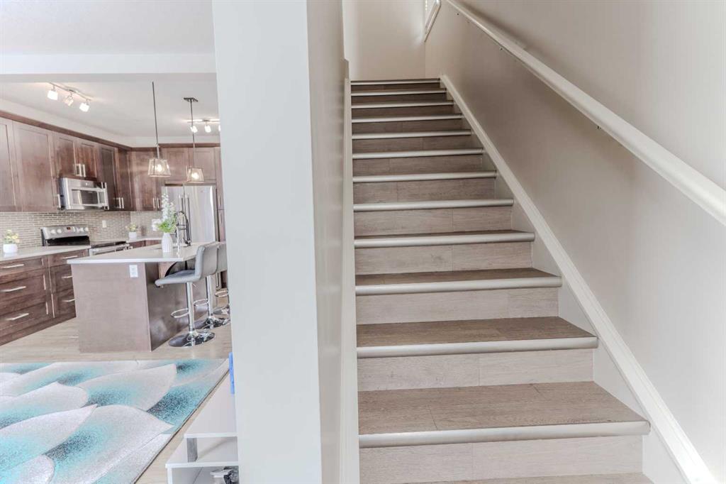 Welcome to this beautifully maintained Cardel Lifestyles custom-built home in the sought-after community of Nolan Park, featuring a fully developed walkout basement and a bright, open-concept design. The main floor offers 9’ ceilings and a spacious layout, highlighted by quality finishes including knockdown ceilings, upgraded baseboards, and modern fixtures throughout. The chef-inspired kitchen is complete with quartz countertops, rich maple cabinetry, stainless steel appliances, and ample storage, making it perfect for both everyday living and entertaining. A generous living room, dining area, and convenient powder room complete the main level. Upstairs you’ll find three comfortable bedrooms, including a spacious primary retreat with a walk-in closet and private 4-piece ensuite. Two additional well-sized bedrooms, a full bathroom, and a convenient upper-floor laundry room add to the functionality of the upper level. The fully finished walkout basement provides extra living space with a large family room, 4-piece bathroom, and additional storage, with direct access to a covered patio and backyard—ideal for relaxing or entertaining. Additional highlights include a single attached garage with driveway parking and a fantastic location close to parks, pathways, shopping, and dining, with quick access to Beacon Hill Shopping Centre, Walmart, and major routes. A perfect opportunity to own a move-in ready home in a growing NW community.