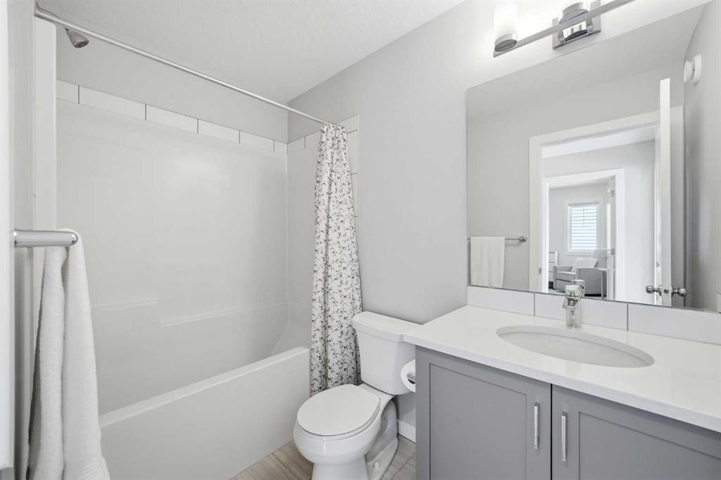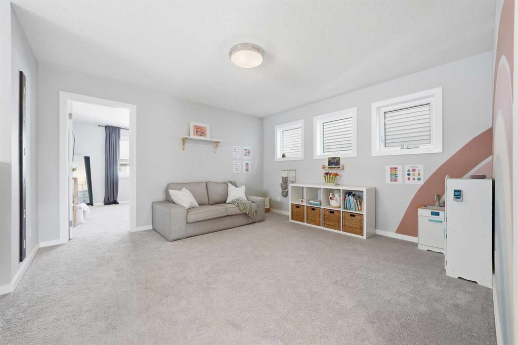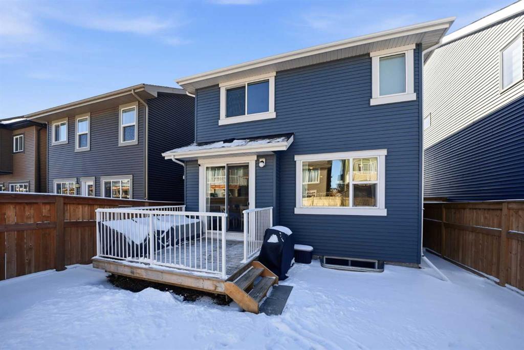Welcome to this beautifully maintained, move-in ready family home, ideally situated in a quiet location just steps from a playground in one of Cochrane’s most sought-after neighbourhoods! With the convenience of K–Grade 8 at nearby Ranchview School, this is the perfect setting for growing families. Step inside to a warm and inviting main floor featuring rich wood-tone vinyl plank flooring and bright, modern finishes that create a calm and welcoming atmosphere. The stunning kitchen is the heart of the home, showcasing upgraded appliances including a gas stove and ceiling hood fan, quartz countertops, and a large island—perfect for gathering, entertaining, and everyday meal preparation. A spacious walkthrough pantry connects seamlessly to the mudroom, complete with built-in lockers to keep the family organized, along with convenient access to the main floor powder room and the garage, which has been insulated, drywalled, and finished with textured white walls. The open-concept living and dining areas provide a comfortable space for both daily living and hosting guests. Sliding glass doors lead to the spacious backyard and deck, complete with a gas line rough-in for your BBQ—perfect for summer entertaining while the kids play and you relax in the sunny outdoor space. Upstairs, a centrally located bonus room offers excellent flexibility and is currently set up as a children’s play space but could easily function as a media room or additional family lounge. Just off the bonus room is a cozy office nook—an ideal tucked-away workspace. The primary suite offers a peaceful retreat, complete with a spacious walk-in closet and a beautifully finished five-piece ensuite featuring dual sinks, quartz countertops, a deep soaker tub, and a separate tiled shower—the perfect place to unwind at the end of the day. Two additional bedrooms, each with their own walk-in closets, a full bathroom with quartz countertops, and a generously sized laundry room with extra storage complete the upper level. The unfinished lower level is ready for your future plans, already equipped with a bathroom rough-in and ample space for additional living areas. Located in a vibrant community known for its pathways, parks, schools, and central pond, you’ll also enjoy convenient access to nearby amenities including restaurants, pharmacy services, and medical clinics. Families will especially appreciate that the nearby park serves as a convenient school bus stop—just a short stroll away for easy, stress-free mornings. An exceptional home offering comfort, function, and a quiet, family-friendly location—book your showing today!