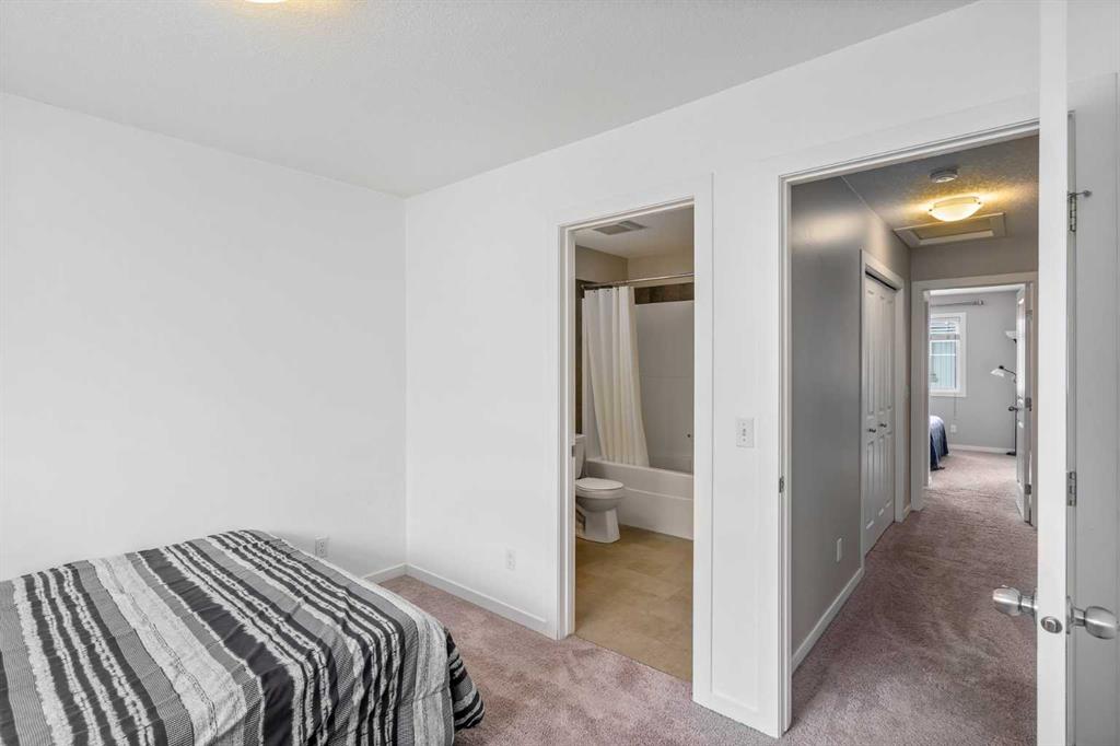 Located in the heart of New Brighton, this well-maintained three-storey townhome offers a functional layout, great natural light, and an unbeatable location close to parks, schools, and everyday amenities. Just steps from playgrounds and the New Brighton Athletic Park, you’ll enjoy easy access to football, soccer, and baseball fields, along with nearby walking paths and green spaces. Shopping and dining are only minutes away at 130th Avenue and High Street in McKenzie Towne. The main living area features tall ceilings, oversized windows, and an open floor plan that connects the kitchen, dining, and living spaces. The kitchen is designed for both style and practicality with stainless steel appliances, modern cabinetry, a tile backsplash, and a large island with breakfast seating. A convenient powder room completes the main level. Upstairs are two spacious primary bedrooms, each with its own private ensuite, along with the added convenience of upper floor laundry. Outside, enjoy a private deck with bamboo privacy screening and a lower patio that opens to a quiet courtyard and tree-lined pathway. Parking is easy with a single attached garage plus a second covered parking pad. Recent updates include a new dishwasher (2024) and new hot water tank. Residents of New Brighton also enjoy access to the New Brighton Club, featuring a splash park, skating rink, tennis courts, and year-round community programming.