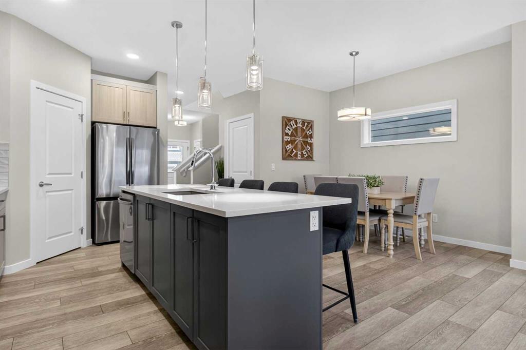 *** OPEN HOUSE SUNDAY MARCH 22nd 12:00-2:00pm***Located in the highly sought-after lake community of Mahogany, this beautifully upgraded and move-in ready home offers over 2,600 sq ft of developed living space with 5 bedrooms and 3.5 bathrooms, along with over $50,000 in thoughtful upgrades throughout.The main floor features 9-foot ceilings that create a bright and open atmosphere, along with a versatile front flex room that can function as a home office, sitting area, playroom, or additional living space. The kitchen is the heart of the home and showcases upgraded quartz countertops, extended cabinetry, upgraded appliances, and upgraded lighting and plumbing fixtures, along with an impressive 8-foot island that provides both additional seating and workspace. The open-concept layout allows the kitchen, dining, and living areas to flow seamlessly, making the space ideal for both everyday living and entertaining.Upstairs offers a thoughtfully designed layout featuring three spacious bedrooms, a large bonus room, and the convenience of an upper-floor laundry room. The primary bedroom is exceptionally spacious and features a walk-in closet along with a well-appointed ensuite, creating a comfortable retreat at the end of the day. The fully developed basement features 9-foot ceilings and was professionally constructed by the builder with fire-rated separation, offering two large bedrooms, a full bathroom, and a spacious rec room. With a separate side entrance already in place and the basement roughed in for a future kitchen, the space offers excellent potential for a future secondary suite (subject to City of Calgary approval). Outside, the property features a fully fenced yard, a large rear deck with a poured concrete pad designed for a future hot tub, and a double detached garage finished with durable Hardie board siding that matches the exterior of the home. All improvements have been professionally completed with permits in place, including the garage deck, with a compliant RPR available. With five bedrooms, a fully developed basement, and future secondary suite potential , (subject to City of Calgary approval). this home offers excellent flexibility for growing families, multi-generational living, or those looking to create additional income in the future (subject to City of Calgary approval).Located in Mahogany, Calgary’s premier lake community, residents enjoy year-round lake access with beaches, parks, pathways, playgrounds, schools, and the vibrant shops and restaurants of Westman Village just minutes away. Homes offering this level of space, upgrades, and flexibility in Mahogany rarely come available fully finished and truly move-in ready.