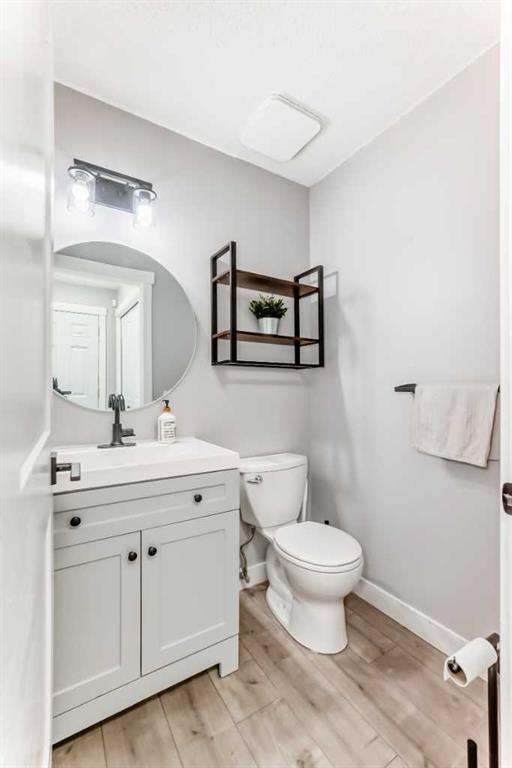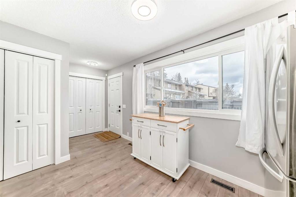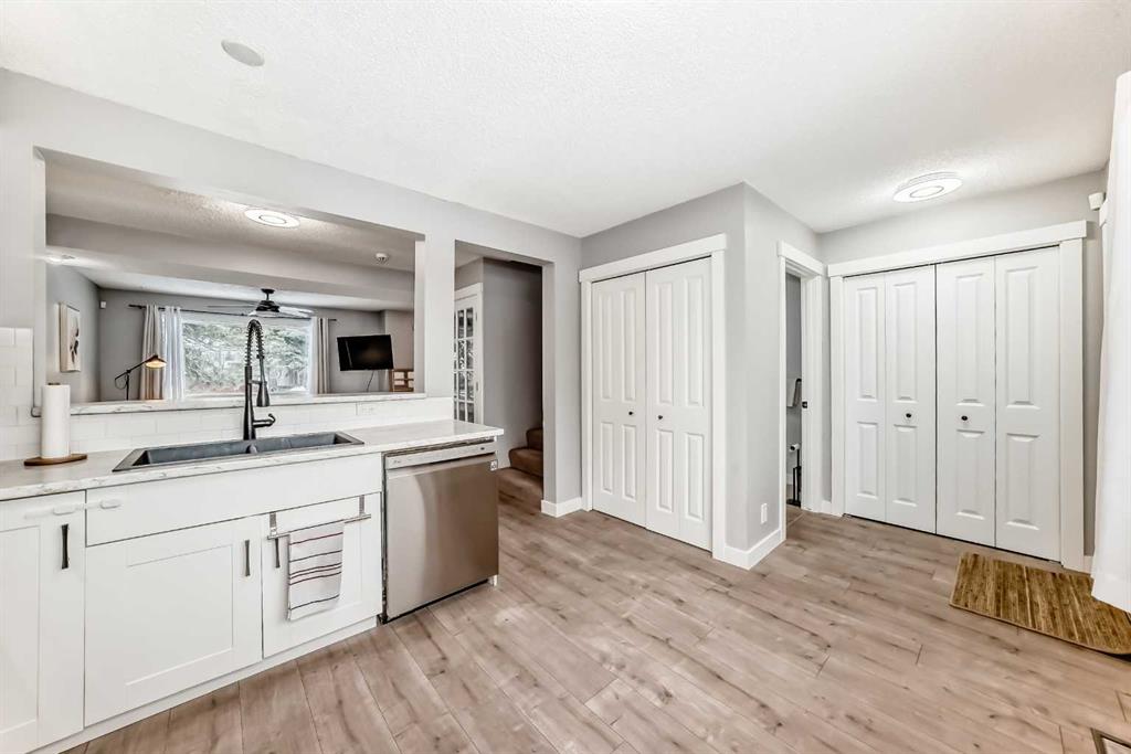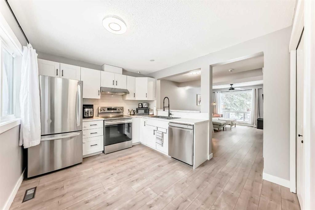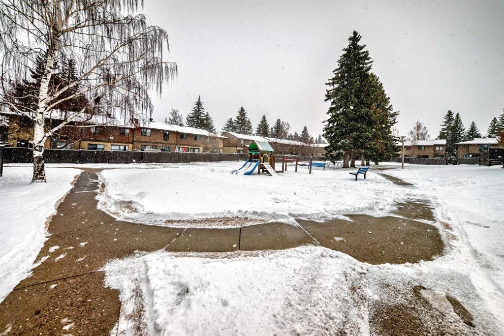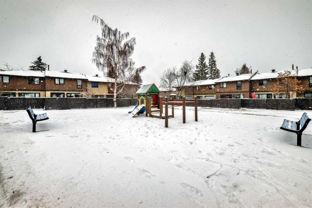 CONDITIONALLY SOLD. Perfectly situated in the popular and well managed Oakmoor townhomes, and in one of the best locations in the complex, this renovated end unit townhouse offers several standout features including a private driveway right out front, a private fenced backyard that is perfect for entertaining, relaxing, or pets (with board approval), and an ideal location backing directly onto the large treed central courtyard with walking paths and a playground! Thoughtfully updated from top to bottom with improvements that include a high efficiency furnace, hot water tank, vinyl windows and more. The bright main floor, bathed in natural light from large south facing windows, features a spacious front living room, adjoining dining area, and a stylish kitchen with crisp white cabinetry, stainless steel appliances and a lovely view over the courtyard park. A convenient two piece bathroom completes the main level. Upstairs is host to three bedrooms including a generous primary featuring a walk-in closet, and a four piece main bathroom. The fully developed lower level provides additional living space, laundry (with a new LG Washtower machine!), plenty of storage and another two piece bathroom. Enjoy the convenience of parking for two vehicles on your private driveway located directly outside the front door, with ample visitor and street parking nearby. This well managed complex is close to schools, parks, shopping and transit, and offers easy access to Stoney Trail for a quick commute around the city and to the nearby Taza Park shopping district. Call your favorite Realtor to book your private showing today!