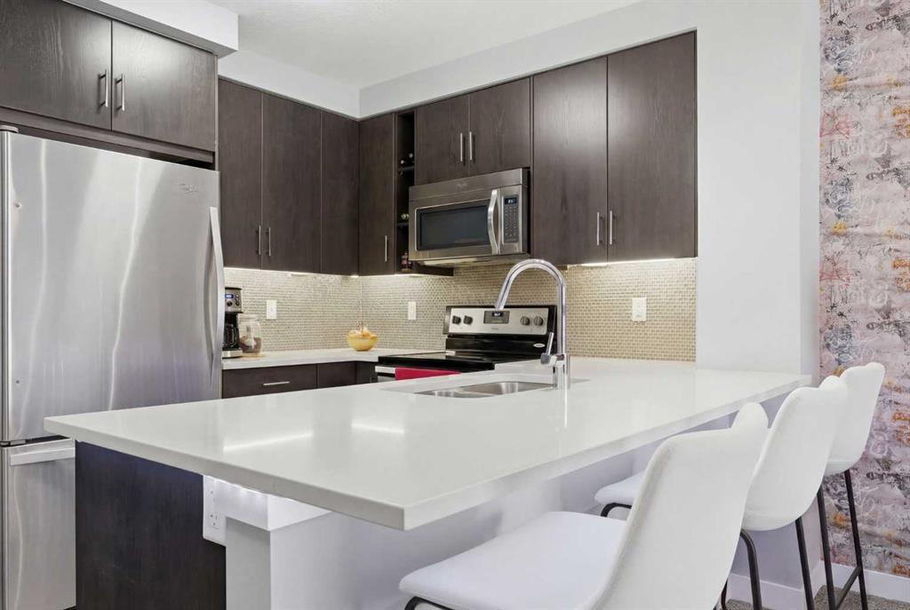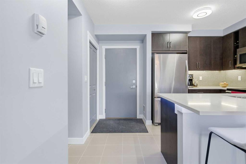 Welcome to lake living in Auburn Bay. This beautifully maintained 1 bedroom, 1 bathroom condo in the Canoe building by Avi Urban offers the perfect combination of comfort, style, and convenience. The bright north-facing unit features an open-concept layout with oversized windows that fill the space with natural light. The modern kitchen is finished with flat-panel cabinetry, stainless steel appliances, and a functional breakfast bar, ideal for everyday living or entertaining. The spacious bedroom includes a walk-in closet and direct access to the 4-piece bathroom, which is also accessible from the main living area for added convenience. Additional highlights include in-suite laundry, a covered patio, titled underground parking, and a separate storage locker. Residents of this pet-friendly complex enjoy access to a beautifully landscaped courtyard terrace with a firepit, perfect for relaxing outdoors. The location is exceptional — directly across from Auburn Station Shopping Centre and just steps from Mahogany Village Market, giving you quick access to groceries, restaurants, cafés, fitness studios, and everyday amenities. You’ll also enjoy year-round lake access, parks, pathways, and everything that makes Auburn Bay one of Calgary’s most desirable lake communities. Perfect for first-time buyers, downsizers, or investors looking for a low-maintenance lifestyle in a prime southeast Calgary location.