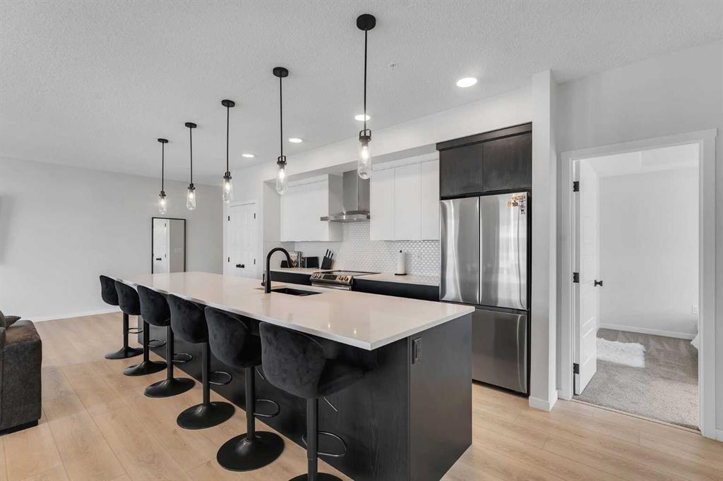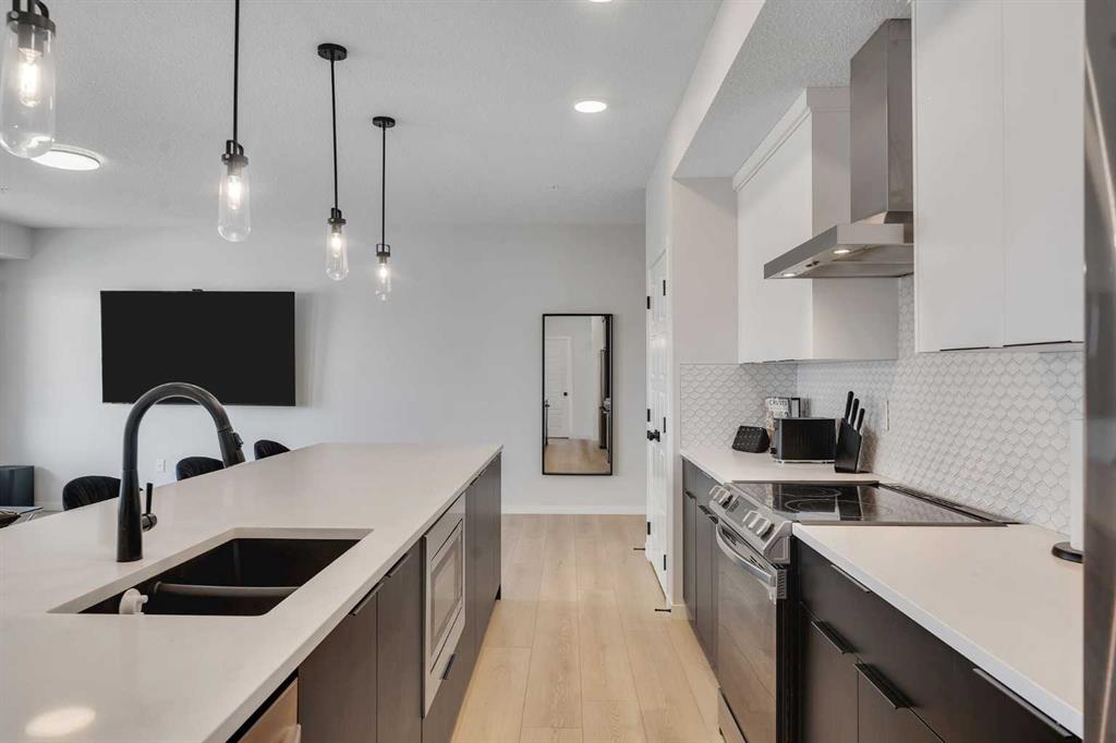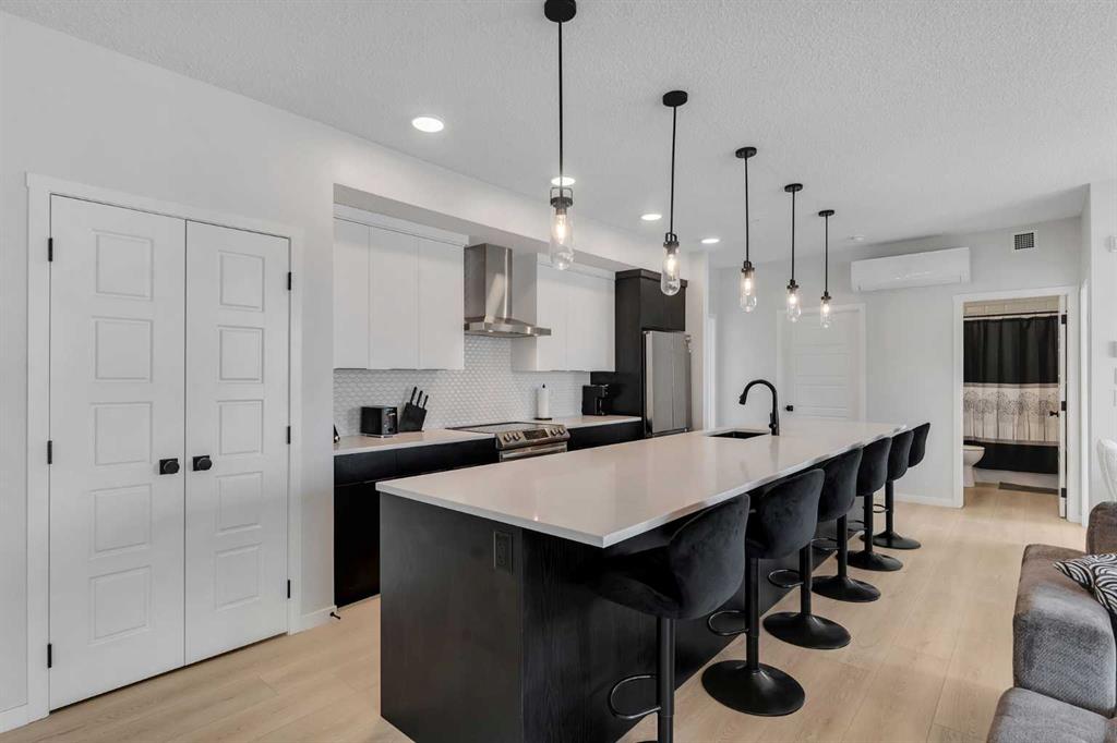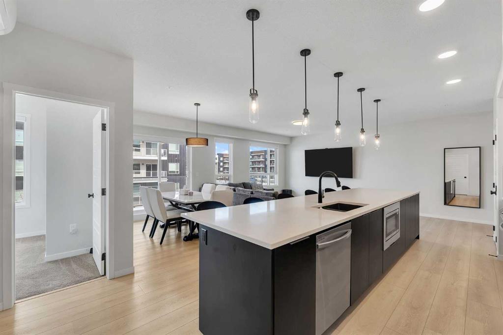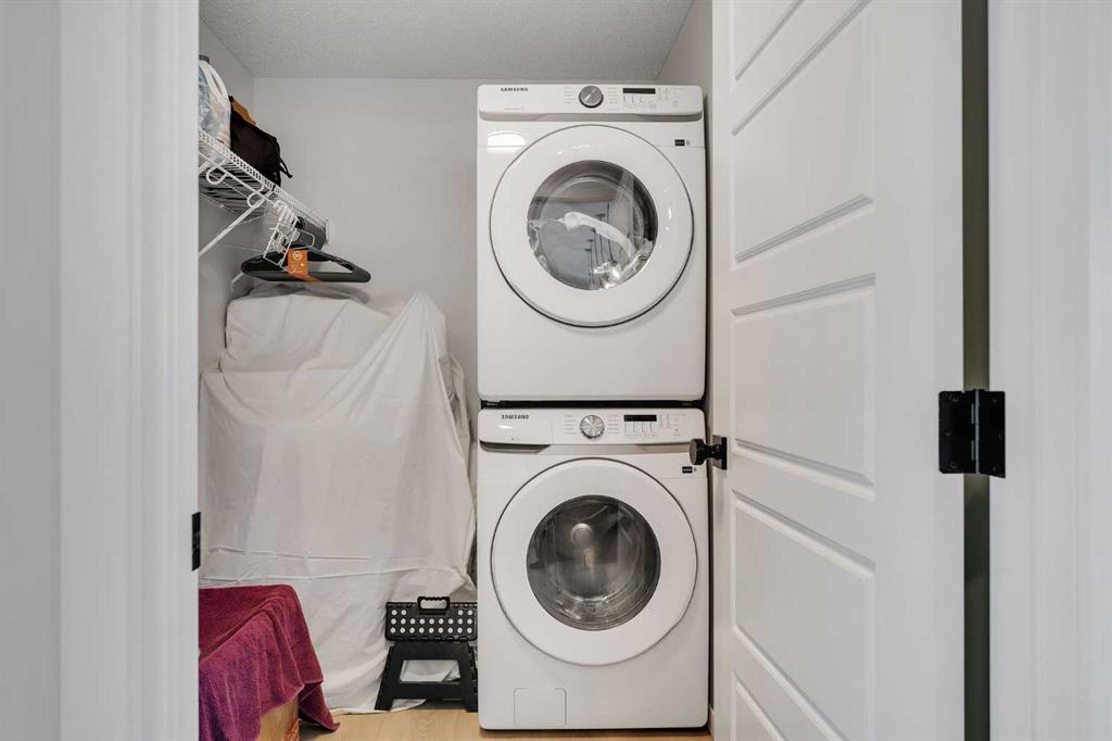 Stylish Corner Unit with Expansive Balcony and Premium Upgrades (L4 Floorplan). Welcome to this spacious 1,092 sq ft corner unit, offering a bright and modern layout with 2 bedrooms and 2 full bathrooms. With 9-foot ceilings and large windows throughout, the home feels open, airy, and filled with natural light—especially in the west-facing bedrooms, perfect for enjoying warm afternoon sun. The gourmet kitchen upgrade is a standout feature, showcasing an extended granite island, elegant two-tone cabinetry, chimney-style hood fan, stainless steel appliances, and a built-in microwave. This well-designed space is ideal for both everyday cooking and entertaining guests. Durable luxury vinyl tile flooring with sound-reducing membrane adds both comfort and style to the living areas. The primary bedroom offers a functional retreat with a large walk-in closet and a private ensuite bathroom. Additional highlights include air conditioning, electric baseboard heating, triple-pane windows for energy efficiency, and a large in-suite storage room with stacked washer and dryer. Step outside onto the impressive 23-foot balcony, complete with a BBQ gas outlet, providing the perfect space for outdoor dining and relaxing. The home also comes with a titled underground parking stall, adding convenience and security year-round. A rare combination of space, upgrades, and a prime corner layout, this home is perfect for comfortable modern living. Close to shopping, and all amenities!