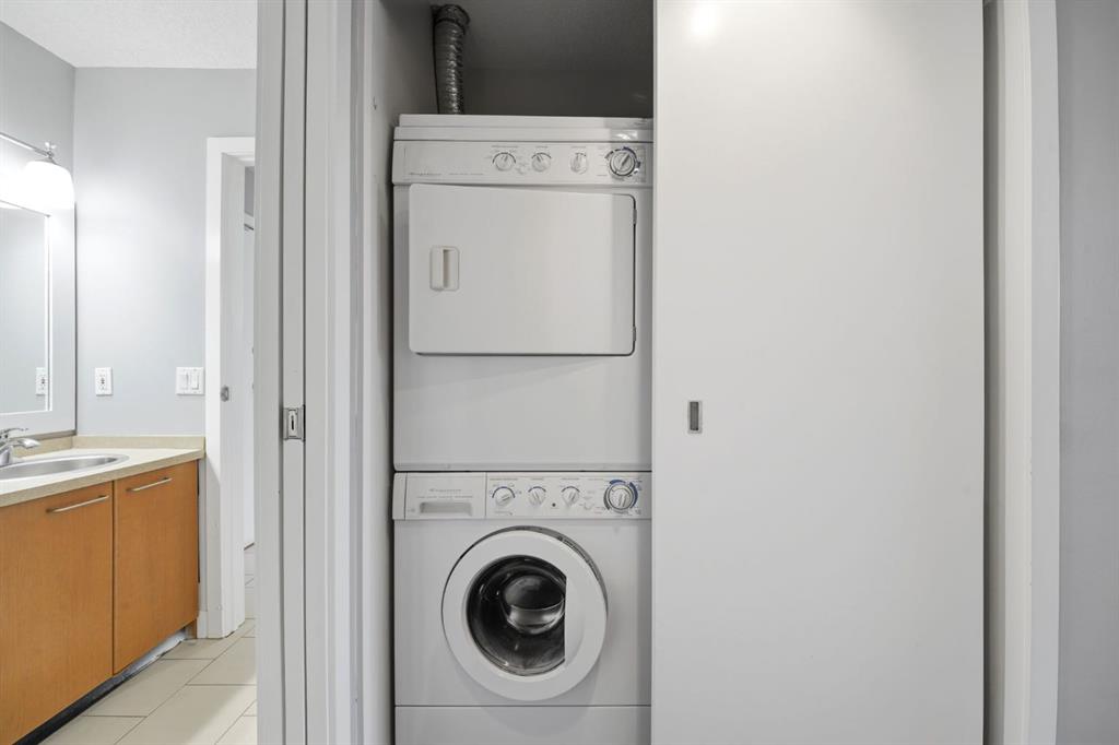 Welcome to this stylish open-concept condo featuring a bright living room with a cozy gas fireplace and access to a private balcony. The dining area flows seamlessly into the kitchen, complete with stainless steel appliances and a functional layout ideal for both everyday living and entertaining. The spacious bedroom offers a convenient walk-through closet leading to a full 4-piece bathroom. Located close to the elevator for easy access, this suite also includes one titled parking stall and a dedicated storage unit. The secure building features a fitness centre and is ideally located just minutes from Mount Royal University, shopping, restaurants, and transit. A fantastic opportunity for students, first-time buyers, or investors looking for a well-located property in a convenient southwest Calgary location.