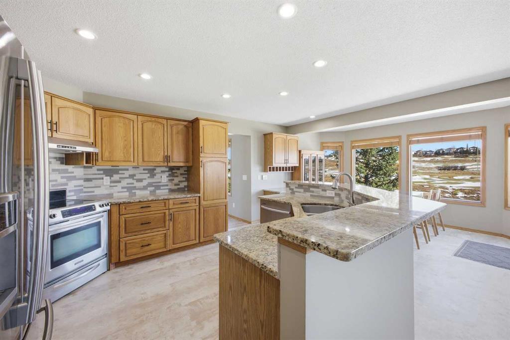 Perfectly positioned in the prestigious community of Country Hills Estates, this exceptional walkout home offers nearly 3,000 sq. ft. of refined living space with breathtaking golf course views. Backing directly onto the 6th tee box of the renowned Country Hills Golf Club, this property presents a rare opportunity to own one of the most desirable locations in the neighbourhood. The home makes an immediate impression with its triple car garage, distinctive rubber driveway, and welcoming walkway to the front entrance. Inside, a formal living and dining room with vaulted ceilings creates an elegant space for entertaining while capturing beautiful views of the golf course. Newer loose lay vinyl flooring throughout adds a fresh, modern feel. The main level is thoughtfully designed with a large, versatile den -ideal for a home office, library, or additional living space - alongside a convenient powder room, while the central living room is anchored by a classic wood-burning fireplace with custom built-in shelving. The open kitchen features stainless steel appliances, granite countertops, and a sunlit breakfast nook overlooking the fairway. Step onto the glass-railed balcony to enjoy uninterrupted golf course views—perfect for morning coffee or evening sunsets. A laundry room tucked away from the main living spaces adds everyday convenience. Upstairs, the home offers four generously sized bedrooms and three full bathrooms, a rare and ideal layout for families. The oversized primary retreat features a walk-in closet with built-in organizers and a beautifully renovated 5-piece ensuite with in-floor heating, dual vanities, a freestanding tub, and glass-tiled walk-in shower. All upstairs bathrooms have been tastefully renovated with quartz countertops, and one secondary bedroom includes its own private 3pc ensuite. The fully developed walkout basement adds exceptional versatility with two additional bedrooms, a spacious living area with a gas fireplace, and a full kitchen—perfect for guests, extended family, or multi-generational living. The lower level also offers abundant storage with multiple closets and dedicated storage areas. Walk out to an enclosed patio overlooking the golf course — another peaceful outdoor space to enjoy. Additional highlights include dual-zone furnaces and a newer metal roof, both reflecting the pride of ownership throughout the home. Beyond the property, the location is equally exceptional. Residents enjoy direct access to a scenic walking path looping around Country Hills Golf Club, just a five-minute walk from the front door. The home is also close to excellent schools including Simons Valley School and Sir John A. Macdonald School. With quick access to shopping, major routes, downtown, and the airport, this location has so much to offer. Backing onto one of Calgary’s premier golf courses in the sought-after community of Country Hills Estates, this is a rare opportunity to secure a truly unique property in a highly coveted setting.