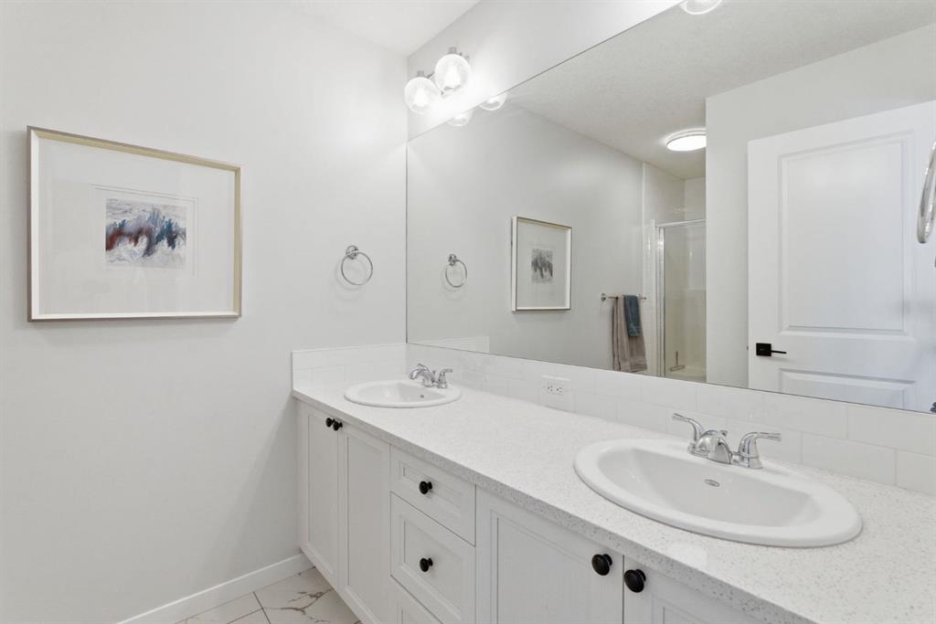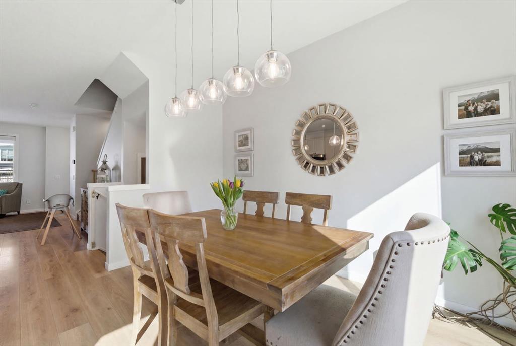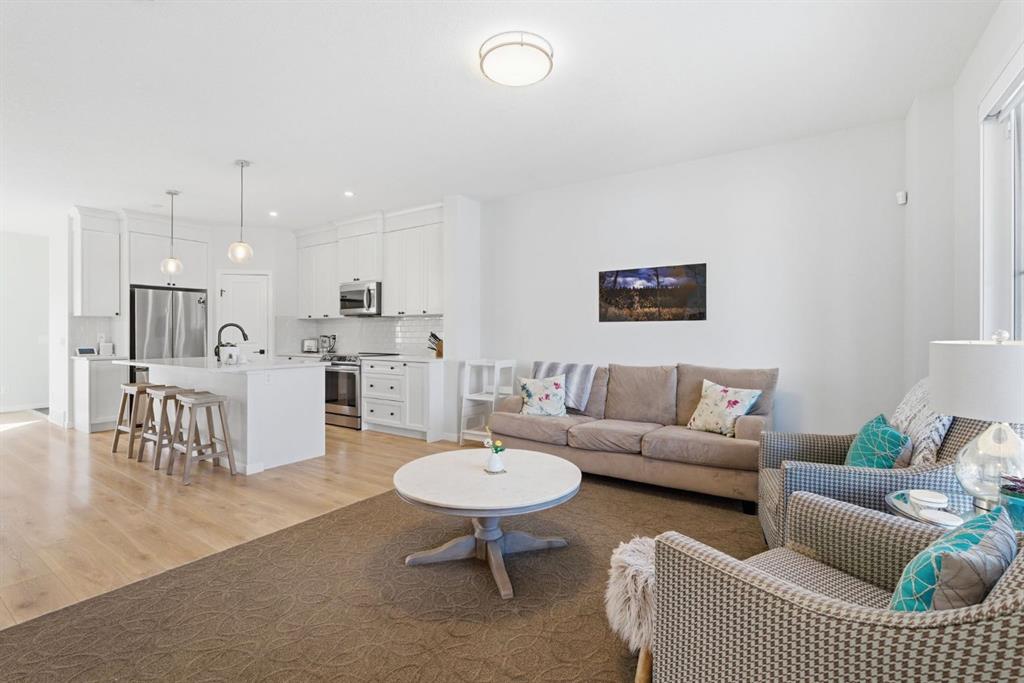 Welcome to your dream home in the highly sought-after community of Fireside! This immaculate, like-new residence boasts nearly 2,200 total developed square feet, perfectly designed for family living. As you approach you will notice the great curb appeal and inviting front porch. You are then greeted by gleaming hard surface flooring, soaring 9’ knockdown ceilings, and an abundance of natural light. This thoughtfully crafted layout features a spacious front living room that seamlessly flows into the chef-inspired kitchen, making it an entertainer's dream. The kitchen showcases elegant shaker-style cabinets that extend to the ceiling, timeless subway tile backsplash, beautiful quartz countertops, stainless steel appliances, and a convenient corner pantry for extra storage. Adjacent to the kitchen, you will find a well-sized dining room with patio sliders that open up to your deck, creating the perfect indoor-outdoor living space. Just around the corner, you'll appreciate the practicality of a mudroom and a private powder room. The fully landscaped and fenced sunny south backyard is a true oasis and includes a 2-vehicle parking pad. Upstairs, is the generously sized primary bedroom, complete with a walk-in closet and an ensuite bathroom featuring dual sinks, a separate shower, and stylish stone countertops. Two additional spacious bedrooms, a 4-piece main bathroom with stone counters, and the convenience of upper-level laundry complete this level. The fully developed lower level presents a 4th bedroom, an additional full bathroom, and an expansive recreation room, perfect for family gatherings and entertainment. This turnkey ready home is, just a short walk to Fireside School (K–8) and Holy Spirit Catholic School (K–8), along with scenic walking paths, playgrounds, restaurants, an outdoor rink, baseball diamond, and three soccer fields located in the heart of the community. A gas bar, pharmacy, and everyday conveniences are close by. Fireside is a complete, thoughtfully planned community offering schools, parks, open spaces, and commercial amenities. Its strong walkability encourages an active, family-oriented lifestyle, all just 15 minutes to Calgary and 45 minutes to the heart of the Rocky Mountains. Don’t miss the opportunity view the virtual tour or schedule your private showing today!