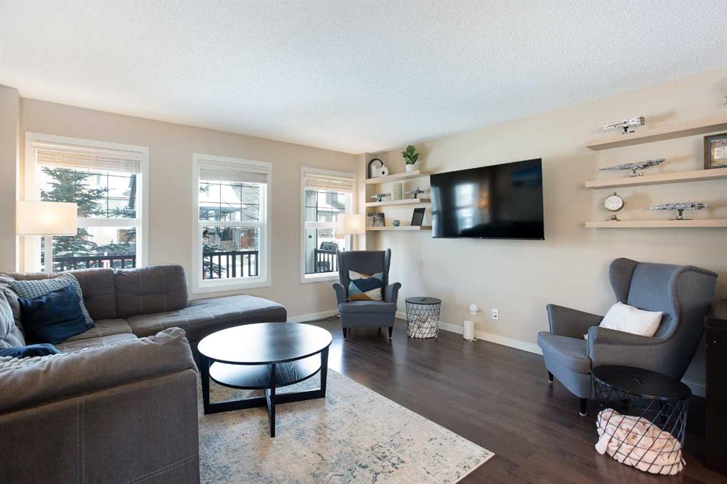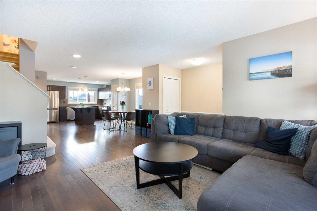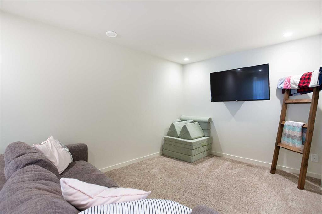 With over 2000 sq ft of developed space, set on a quiet street, located mid-block, in a welcoming, family oriented community of Sunset Ridge, this well maintained home offers a functional layout and comfortable living spaces designed for everyday life. With central air conditioning and thoughtful updates throughout, it provides both convenience and comfort for a busy household. As you enter, the main level greets you with beautiful hardwood flooring and an open, bright living space that flows from room to room. Large windows allow natural light to fill the home, creating a warm and inviting atmosphere ideal for relaxing or entertaining. The kitchen is designed with practicality in mind, featuring generous counter space, ample cabinetry, a newly replaced stove and a large island that makes dinner preparation or weekend get- togethers enjoyable. The adjoining dining area offers a comfortable spot for family dinners. Upstairs, the home has been refreshed with brand new carpet on the staircase and throughout the upper level, adding a soft and modern touch. The primary bedroom is completed with a walk-in closet and a spacious ensuite bathroom. Two additional bedrooms and a full bathroom provide plenty of room for children, guests, or a home office, with a mountain view. The fully finished basement expands the living space even further, offering a versatile recreation area along with an additional bedroom and a spacious 3-piece bathroom with heated floors, perfect for guests or visiting family. Upgrades include a new washer and dryer, making everyday chores a little easier. Outside, the heated oversized garage with a 10-foot door is a standout feature along with 220 volt power, providing exceptional space for vehicles, storage, outdoor gear or even an RV parking. Additional secure storage is provided by a built-in shed, located under the deck. Combining a smart layout, modern updates, and excellent storage, this home delivers the space and functionality today’s families need, all in a location one's family will enjoy.