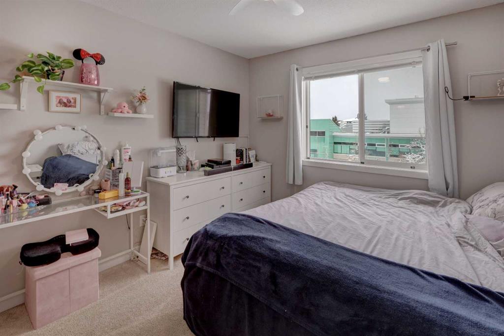 Welcome to this bright and spacious 2 bedroom, 2 bathroom townhouse condo with vaulted ceilings in the living room and kitchen. The kitchen features granite countertops, pantry, quiet-close cabinetry, and a full appliance package including a fridge and dishwasher replaced in 2025. The primary bedroom includes a 4-piece ensuite, while the second bedroom and full bath offer great flexibility. In-suite laundry with stacked washer and dryer (new in 2025). Enjoy a south-facing balcony off the living room. Two portable air conditioning units are included for added comfort. Comes with two outdoor parking stalls — one titled and one assigned.