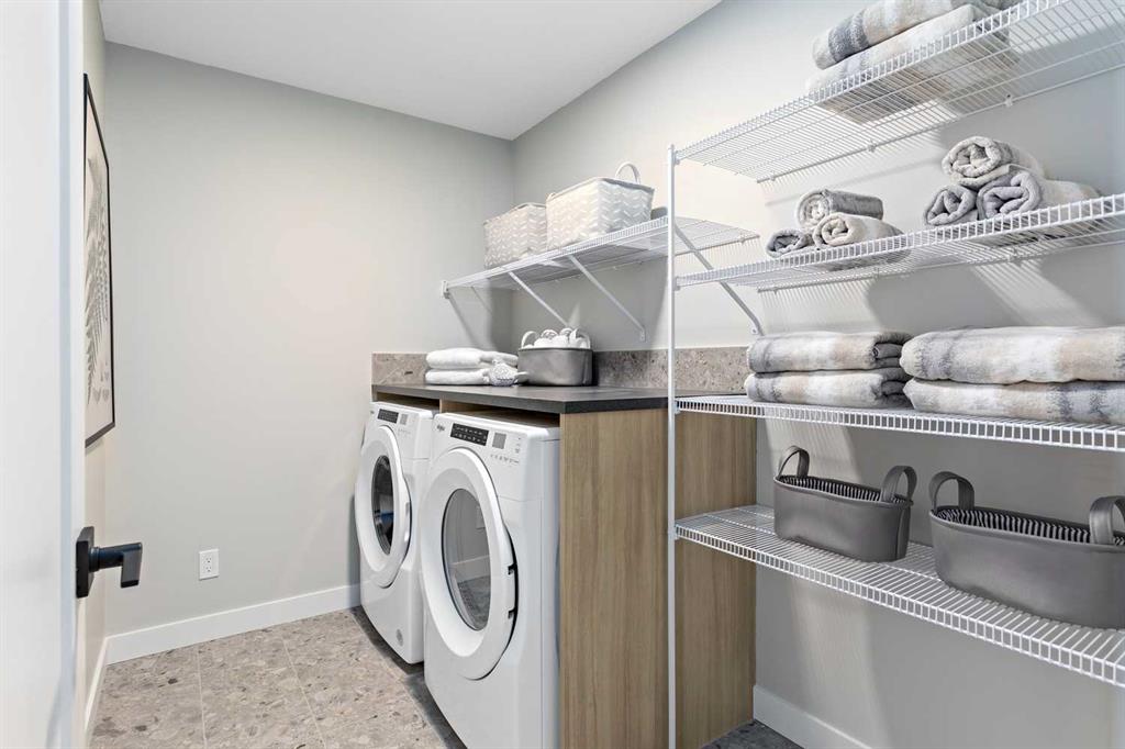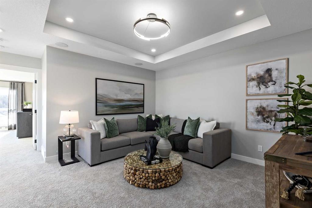 Located in the growing southwest community of Belmont, 134 Belmont Passage SW presents a beautifully designed brand-new two-storey home by Trico Homes, thoughtfully crafted with modern finishes and a functional layout ideal for today’s lifestyle. With an anticipated completion date of March 31, 2026, this home offers the opportunity to enjoy contemporary living in one of Calgary’s newest family-friendly neighbourhoods. The main level welcomes you with high ceilings and durable engineered hardwood flooring, creating a bright and open atmosphere throughout the living space. The spacious open-concept floor plan seamlessly connects the kitchen, dining, and living areas, making it perfect for both everyday living and entertaining. The living room is highlighted by a stylish electric fireplace, adding warmth and character to the central gathering space. At the heart of the home is a modern kitchen designed with both style and practicality in mind. Featuring quartz countertops, a large central island with breakfast bar seating, sleek cabinetry, and quality appliances including a gas stove, the kitchen offers ample space for meal preparation and hosting. Gas lines are also roughed in for the spice kitchen range, offering additional flexibility for cooking and outdoor entertaining. Upstairs, the home continues to impress with thoughtfully designed living spaces. The primary bedroom retreat offers a relaxing space to unwind, complete with a walk-in closet and private ensuite featuring a double vanity and a soaking tub. Additional bedrooms provide comfortable accommodations for family members or guests. A conveniently located upper-level laundry room helps simplify daily routines. The unfinished basement provides excellent potential for future development, allowing homeowners to customize additional living space to suit their needs—whether it’s a recreation room, home gym, or extra bedrooms. Outside, the home features a double attached garage with parking for up to four vehicles (including driveway), offering convenience and additional storage. Buyers will also receive a $1,000 landscaping certificate to help complete the outdoor space. Situated in the vibrant community of Belmont, residents enjoy nearby parks, playgrounds, walking and biking paths, schools, and convenient shopping. With quick access to major routes and future community amenities, Belmont offers the perfect balance of suburban comfort and city accessibility. With its modern design, quality craftsmanship, and excellent location, 134 Belmont Passage SW is an exceptional opportunity to own a brand-new home in one of Calgary’s most exciting emerging communities.