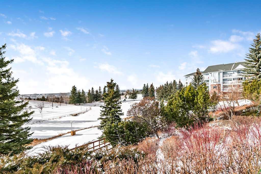 Discover comfortable living in this premium ground-floor end unit filled with natural light from numerous windows. The unit has all new vinyl plank flooring, new baseboards, and fresh paint throughout, giving the home a clean and updated feel. With 1,070 sq ft, this bright home has 2 bedrooms and 2 bathrooms. The large primary bedroom has two double closets and an ensuite bathroom. A second bedroom works well for a roommate, guests, or hobbies, along with a 4-piece main bathroom nearby. The kitchen is easy to move around in, with plenty of storage and natural light, and the dining area has a west-facing window overlooking the treed green space. The living room provides a comfortable area to relax or gather with friends and family, with easy access outside. Step outside to a covered porch with a gate that opens directly to the beautifully maintained grounds, creating a peaceful and convenient outdoor space. A practical layout provides an in-suite laundry room with plenty of storage and central vacuum for easy cleaning. This unit also comes with a titled underground parking space and an assigned storage locker. Dreamview Village is a welcoming 55+ condominium community known for its supportive atmosphere and strong sense of connection. The beautifully landscaped grounds feature a pond, walking paths, and beautiful mountain and city views. Residents enjoy a secure, well-managed building where pride of ownership is clear throughout the property. The complex has a car wash bay, garbage chutes on each floor, and plenty of visitor parking. A guest suite is available for visiting family and friends. The clubhouse is a wonderful gathering place for residents. Spend time in the library, attend exercise classes, join hobby groups such as knitting or crafts, or enjoy board games and bingo. The space also has billiards, shuffleboard, and tables for puzzles beside large south-facing windows overlooking the grounds and mountain views. Activities at the clubhouse are well attended and create great opportunities to connect with neighbours. A well-equipped woodworking workshop is available for residents who enjoy working with their hands. Social events bring neighbours together, with Friday afternoon potlucks and regular social hours. Public transportation is located just steps from the building entrance, making it easy to get around. Everyday conveniences are close by. The Melcor YMCA, Crowfoot Library, grocery stores, restaurants, shopping, pharmacies, gas stations, and a movie theatre are all about 5 minutes away. This home provides comfortable living in a vibrant and welcoming community. Schedule your appointment today to experience everything this wonderful home and community have to offer.