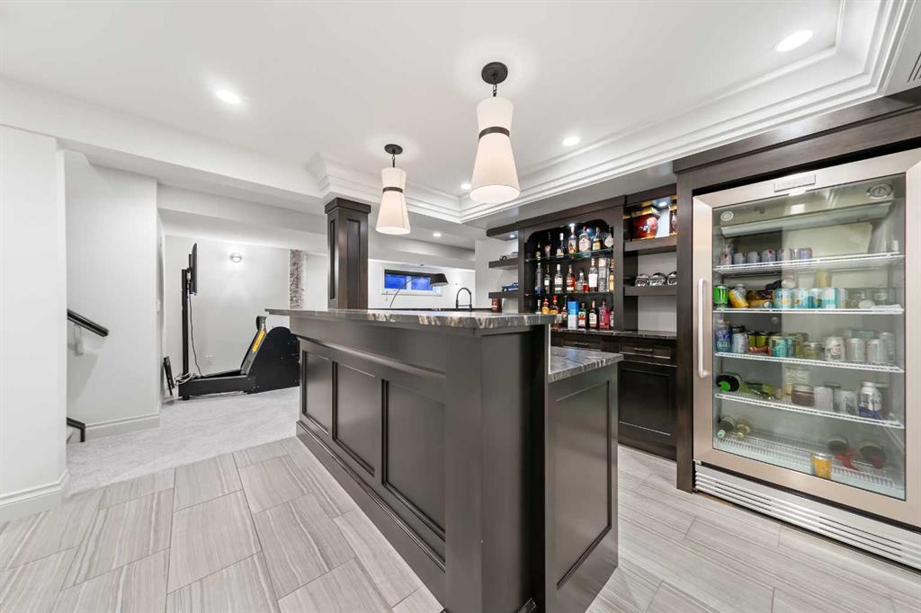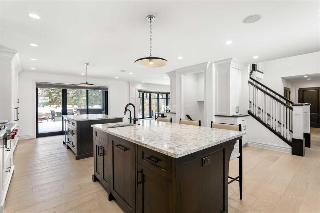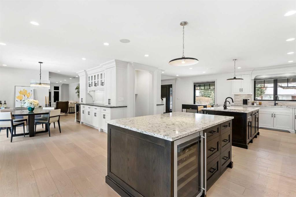 Rarely does a home on this quiet cul-de-sac come to market. Backing directly onto the 1st hole of Willow Park Golf & Country Club, this fully renovated estate home blends everyday comfort with genuine wow-factor. The chef's kitchen anchors the main floor with dual granite islands, Sub-Zero and Wolf appliances, a hot water pot filler, prep sink, beverage center, wine fridge, and custom floor-to-ceiling cabinetry — flowing seamlessly to the backyard through patio doors. A butler's pantry and second wine fridge serve the adjacent dining area. The living room features a built-in entertainment wall and gas fireplace with backyard and golf course views. Upstairs, the primary suite offers a spa level ensuite with dual vanities, soaker tub, and luxurious shower and a hot tub of the master patio overlooking the backyard/golf course. Three additional bedrooms each have their own character — one with a secret playroom, another with a Murphy bed, built-ins, and patio access. A well-appointed laundry room and 5-piece bathroom complete the upper level. The basement delivers a custom media wall, gas fireplace, full bar with commercial fridge, and a spectacular wine room with tasting station. A fifth bedroom with a walk-through closet and a private ensuite adds flexibility. The backyard is truly the crown jewel — mature landscaping, built-in outdoor kitchen, fire table, fire pit, pond with waterfalls, a bridge, and underground sprinklers throughout. Walking distance to shopping, schools, transit, and Willow Park Golf & Country Club.