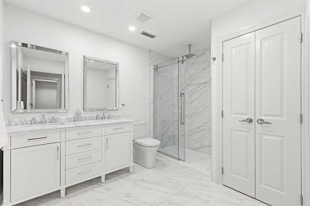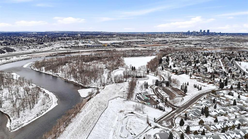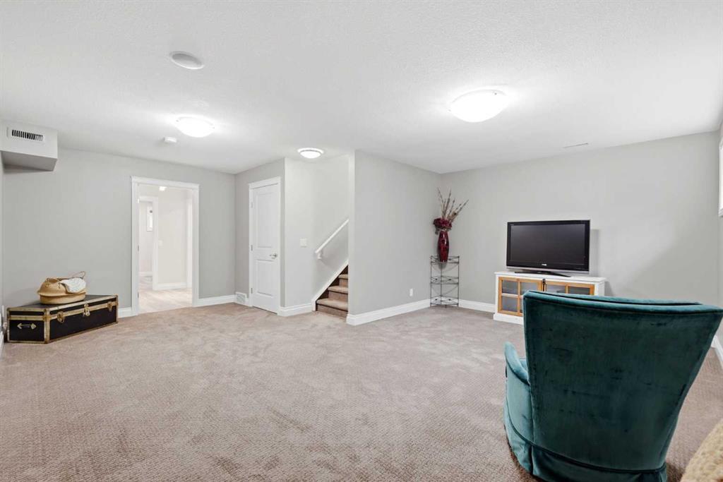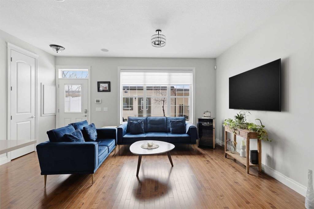 Experience the best of Quarry Park in this former show home, perfectly situated on a quiet boulevard just one block from the scenic Bow River pathways. With over 2,300 sq ft of thoughtfully finished living space up and down, this striking two-storey townhome offers a modern, open layout designed for both everyday living and entertaining. The main floor features a bright, open-concept design with a chef-inspired kitchen showcasing quartz countertops, stainless steel appliances, abundant cabinetry, and a large island for casual dining or gathering. Adjacent dining and living areas flow seamlessly to the private backyard, creating a natural indoor-outdoor connection. Upstairs, three spacious bedrooms include a serene primary retreat with walk-in closet and private ensuite, complemented by upper-level laundry for convenience. The fully finished basement adds a fourth bedroom, full bath, and flexible recreation space. Practical luxury continues with a detached double garage that is fully drywalled and heated—ideal for vehicles, hobbies, or storage. With four bedrooms, 3.5 bathrooms, and a premier Quarry Park location near parks, cafés, restaurants, and pathways, this home delivers refined, low-maintenance living in one of Calgary’s most vibrant communities.