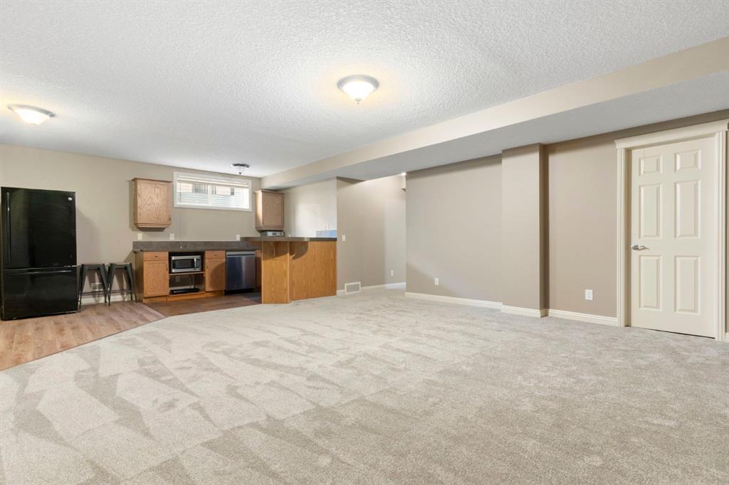 Set along one of Sunset Ridge’s walking paths that lead to nearby parks and green space, this home offers nearly 3,000 sq ft of finished living space in one of Cochrane’s most established and sought-after neighbourhoods. A vaulted foyer welcomes you inside, opening to a bright main floor with hardwood floors and large windows that bring in natural light throughout the day. The kitchen is centred around a generous island with seating and flows naturally into the dining area and living room, where a gas fireplace and built-ins anchor the space. A main floor office with French doors offers a private place to work or study, while a mudroom with laundry and a powder room sit just off the garage entrance. Upstairs, the bonus room overlooks the foyer below and creates a second living area separate from the main floor. The primary bedroom is positioned at the back of the home and includes a walk-in closet and ensuite. Two additional bedrooms, a full bathroom, built-in shelving and a linen closet complete the upper level. The fully finished basement adds even more flexibility with a large recreation space, games area, wet bar, fourth bedroom and a full bathroom. Outside, the backyard opens directly to the pathway system with a large deck, lawn space and a fire pit area that makes it easy to spend time outdoors. Sunset Ridge is known for its network of walking paths, parks and playgrounds, along with nearby schools and convenient access to Cochrane’s shops and restaurants. Calgary and the mountains are both within easy reach, making this a location that balances everyday convenience with outdoor living. Call your favourite realtor and book a showing today!