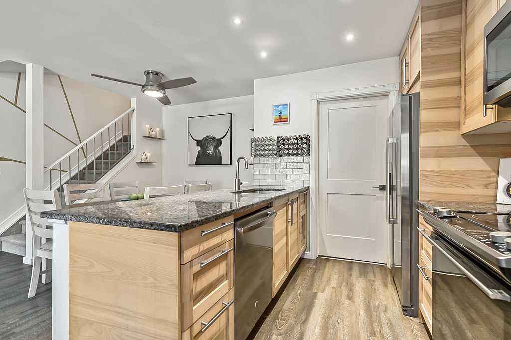 Charming 2-bedroom, 1-bathroom townhome ideally situated with a beautiful greenspace directly in front—offering peaceful views and no neighbours obstructing your view. Step inside to a bright, open-concept main floor featuring durable vinyl plank flooring throughout. The kitchen is both stylish and functional, complete with ceiling-height cabinetry, stunning granite countertops, and seamless flow into the living and dining areas—perfect for everyday living and entertaining. Upstairs, you’ll find a spacious primary bedroom with a large walk-in closet and corner windows that fills the room with natural light. The second bedroom is versatile, making it ideal for guests, a home office or additional living space. The upper level also features a fully renovated 3-piece bathroom (2023), finished with sleek modern touches including floor-to-ceiling tile—no detail has been overlooked. Convenient upstairs laundry adds to the home’s thoughtful layout. Enjoy your fully fenced front yard, perfect for pets (upon board approval), along with a private front balcony complete with a stylish pergola and privacy wall—an ideal spot to unwind on summer evenings. Located in the desirable community of Greenview, you’re just minutes from Nose Hill Park, less than a 15-minute drive to downtown Calgary and close to public transit, schools, parks, and shopping. This is a fantastic opportunity to own in a convenient, well-connected location—book your showing today!