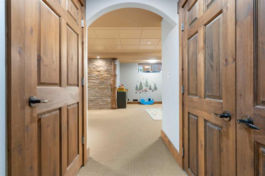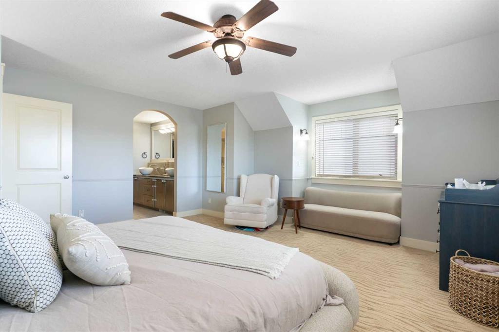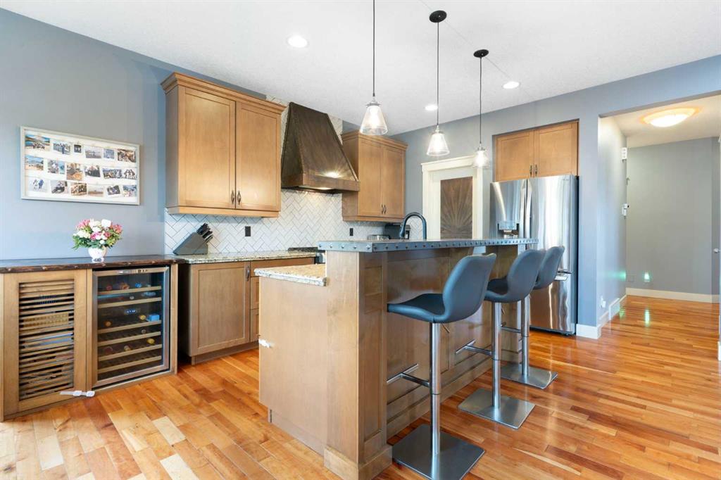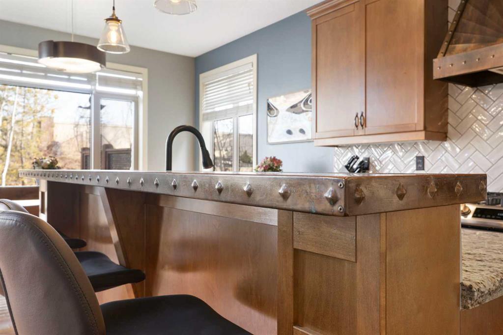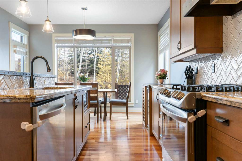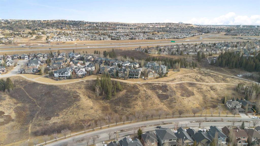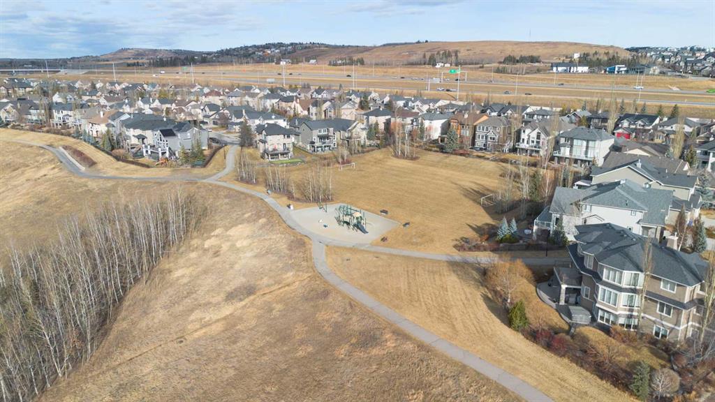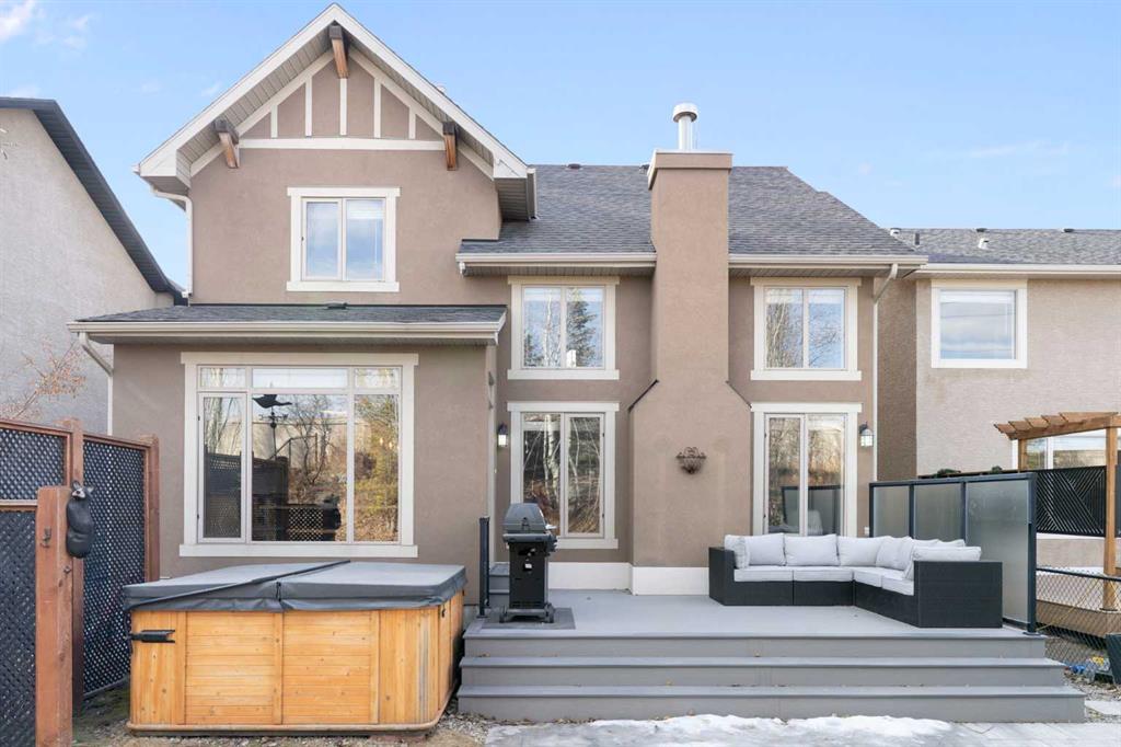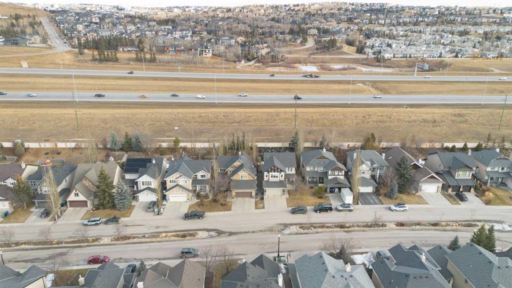 Welcome to the newest family home to hit the market in the beautiful community of Discovery Ridge. This property showcases unique and tasteful copper accents including the front door, hood vent, and eating bar. A covered front porch leads into a spacious entry, private front office, convenient mudroom, walkthrough laundry and pantry, and a beautifully appointed kitchen with white herringbone tile backsplash, wet island, rich hardwood floors, and a bright eating nook. The open-to-above living room features soaring two-storey vaulted ceilings, a stone fireplace with a hearty wood mantle, and a wall of windows overlooking the landscaped backyard, composite deck, and patio. Upstairs offers a thoughtful layout with three bedrooms (no shared walls), open rail staircase, full bath, and a generous primary retreat with double walk-in closets and a large ensuite with steam shower. The fully developed basement includes a gym, guest bedroom with 3-piece ensuite, spacious recreation areas, fireplace feature wall, and ample storage. Comfort is enhanced year-round with the addition of central air conditioning. With over 3,100 sq ft of developed space, 4 bedrooms, 3.5 bathrooms, and a double attached garage, this turn-key home is ready to welcome a new family. Residents of Discovery Ridge enjoy exceptional access to green space and nature, including nearby Griffith Woods Park with forested pathways along the Elbow River, along with playgrounds, sports courts, and convenient local retail amenities — all within a peaceful, tree-lined setting with excellent connectivity to major routes and west-side shopping hubs.