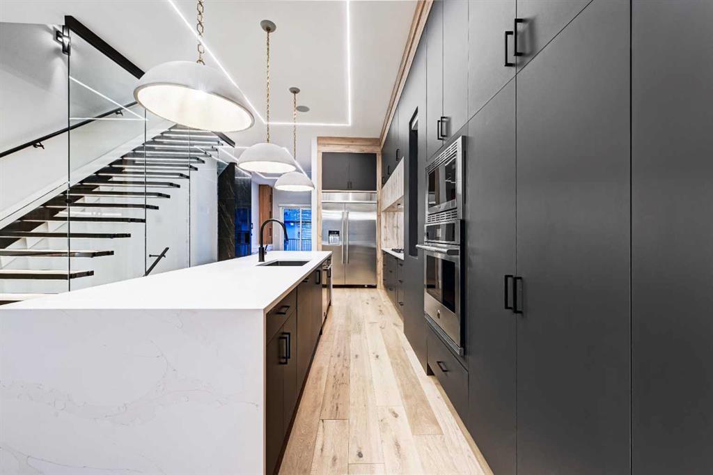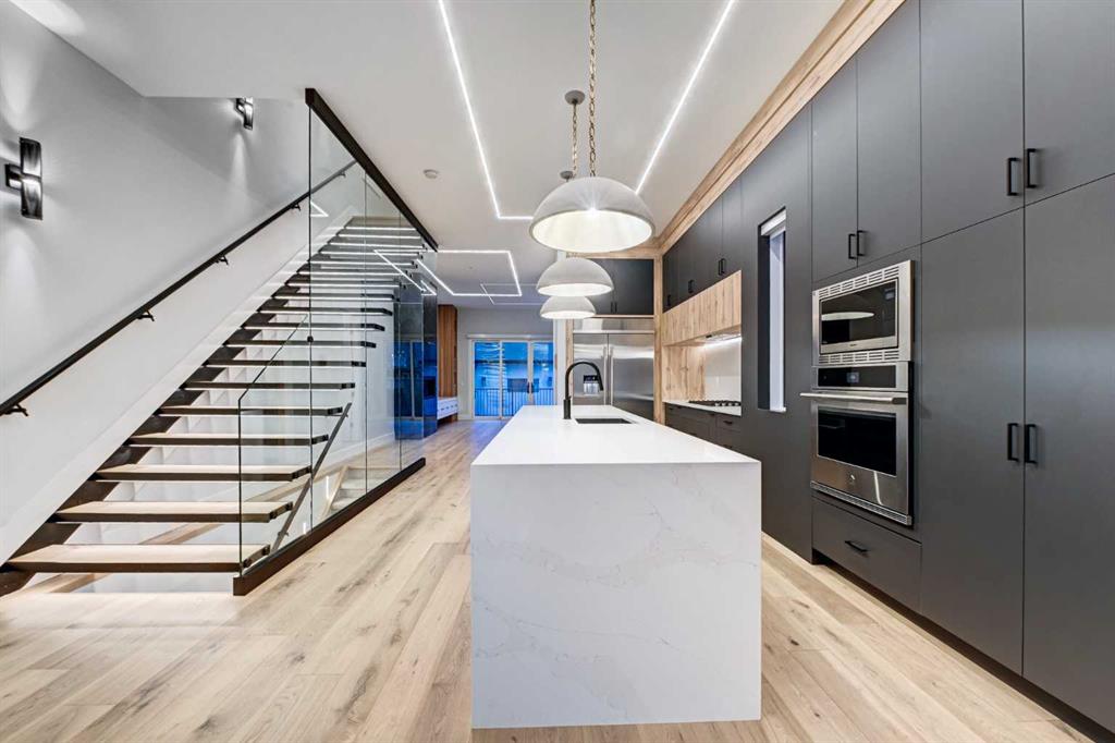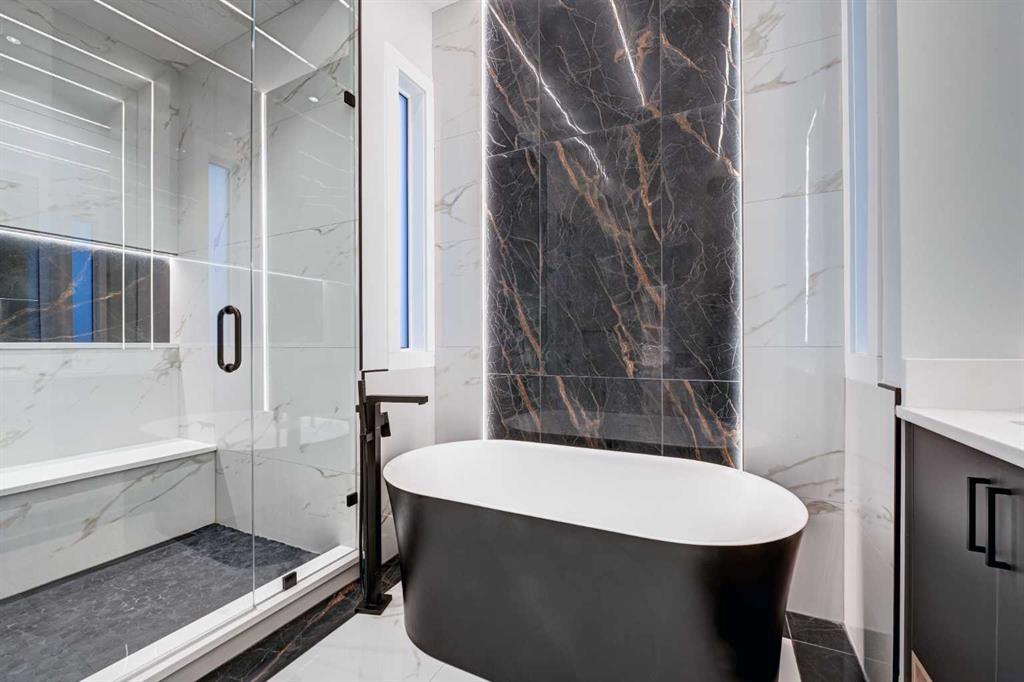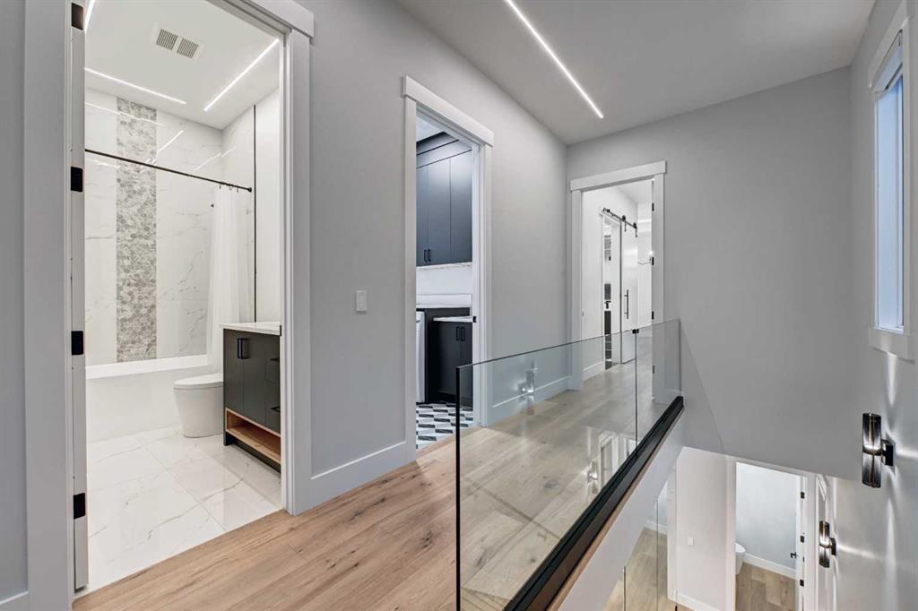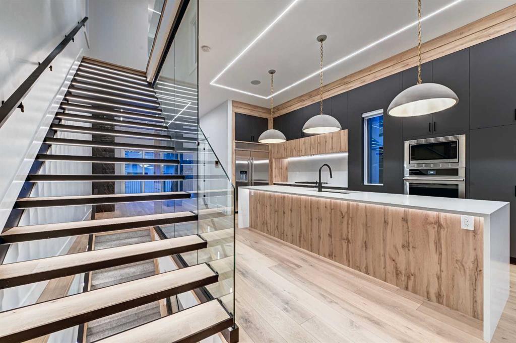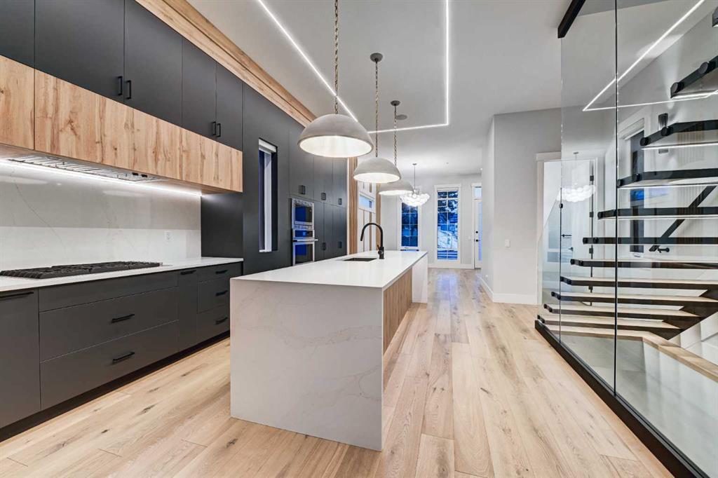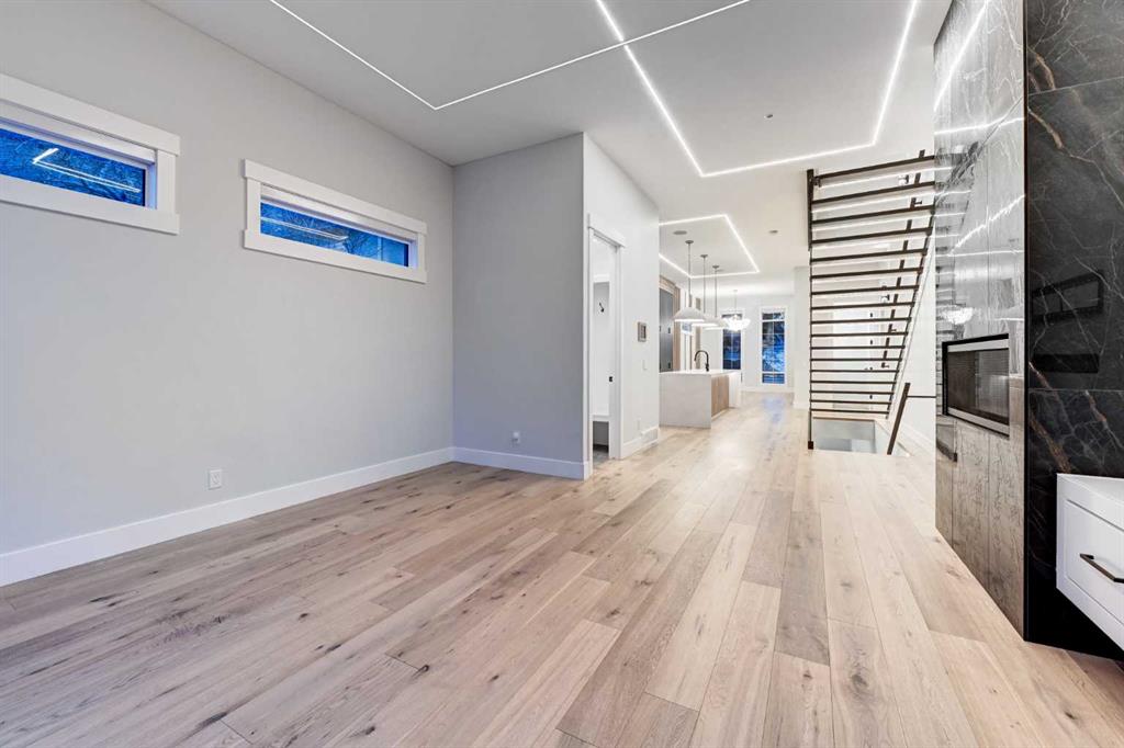 Set in one of Upper Mount Royal’s most prestigious pockets, this newly built residence delivers a refined blend of architectural elegance and modern design across more than 3,000 sq ft of meticulously crafted living space. With 3+1 bedrooms and a thoughtfully curated layout, this home captures the essence of upscale inner-city living while embracing the timeless character of the neighbourhood. A striking brick façade creates a lasting first impression, while the west-facing outdoor space invites warm afternoon light and effortless entertaining. Inside, the main level is defined by soaring 11-foot ceilings, wide-plank hardwood flooring, and an abundance of natural light that enhances every detail. A fully integrated smart home system elevates daily living with automated power blinds and customizable lighting, while upgraded designer light fixtures add an extra layer of sophistication throughout. The open-concept design seamlessly connects each space, complemented by a well-appointed mudroom and elegant powder room. At the heart of the home, the kitchen is designed to impress—featuring a massive waterfall quartz island, sleek custom cabinetry, and a high-end gas range that will appeal to both everyday living and elevated entertaining. The adjoining living room offers a stunning focal point with its tiled fireplace and custom-built media centre, while large sliding glass doors create a seamless transition to the backyard. A statement floating staircase leads to the upper level, where 10-foot ceilings continue the sense of openness. Here, you’ll find three generously sized bedrooms, a beautifully finished 4-piece bathroom, and a fully equipped laundry room with sink and ample storage. The primary suite is a true retreat, offering a spacious walk-in closet and a spa-inspired 5-piece ensuite complete with a freestanding soaker tub, oversized glass shower, and dual vanity. The fully developed lower level expands the home’s versatility with 9-foot ceilings and the option for in-floor heating. Designed for both relaxation and recreation, it features a large family room with a wet bar—perfect for movie nights or hosting guests—along with a dedicated exercise space, a fourth bedroom, and an additional 4-piece bathroom. Additional highlights include air conditioning, a rear deck with a BBQ gas line, and a heated double detached garage—ideal for Calgary’s winter months—ensuring comfort and convenience year-round. Located just moments from the vibrant energy of 17th Avenue SW, as well as top-rated schools, parks, and transit, this home offers an exceptional lifestyle with quick access to the downtown core via 14th Street SW. A rare opportunity to own a brand-new luxury home in one of Calgary’s most iconic communities—where timeless location meets contemporary living.