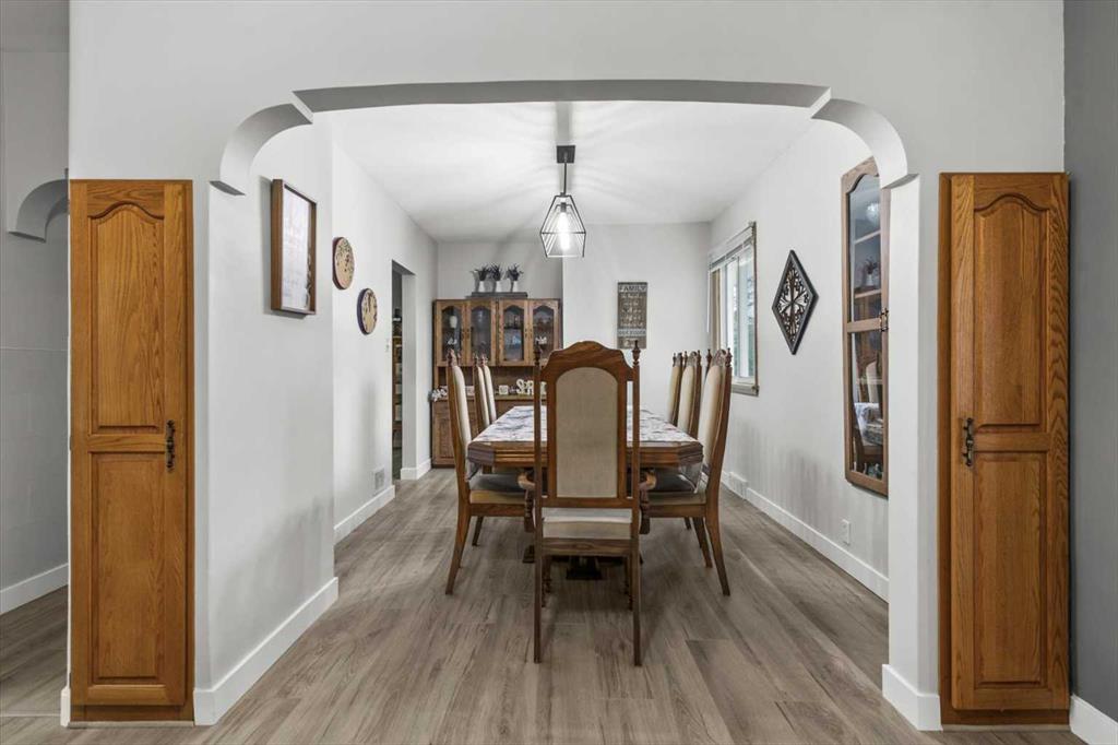 Warm and inviting, solidly built 1954 raised bungalow located in the community of Renfrew. This beautifully maintained home offers over 1,300 sq. ft. above grade on a gorgeous 50’ x 120’ fenced lot. The main floor features a spacious front living room, two bedrooms, four-piece bath, large open kitchen, and a generous dining area, ideal for family living or entertaining. The fully finished lower level offers two oversized bedrooms (note large windows and roll shutters), renovated three-piece bath, and a very large family room with large windows that allow an abundance of natural light. The rear yard is large and fully fenced, complete with a hot tub, double detached garage (24' 10" x 22'), and additional RV parking. Recent upgrades include painted interior throughout (2023), six new vinyl windows (four on the main level and two downstairs), luxury vinyl plank flooring throughout the main floor, hot water tank (2022), high-efficiency furnace (2018), renovated lower-level bathroom (2022), back fence (2022), back deck (2021) and shingles replaced in 2016. Ideally located close to downtown, parks and pathways, the Bow River, transit, shopping, and schools. This property offers both comfort and convenience in a highly desirable location.