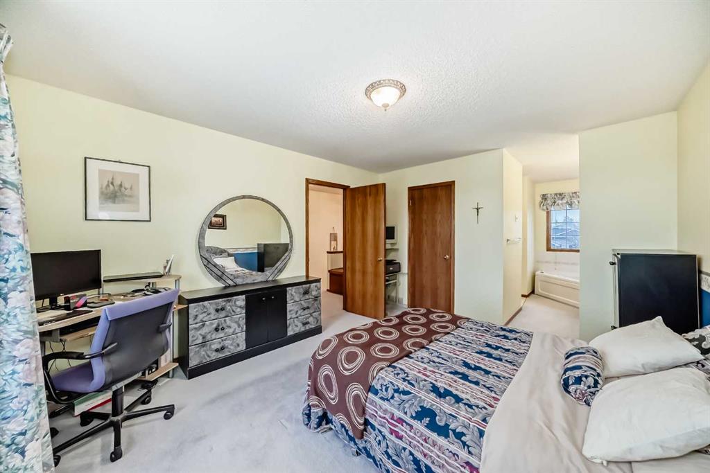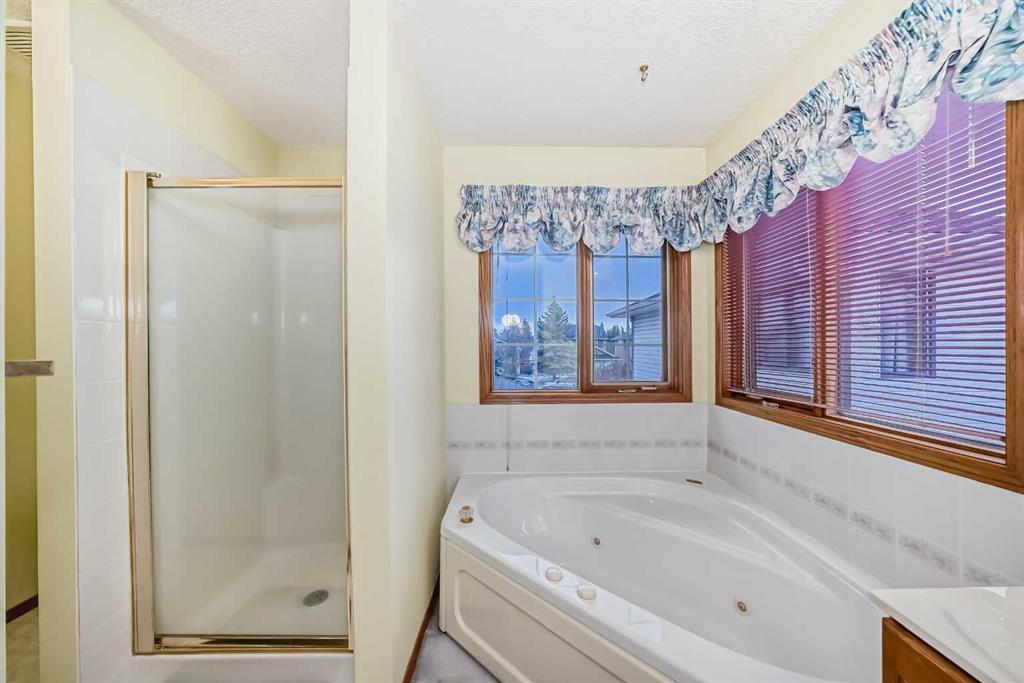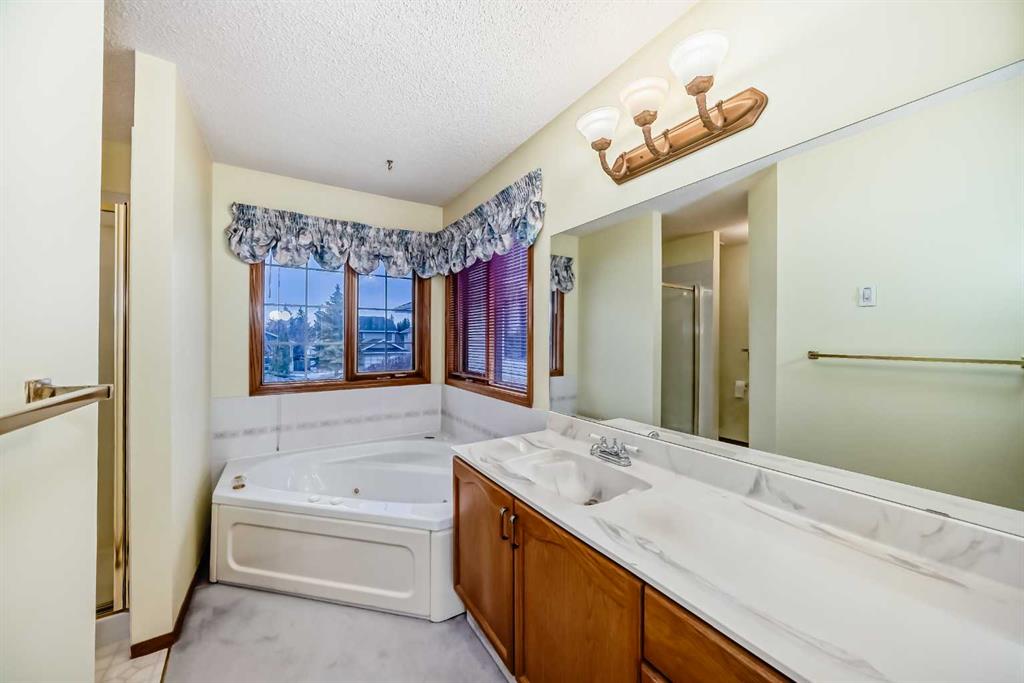 OPEN HOUSE ON SAT & SUN MAR 14 & 15 FROM 2:00PM -4:00PM. Welcome to this well-kept home in a desirable cul-de-sac location, offering comfort, space, and convenience. Spacious main level, this property features neutral finishes, an elegant open-railing staircase, and a functional kitchen complete with island, walk-in pantry, and a large bay nook opening onto the deck. The main floor also offers laundry and a warm family room with fireplace. Spacious bedrooms upstairs include a primary suite with walk-in closet and a relaxing ensuite with jetted tub and separate shower. The basement is 95% finished, ideal for added family living or entertaining. Important updates include the furnace and hot water tank replaced in recent years, plus new roof and gutters in October 2025. Ideally located with easy access to Stoney Trail, Deerfoot Trail, and shopping including T&T Supermarket.