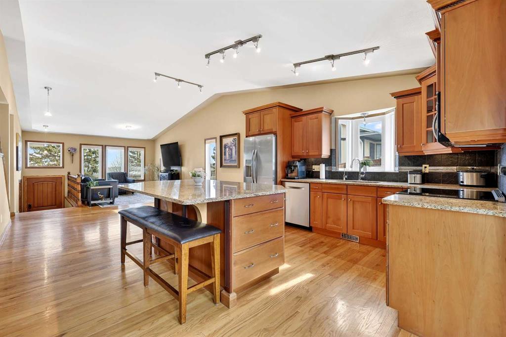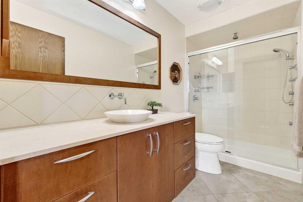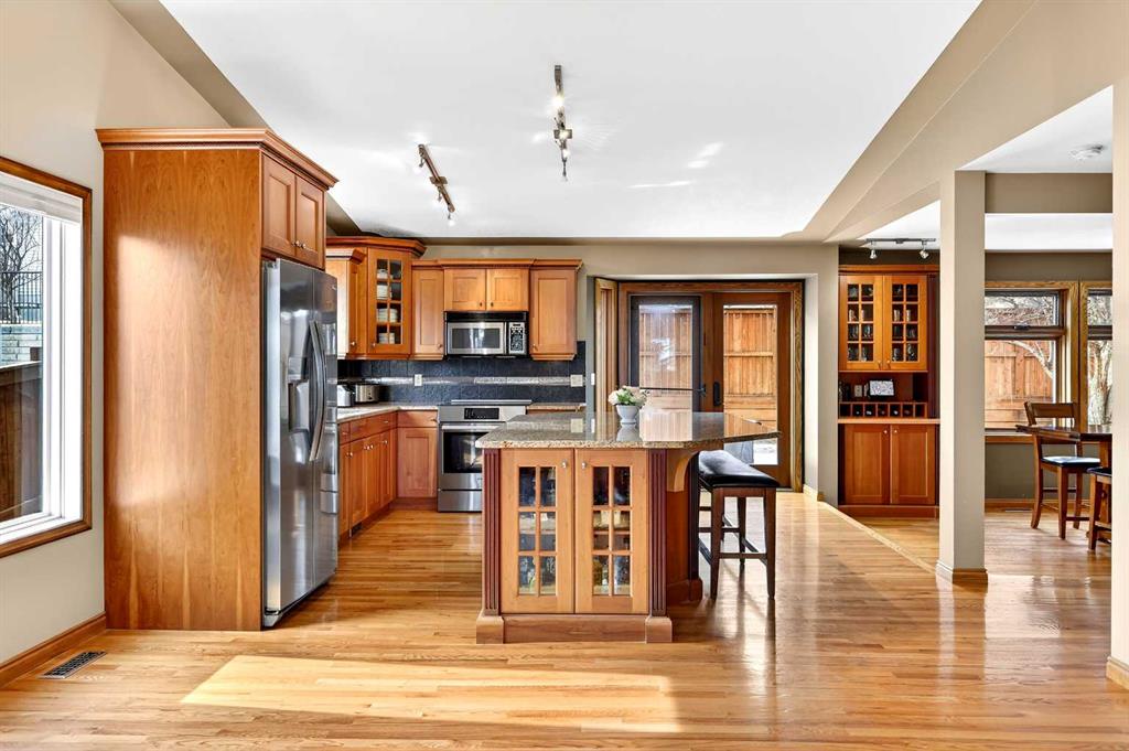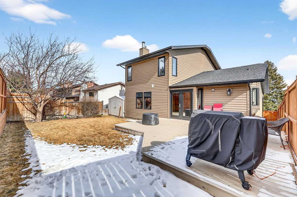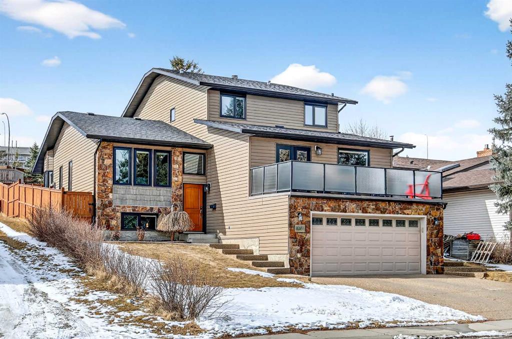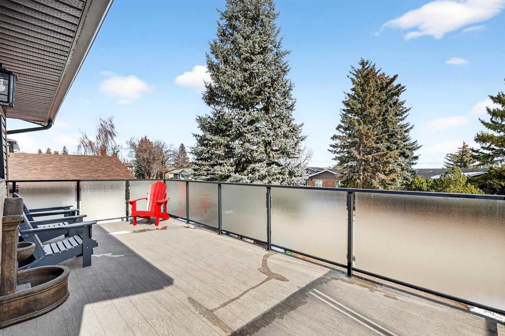 Welcome to this beautifully maintained and fully developed two-storey home offering over 3,800 sq ft of total developed living space, ideally situated on a quiet street in the highly desirable community of North Haven. This exceptional location places you just steps from schools, playgrounds, Nose Hill Park, the North Haven off-leash dog park, public transit, and provides quick access to 14th Street—perfect for families seeking both space and convenience. The main level welcomes you with soaring cathedral ceilings that create an open and airy feel throughout the main living areas. The bright living room is anchored by a cozy wood-burning fireplace, while the adjacent dining area flows seamlessly into the well-appointed kitchen. Designed with both functionality and entertaining in mind, the kitchen features granite countertops, new stainless steel induction stove, new stainless steel fridge, abundant cabinetry, and generous counter space. From here, step outside onto the composite deck and enjoy the beautifully maintained west-facing backyard, perfect for summer BBQs, outdoor dining, or relaxing in the sunshine. A truly unique feature of this home is the main floor illegal suite with its own private entrance, offering incredible flexibility for multi-generational living or a nanny suite. This self-contained space includes one bedroom, a full bathroom, kitchen with new white appliances, spacious living room, and a private terrace balcony, providing comfort and privacy for extended family or guests. Upstairs you will find three additional bedrooms, including a spacious primary retreat complete with a walk-in closet and 5-piece ensuite featuring a dual sink vanity, subway tile shower, and relaxing jet soaker tub. Two additional well-sized bedrooms are located near the 4-piece main bathroom, finished with modern touches including a rain shower. The fully developed basement offers additional versatile living space ideal for relaxing or entertaining. This level features a large family room with open space currently used as a billiards area, perfect for movie nights, games, or gatherings. A den currently used as a media/music room, a 3-piece bathroom, and a large laundry room with sink, built-in cabinetry, and ample storage complete the lower level. This home has had most of the windows replaced in 2024. Completing the property is the garage equipped with 220V power, ideal for workshop use, hobbies, or electric vehicle charging. The west-facing backyard serves as a private outdoor retreat, beautifully landscaped with mature greenery, garden beds, and a convenient storage shed for tools and outdoor equipment. Whether gardening, entertaining, or simply unwinding in the sunshine, this inviting outdoor space offers plenty of room to enjoy. With quality construction, a rare main floor illegal suite , and an exceptional location, this well-loved home presents a fantastic opportunity to own a spacious property in one of North Haven’s most established and sought-after communities.