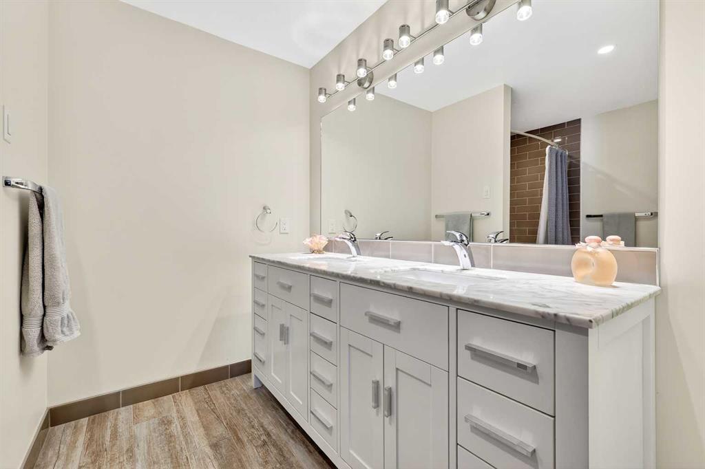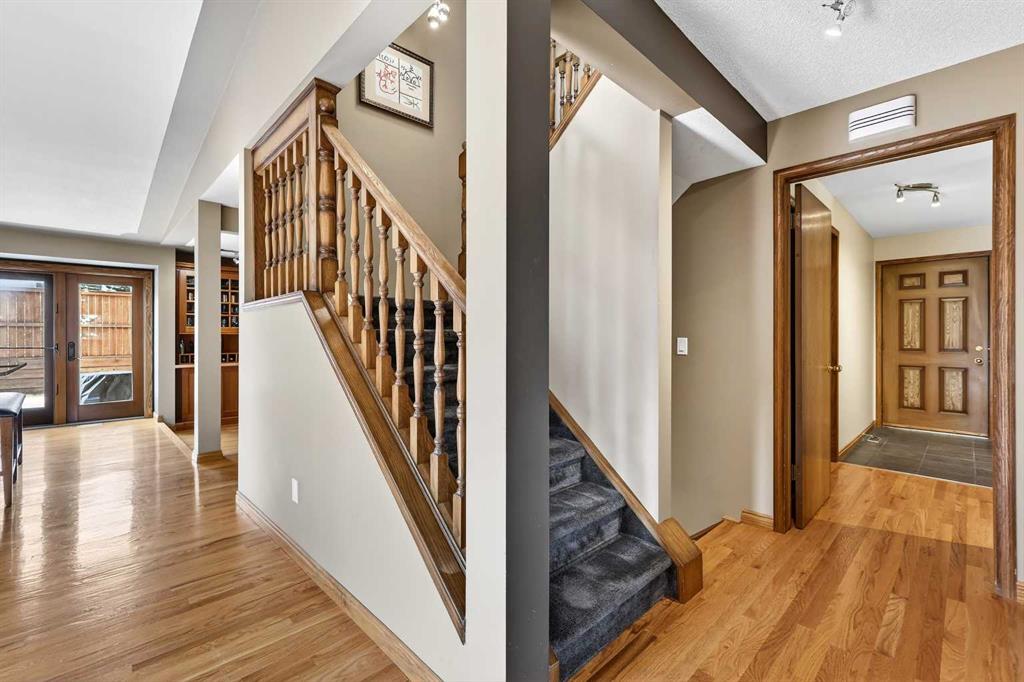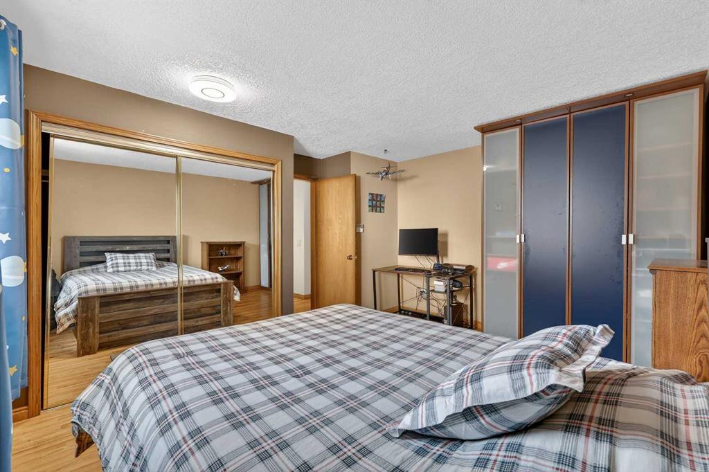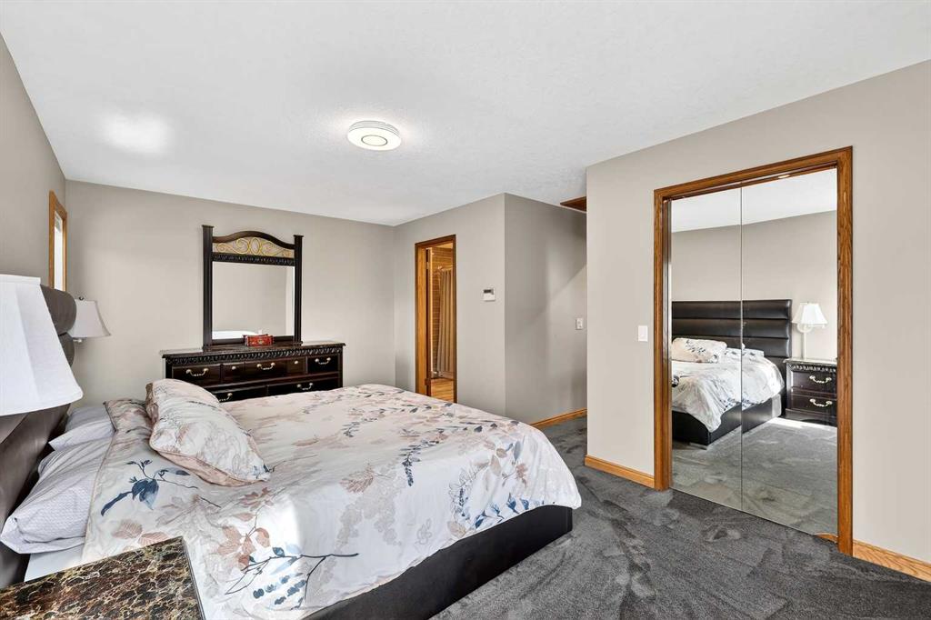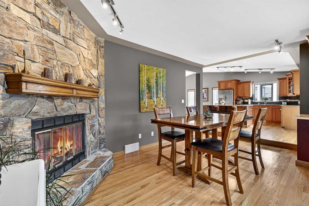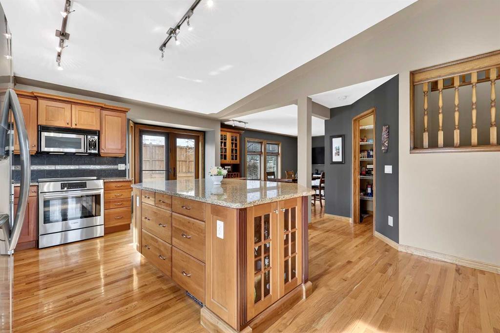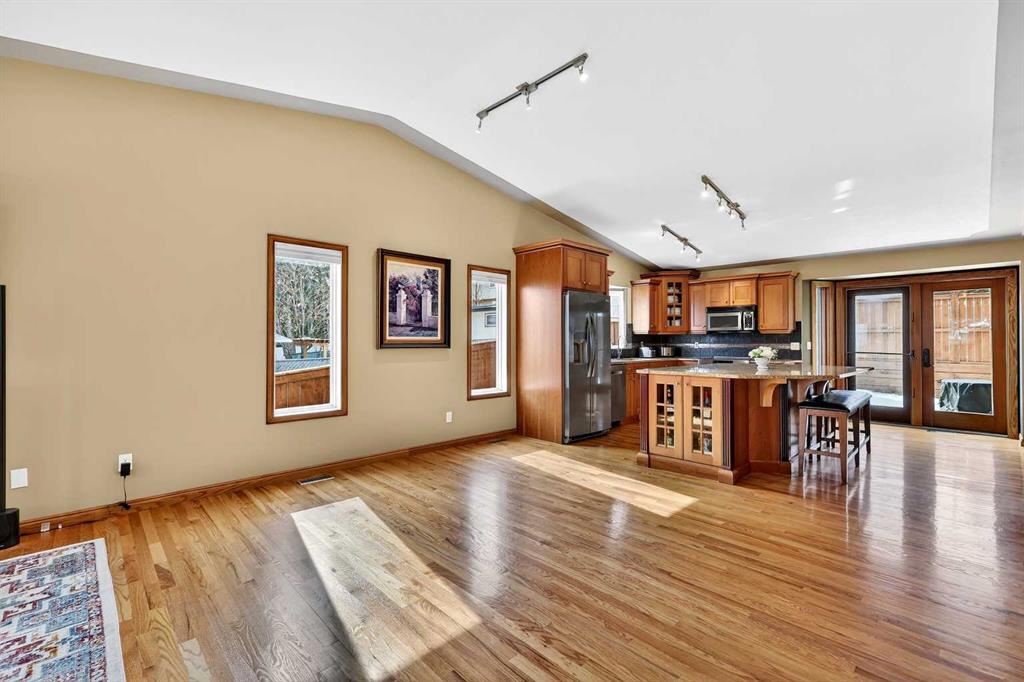 Welcome to this beautifully maintained and fully developed two-storey home offering over 3,800 sq ft of total developed living space, ideally situated on a quiet street in the highly desirable community of North Haven. This exceptional location places you just steps from schools, playgrounds, Nose Hill Park, the North Haven off-leash dog park, public transit, and provides quick access to 14th Street—perfect for families seeking both space and convenience. The main level welcomes you with soaring cathedral ceilings that create an open and airy feel throughout the main living areas. The bright living room is anchored by a cozy wood-burning fireplace, while the adjacent dining area flows seamlessly into the well-appointed kitchen. Designed with both functionality and entertaining in mind, the kitchen features granite countertops, new stainless steel induction stove, new stainless steel fridge, abundant cabinetry, and generous counter space. From here, step outside onto the composite deck and enjoy the beautifully maintained west-facing backyard, perfect for summer BBQs, outdoor dining, or relaxing in the sunshine. A truly unique feature of this home is the main floor illegal suite with its own private entrance, offering incredible flexibility for multi-generational living or a nanny suite. This self-contained space includes one bedroom, a full bathroom, kitchen with new white appliances, spacious living room, and a private terrace balcony, providing comfort and privacy for extended family or guests. Upstairs you will find three additional bedrooms, including a spacious primary retreat complete with a walk-in closet and 5-piece ensuite featuring a dual sink vanity, subway tile shower, and relaxing jet soaker tub. Two additional well-sized bedrooms are located near the 4-piece main bathroom, finished with modern touches including a rain shower. The fully developed basement offers additional versatile living space ideal for relaxing or entertaining. This level features a large family room with open space currently used as a billiards area, perfect for movie nights, games, or gatherings. A den currently used as a media/music room, a 3-piece bathroom, and a large laundry room with sink, built-in cabinetry, and ample storage complete the lower level. This home has had most of the windows replaced in 2024. Completing the property is the garage equipped with 220V power, ideal for workshop use, hobbies, or electric vehicle charging. The west-facing backyard serves as a private outdoor retreat, beautifully landscaped with mature greenery, garden beds, and a convenient storage shed for tools and outdoor equipment. Whether gardening, entertaining, or simply unwinding in the sunshine, this inviting outdoor space offers plenty of room to enjoy. With quality construction, a rare main floor illegal suite , and an exceptional location, this well-loved home presents a fantastic opportunity to own a spacious property in one of North Haven’s most established and sought-after communities.