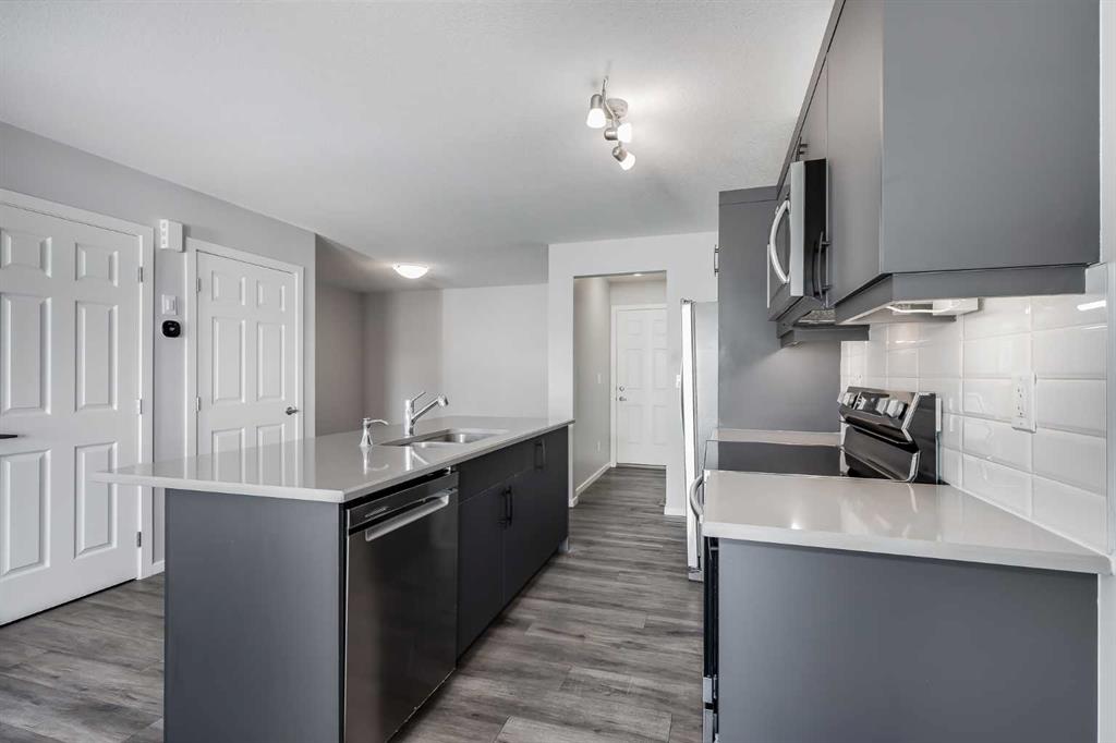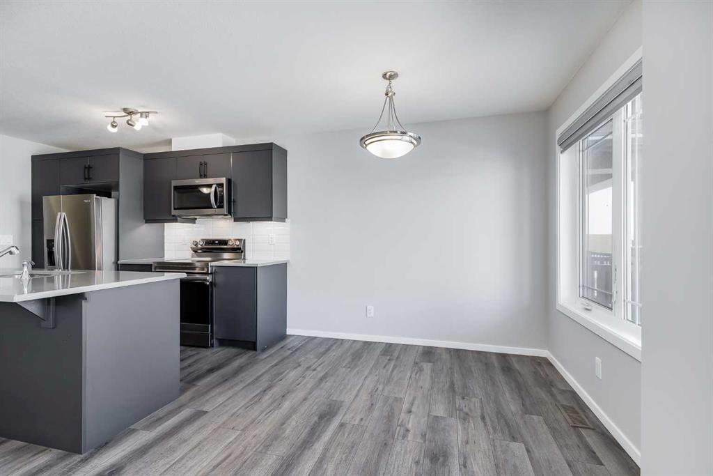 Located in the northwest Calgary community of Carrington, this move in ready, three bedroom, two and a half bathroom home with a double attached garage offers a comfortable layout and immediate possession. The main floor features an open kitchen with quartz counters, a large island, plenty of cabinet storage and a pantry. Fresh paint throughout and recently cleaned carpets make the home ready to move into. A front porch and private south facing upper deck provide welcoming outdoor spaces to enjoy. Carrington is a thoughtfully planned northwest community with roughly eighteen acres of parks and pathways throughout the neighbourhood including playgrounds, open green spaces, a community skate park, and a central pond area with walking paths and seating. Residents can enjoy easy access to walking and cycling pathways that connect throughout the community, making it easy to get outdoors and explore the surrounding parks and green spaces. Shopping, groceries, and everyday amenities are nearby along Centre Street and Country Hills Boulevard, while Calgary Transit bus service is available within the community with convenient access to major routes including Stoney Trail and Deerfoot Trail.