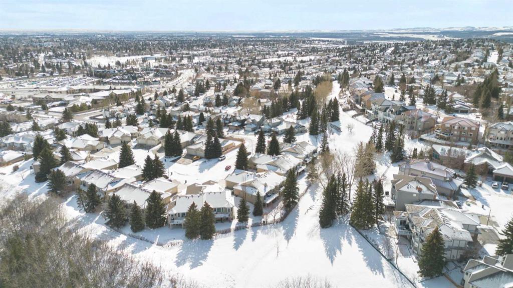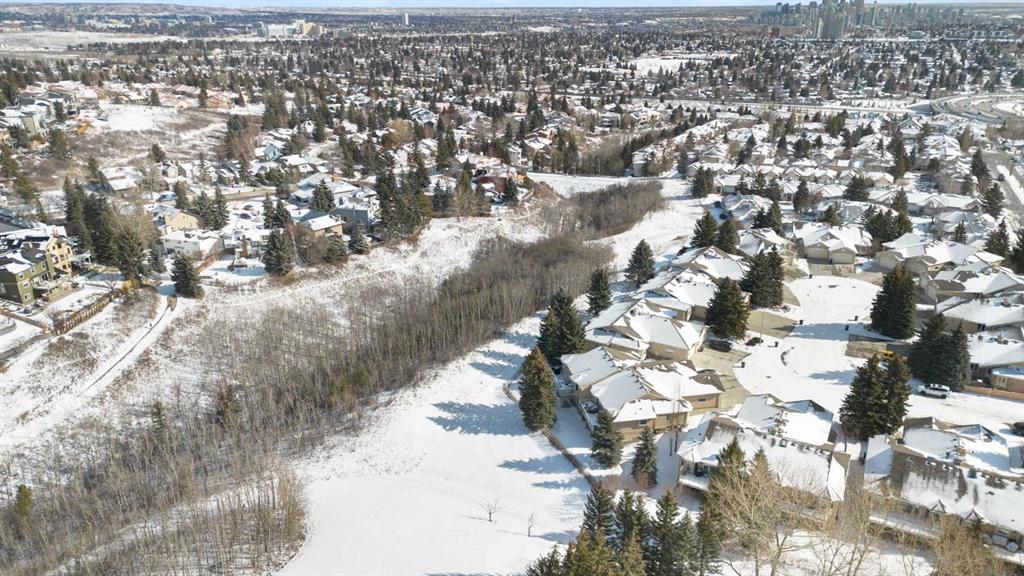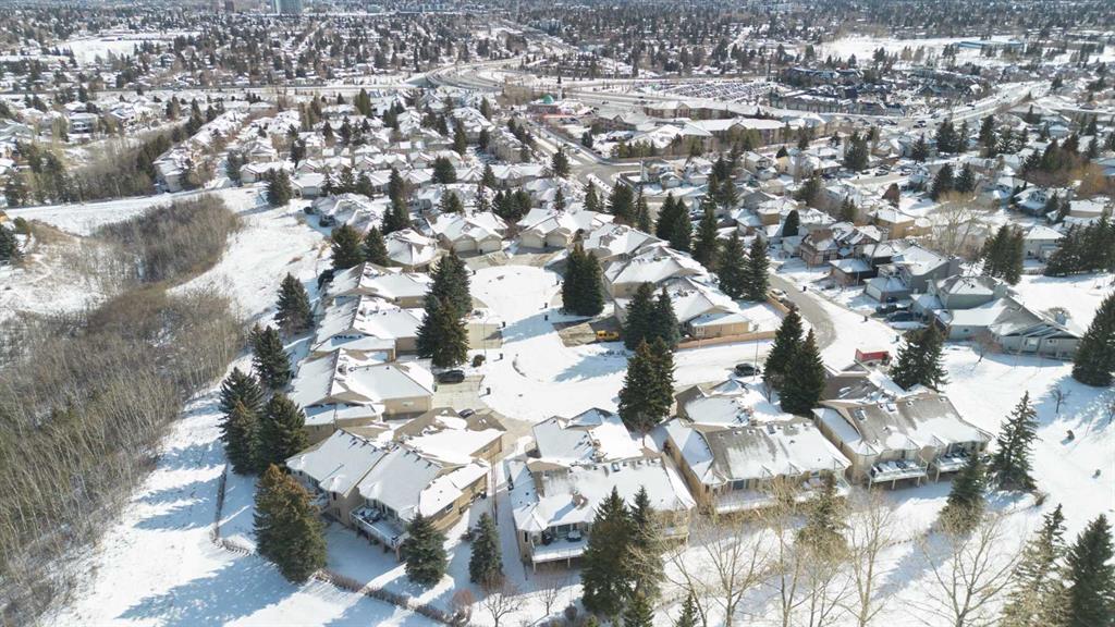 This is a truly special location. Tucked away in a private cul-de-sac, this spacious bungalow villa backs onto a beautiful greenspace and walking path framed by mature trees, offering privacy and a serene setting. Christie Park is an upscale hidden gem, conveniently located close to downtown, transit, shopping, services, and major roadways; yet it feels a world away. Step out your back door and onto the walking paths connecting to Strathcona Ravine, Edworthy Park, and Calgary’s extensive river pathway system. You will feel like you are miles from the city. Designed for an ideal “lock-and-leave” lifestyle, this low-maintenance home has no condominium fee, only a small HOA that covers snow removal and landscaping. Offering over 2,700 sq. ft. of living space, the home features four bedrooms (fourth lower bedroom does not have a egress window), 2.5 bathrooms and a fully developed walk-out lower level. Generous principal rooms make this home perfect for entertaining and the vaulted ceiling is a striking architectural feature. The kitchen garden door opens to an expansive balcony, an ideal space for outdoor entertaining or simply enjoying the peaceful, treed setting. The second main floor bedroom is perfect flex space and perfect for a home office. Other features include convenient main floor laundry and an attached garage with a polyaspartic-coated floor adds easy clean-up. Lovingly maintained for over 30 years, the home has seen updates which include Lux windows at the back of the home, upgraded furnace and hot water tank, roof shingles, and a new washer and dryer. A rare opportunity to secure an elegant, low-maintenance bungalow villa in one of Calgary’s most desirable and quietly prestigious locations. A wonderful opportunity to make this your dream home.