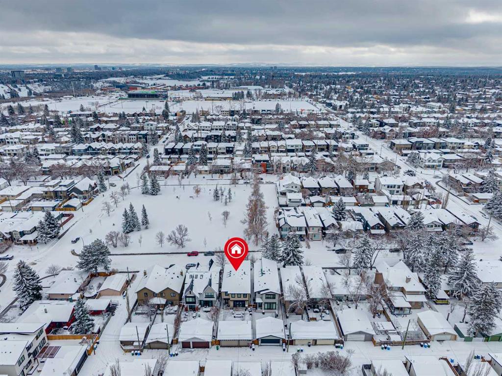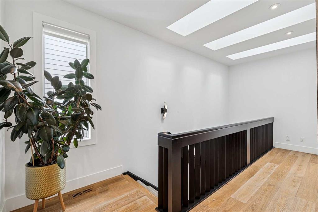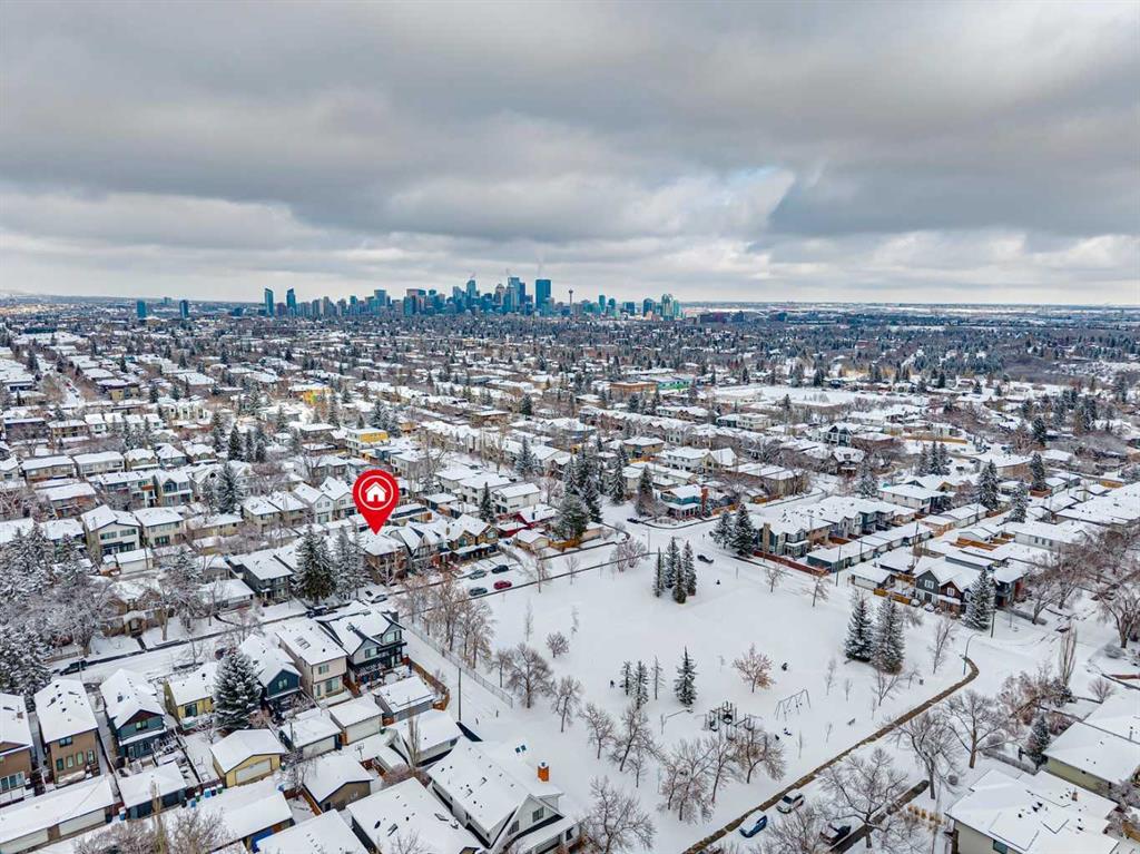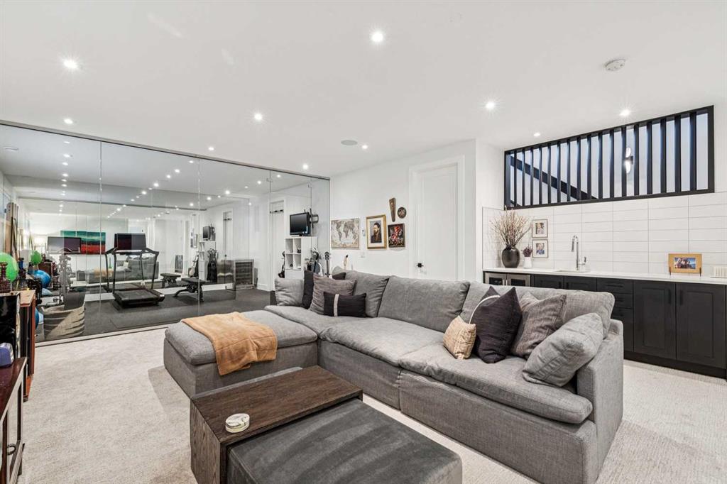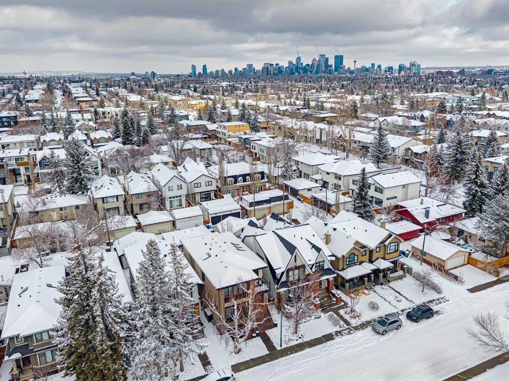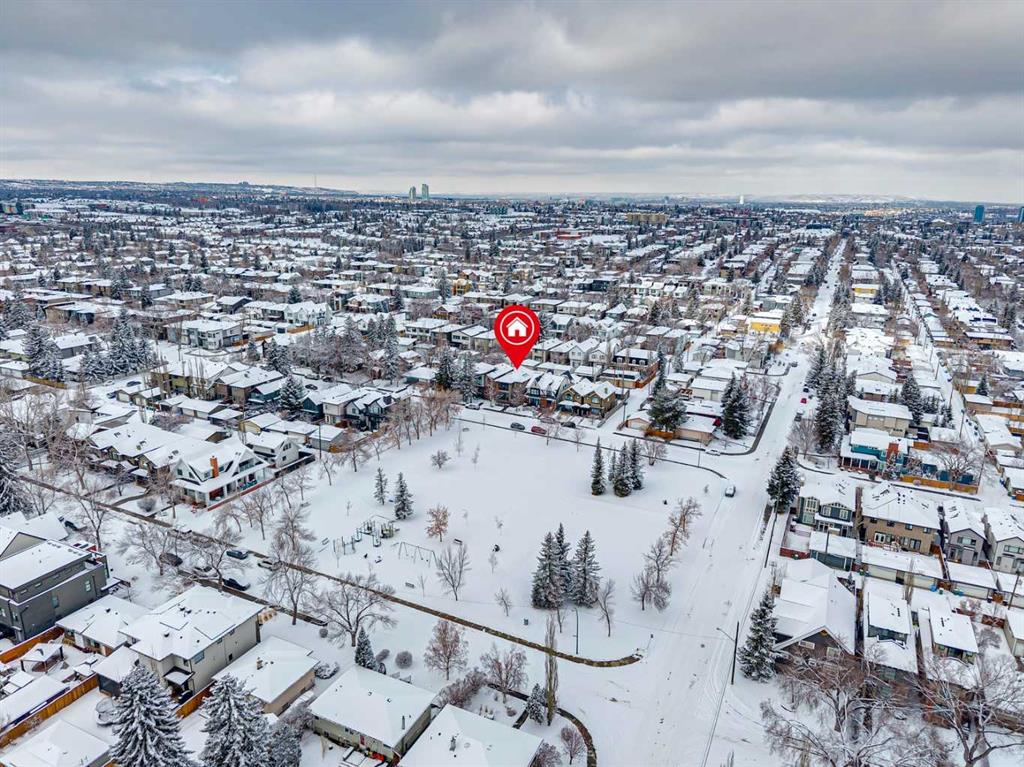 Parkside living meets elevated design in this luxurious detached home by award-winning custom builder CNJ Developments, ideally positioned on a tree-lined street in a prime location directly facing a green space. Thoughtful comfort upgrades elevate everyday living including central air conditioning, central vacuum, a power humidifier & built-in speakers across all 3 levels. Exceptional functionality & style come together in the chef-inspired kitchen where abundant 2-toned cabinetry, quartz countertops & high-end stainless steel appliances support both everyday cooking & entertaining. A Wolf gas range & Sub-Zero refrigerator anchor the appliance package while a beverage fridge, custom pantry & large centre island encourage casual gathering. Centring the open concept space, the dining room with chic lighting & clear sightlines promotes effortless conversation. Relaxation unfolds in the living room where a gas fireplace framed by built-ins creates a warm focal point while an entire wall of windows opens to the backyard, encouraging a seamless indoor & outdoor lifestyle. Organization remains simple thanks to a custom mudroom designed to store everyday essentials & seasonal gear. Productivity finds a quiet setting in the private main floor den where oversized windows & a wood ceiling detail create a sophisticated home office environment. Natural light continues upstairs where skylights brighten the hallway leading to the primary retreat. Oversized windows frame park views while a private balcony offers a peaceful setting for morning coffee or evening relaxation. An elegant tray ceiling enhances the sense of space while the luxurious ensuite includes dual vanities, a deep soaker tub, heated floors & an oversized steam shower. A skylight introduces additional daylight while a custom walk-in closet supports organized daily routines. Two additional bedrooms feature spacious layouts with wallpaper feature walls while a stylish 4-piece bathroom & convenient upper laundry complete the level. The fully finished lower living expands the home with heated floors that provide consistent comfort throughout. Evenings gather easily in the recreation room for movies or games while a wet bar keeps snacks & drinks within easy reach. Fitness routines remain convenient with a dedicated home gym while a fourth bedroom, versatile den & modern 4-piece bathroom offer flexibility for guests or hobbies. Outdoor living continues in the fully fenced backyard where children & pets have room to play & a patio invites summer barbeques & quiet evenings outdoors. Added privacy is created by the triple detached garage accessed from the rear lane. Sunny south exposure highlights the front patio where peaceful park views create a welcoming place to relax. Sandy Beach Park, the Elbow River pathways & the vibrant amenities of Marda Loop including boutique shops, tennis courts, the outdoor pool & acclaimed dining are all within walking distance, supporting an exceptional inner-city lifestyle.