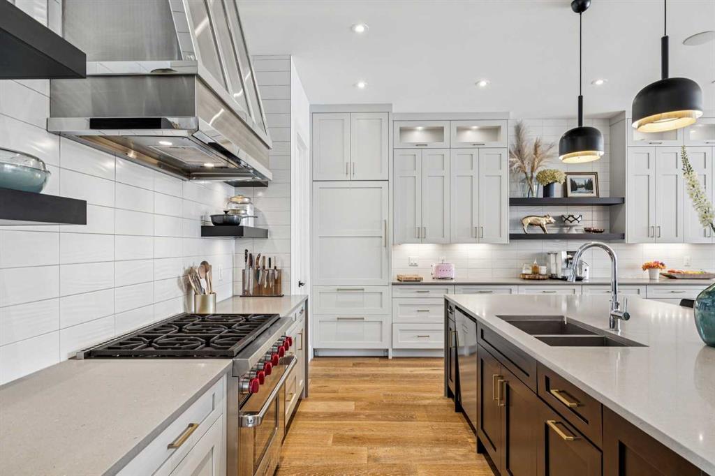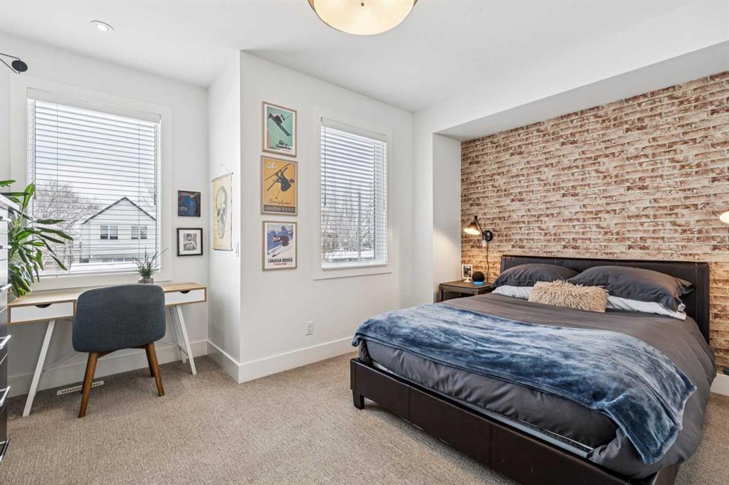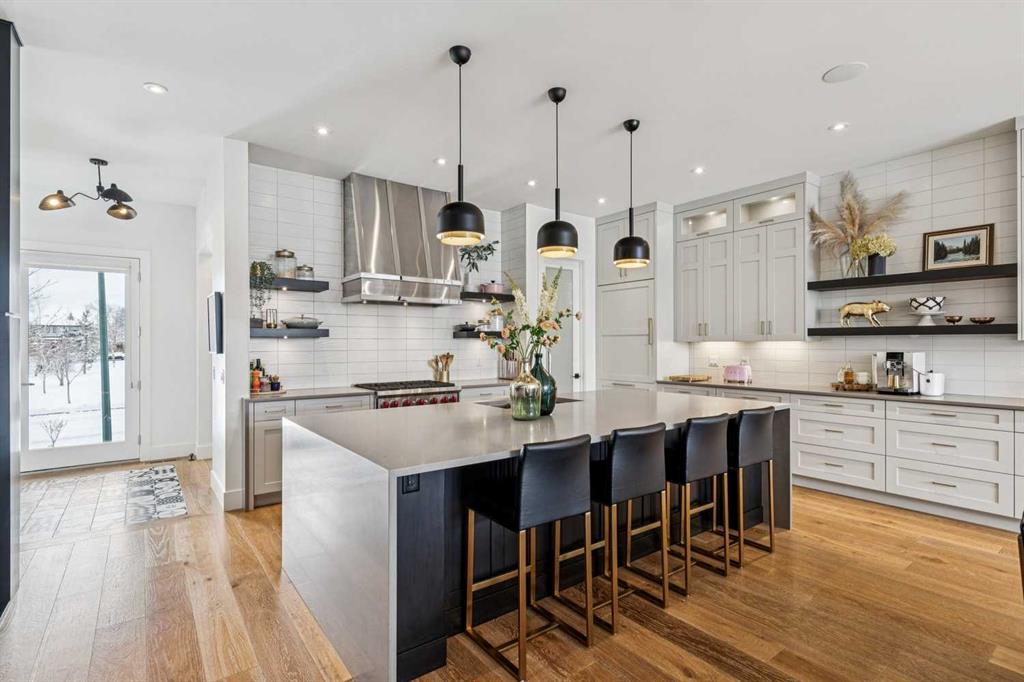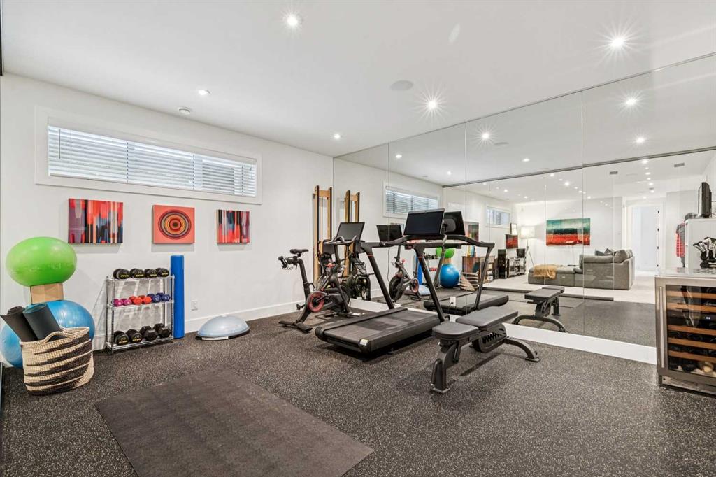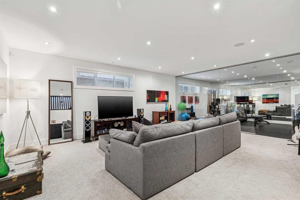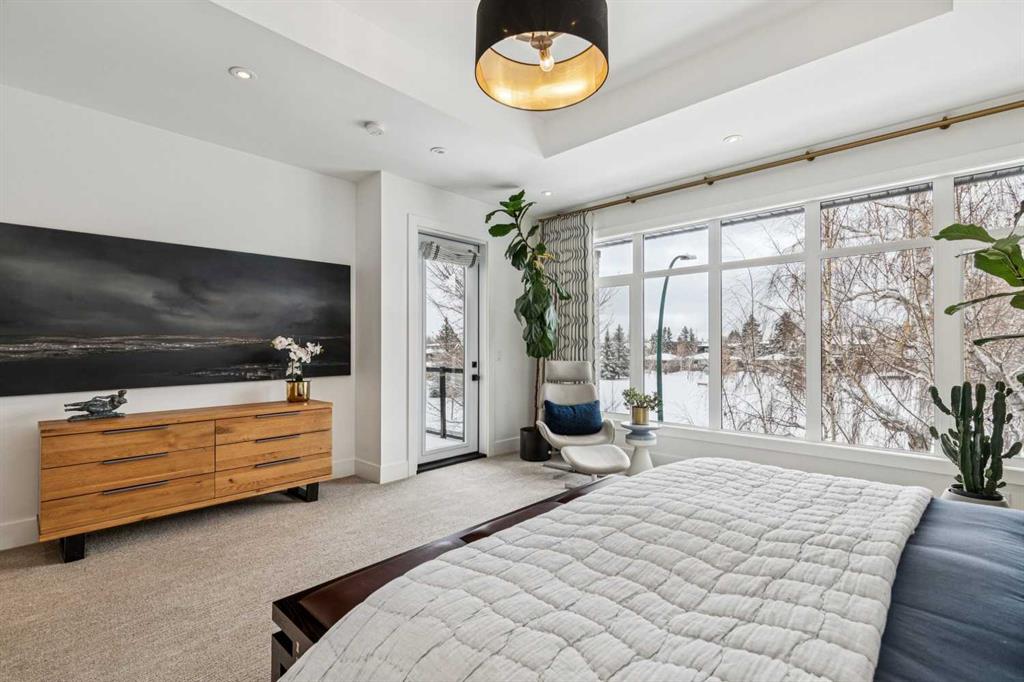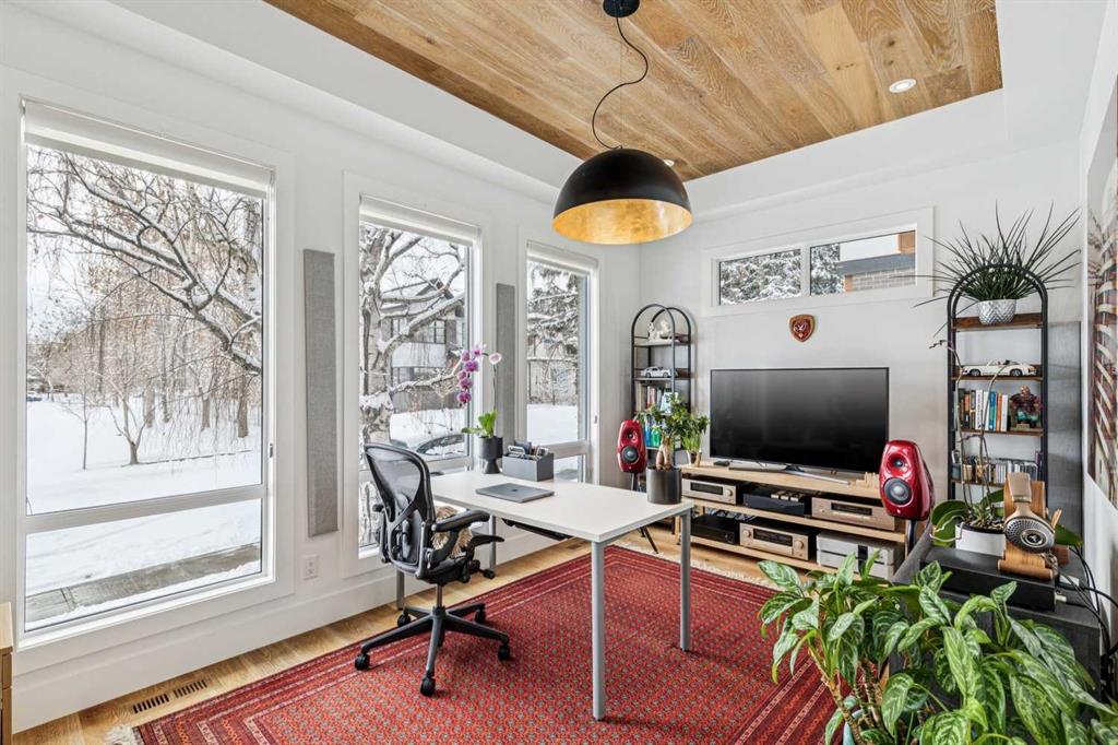 Parkside living meets elevated design in this luxurious detached home by award-winning custom builder CNJ Developments, ideally positioned on a tree-lined street in a prime location directly facing a green space. Thoughtful comfort upgrades elevate everyday living including central air conditioning, central vacuum, a power humidifier & built-in speakers across all 3 levels. Exceptional functionality & style come together in the chef-inspired kitchen where abundant 2-toned cabinetry, quartz countertops & high-end stainless steel appliances support both everyday cooking & entertaining. A Wolf gas range & Sub-Zero refrigerator anchor the appliance package while a beverage fridge, custom pantry & large centre island encourage casual gathering. Centring the open concept space, the dining room with chic lighting & clear sightlines promotes effortless conversation. Relaxation unfolds in the living room where a gas fireplace framed by built-ins creates a warm focal point while an entire wall of windows opens to the backyard, encouraging a seamless indoor & outdoor lifestyle. Organization remains simple thanks to a custom mudroom designed to store everyday essentials & seasonal gear. Productivity finds a quiet setting in the private main floor den where oversized windows & a wood ceiling detail create a sophisticated home office environment. Natural light continues upstairs where skylights brighten the hallway leading to the primary retreat. Oversized windows frame park views while a private balcony offers a peaceful setting for morning coffee or evening relaxation. An elegant tray ceiling enhances the sense of space while the luxurious ensuite includes dual vanities, a deep soaker tub, heated floors & an oversized steam shower. A skylight introduces additional daylight while a custom walk-in closet supports organized daily routines. Two additional bedrooms feature spacious layouts with wallpaper feature walls while a stylish 4-piece bathroom & convenient upper laundry complete the level. The fully finished lower living expands the home with heated floors that provide consistent comfort throughout. Evenings gather easily in the recreation room for movies or games while a wet bar keeps snacks & drinks within easy reach. Fitness routines remain convenient with a dedicated home gym while a fourth bedroom, versatile den & modern 4-piece bathroom offer flexibility for guests or hobbies. Outdoor living continues in the fully fenced backyard where children & pets have room to play & a patio invites summer barbeques & quiet evenings outdoors. Added privacy is created by the triple detached garage accessed from the rear lane. Sunny south exposure highlights the front patio where peaceful park views create a welcoming place to relax. Sandy Beach Park, the Elbow River pathways & the vibrant amenities of Marda Loop including boutique shops, tennis courts, the outdoor pool & acclaimed dining are all within walking distance, supporting an exceptional inner-city lifestyle.