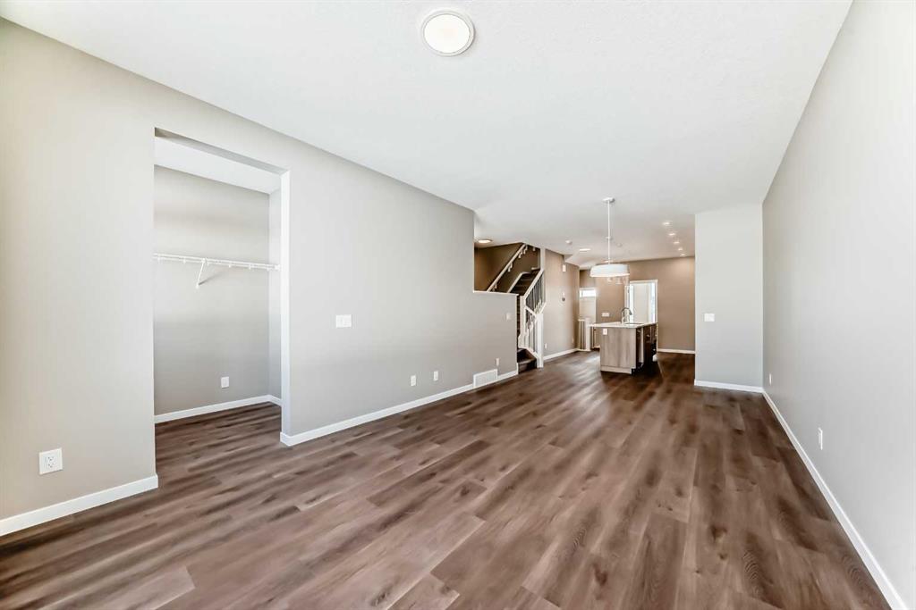 Welcome to the brand-new “Rayn” in Mahogany, a thoughtfully designed home that blends modern style, functional living, and family-friendly comfort. From the moment you step inside, the home makes a strong first impression with warm natural luxury vinyl plank flooring and a bright, contemporary interior that feels both welcoming and refined. The main floor is designed for everyday living and effortless entertaining with an open-concept layout that connects the kitchen, dining, and living areas seamlessly. At the heart of the home, the central kitchen features timeless white cabinetry extended to the bulkhead, sleek white quartz countertops, stainless steel appliances, and a marble-inspired backsplash that wraps the stand-alone chimney hood fan for a clean, upscale finish. A large island provides plenty of prep space, casual seating, and a natural gathering place for family and friends. The dining area sits comfortably between the kitchen and living room with room for a full dining table, while the rear living room is filled with natural light from impressive floor-to-ceiling windows. A convenient rear mudroom entry with a 2-piece bathroom adds everyday practicality, while the versatile flex room just off the kitchen can easily function as a home office, playroom, study space, or quiet reading area. A raised homework or tech nook overlooking the main floor adds another thoughtful and functional touch for busy households. Upstairs, a central bonus room creates the perfect place for movie nights, a kids’ lounge, or a comfortable space to unwind. The primary bedroom is privately positioned at the back of the home and features a large window, a spacious walk-in closet, and a well-appointed 4-piece ensuite with dual sinks and a full-size shower. Two additional bedrooms are well sized for family or guests, and the upper-floor laundry and linen storage help keep daily routines organized and convenient. Adding long-term flexibility, the home also includes a separate side entrance, offering the potential for private lower-level development or the option to explore a future secondary suite (a secondary suite would be subject to approval and permitting by the city/municipality). Mahogany is one of Calgary’s most sought-after lake communities, centered around Calgary’s largest freshwater lake and a spectacular 21-acre beachfront. Residents enjoy year-round recreation including swimming, paddleboarding, skating, scenic wetlands, and an extensive pathway network. The vibrant Urban Village offers restaurants, cafés, shops, and everyday services, while nearby schools, playgrounds, and quick access to Stoney Trail, Deerfoot Trail, and the amenities of Seton—including South Health Campus—make daily life both easy and connected. Mahogany offers the perfect balance of resort-style living and city convenience.