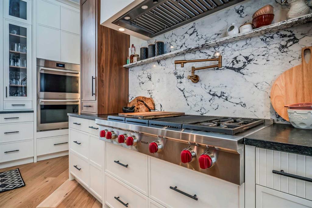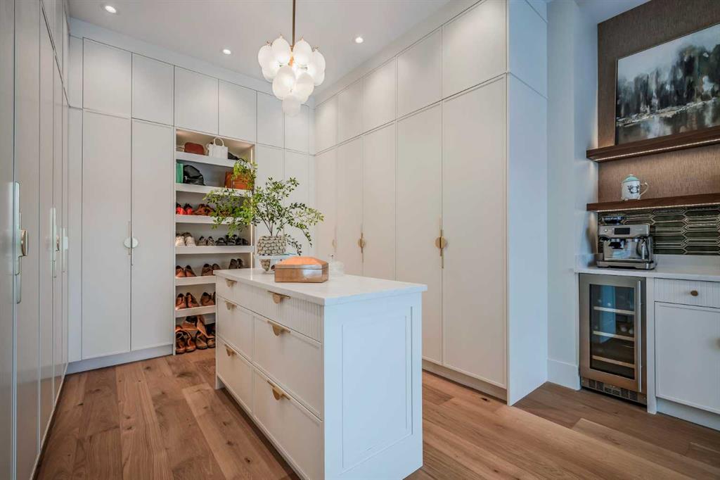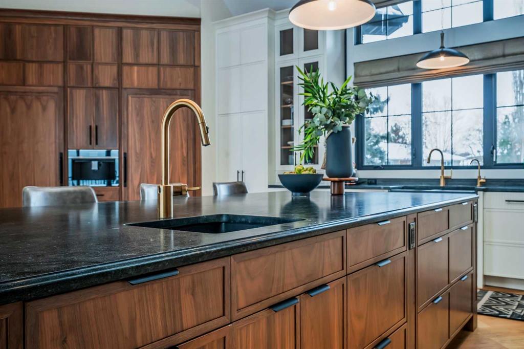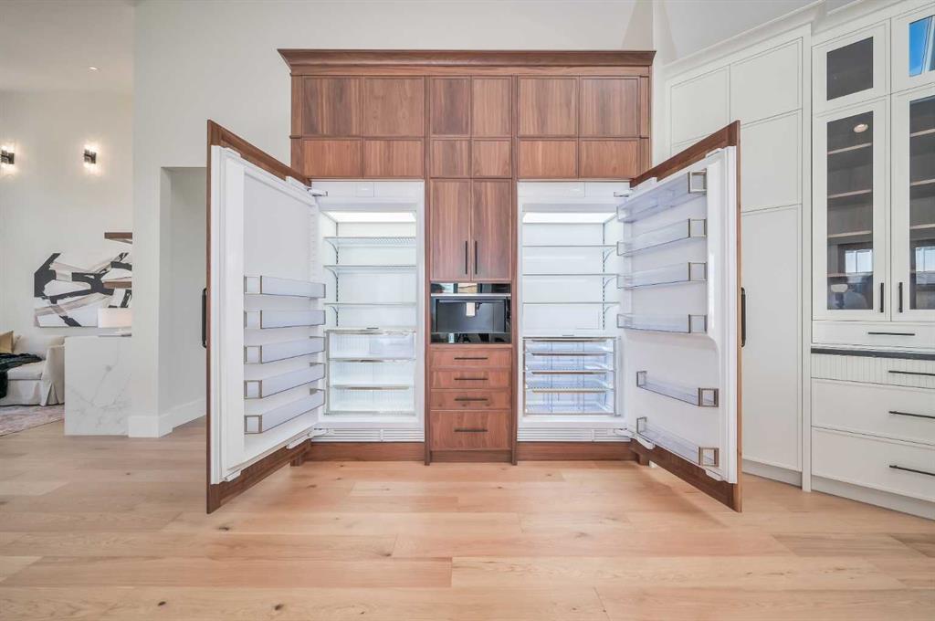 Welcome to a true showstopper—this custom-Two storey Home built by Monogram, is nestled in Altadore’s only cul-de-sac on an expansive 11,905 SqFt southwest-facing pie lot. Offering over 7,233 SqFt of refined living space, this home seamlessly blends architectural elegance with modern functionality. Step inside to soaring ceilings, natural light, and wide-plank white oak hardwood throughout. A spacious foyer leads to a stylish powder room adorned with quartz finishes. The open-concept kitchen and living area is a designer’s dream: 18-foot vaulted ceilings, skylights, and custom chandeliers enhance the airy ambiance. The gourmet kitchen features dual Sub-Zero fridge/freezer units, a Fisher & Paykel built-in espresso machine, custom oak-walnut cabinetry, and a black soapstone island with a farmhouse sink. A Wolf 6-burner gas range, pot filler, and double ovens make this space a chef’s paradise. The adjacent butler’s pantry offers a wine fridge, bar fridge, soapstone counters, and another farmhouse sink—perfect for entertaining. Slide open the glass doors from both the kitchen and living room to access two large decks overlooking the spacious backyard. The main living room features high ceilings adorned with wood beams and is anchored by a stunning wood-burning fireplace with built in walnut ottomans on either side and a built-in bar area—ideal for cozy nights or hosting guests. The south wing includes a formal study finished with beautifully built in walnut cabinetry and with the room wrappe in a gorgeous wallpaper that shouts sophistication. Just adjacent is a designer laundry room with quartz countertops, extensive cabinetry, and an LG steam drying rack. The grand primary suite is a luxurious escape, vaulted ceilings with wood beams, fireplace, a private balcony, spa-style ensuite with steam shower, soaker tub, dual vanities, and a large walk-in closet with solid wood cabinetry, quartz island, built-in coffee bar, and a second balcony. Upstairs, a cozy loft lounge with fireplace and built in cabinetry surrounding the T.V area. Just adjacent are to two generously sized bedrooms, each with walk-through closets and their own stylish full ensuites. The lower level is a sanctuary for relaxation and enjoyment with plush carpeting and zoned in-floor heating throughout. Jaw dropping ambiance as you enter the basement, painted in beautiful Terraccota clay with ambient lighting a feature soapstone bar with elongated walnut back cabinetry, wine room, wine fridge, mini fridge & dishwasher. Just adjacent is gym with vinyl plank flooring and water filtration, another bedroom, and a full 3-piece bathroom. On the other end of the basement two large bedrooms, a 5-piece bath, and a rec room painted in a rich, muted green with slightly cool undertones giving the room a refined lounge style feel with gas fireplace, wet bar and pool table. Prime location & minutes to schools, parks, tennis courts, golf course, many restaurants and shops & 963$ a square foot! Tremendouse value!