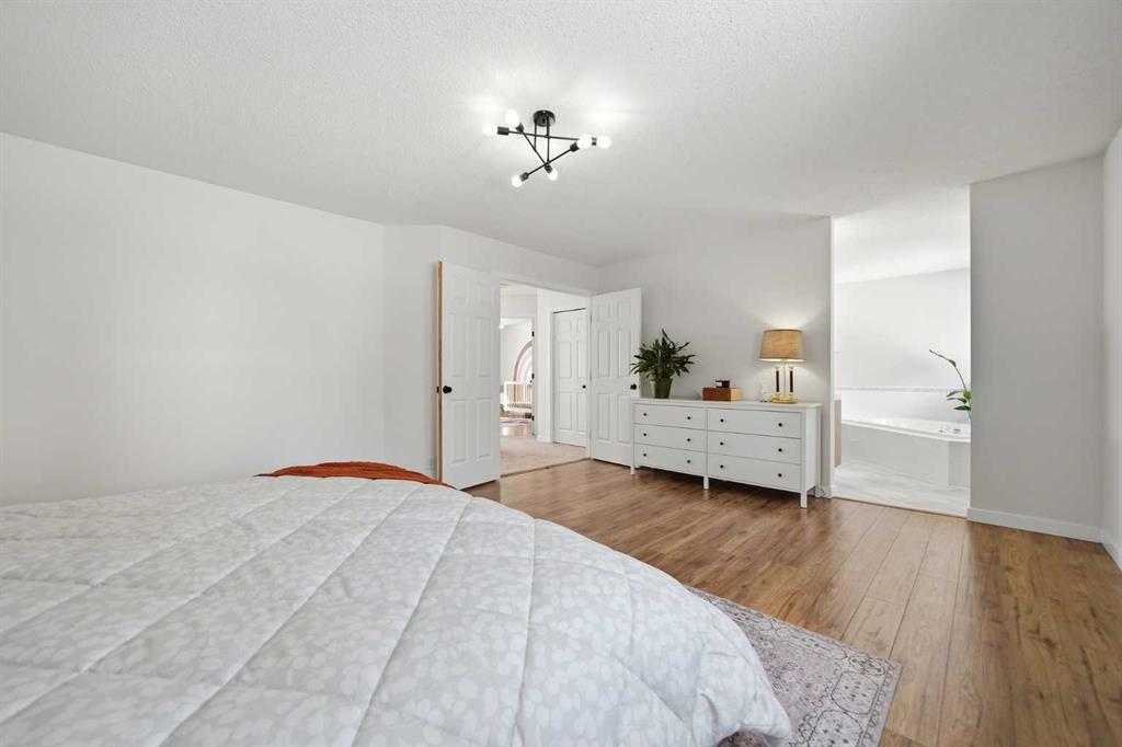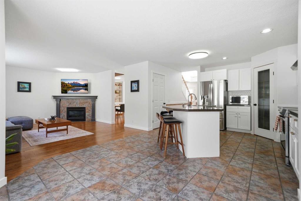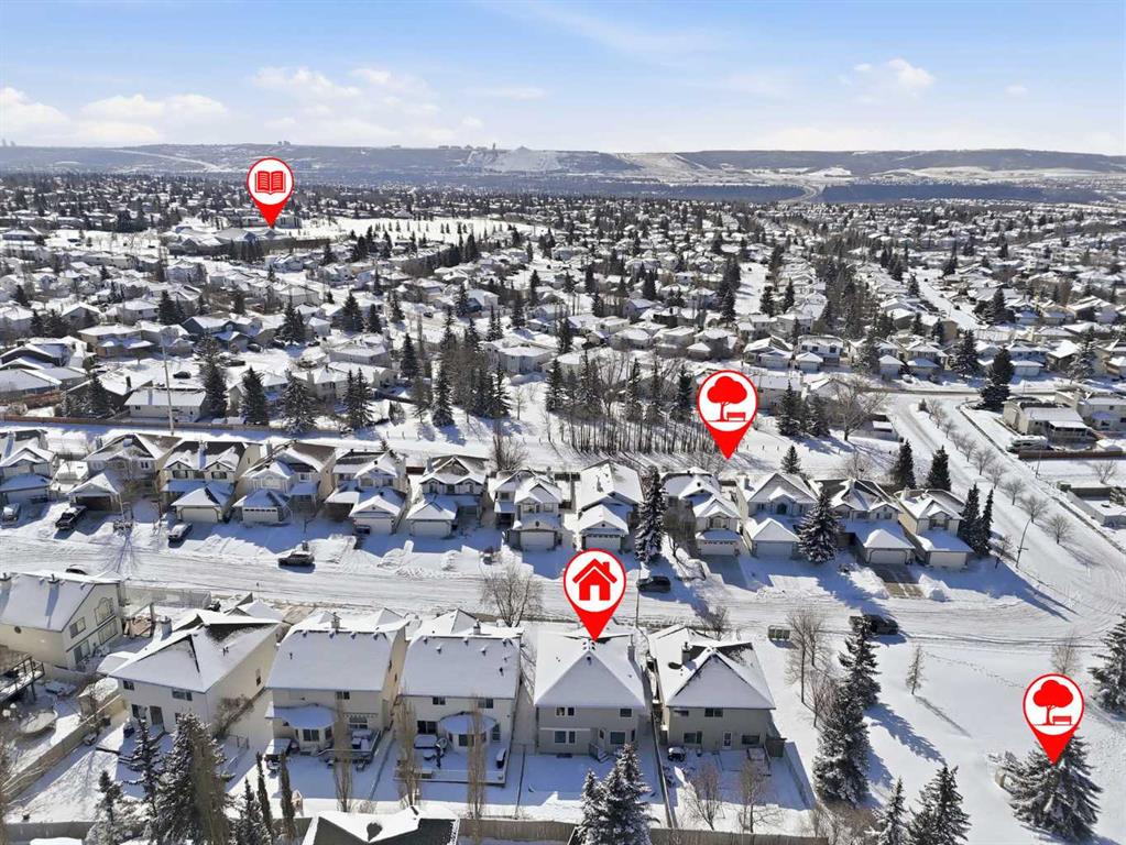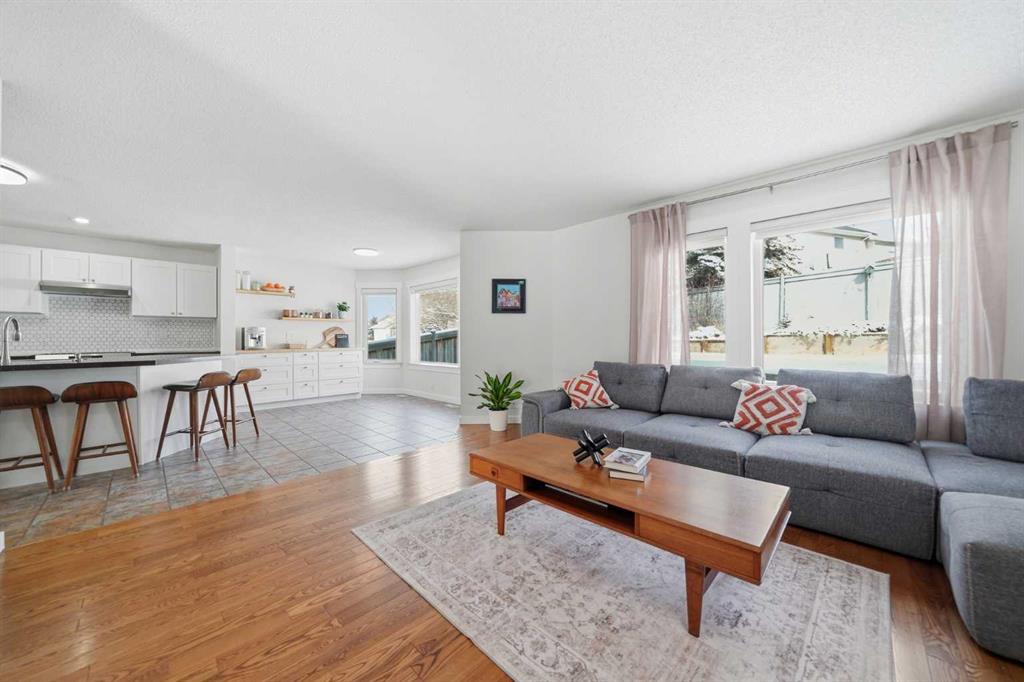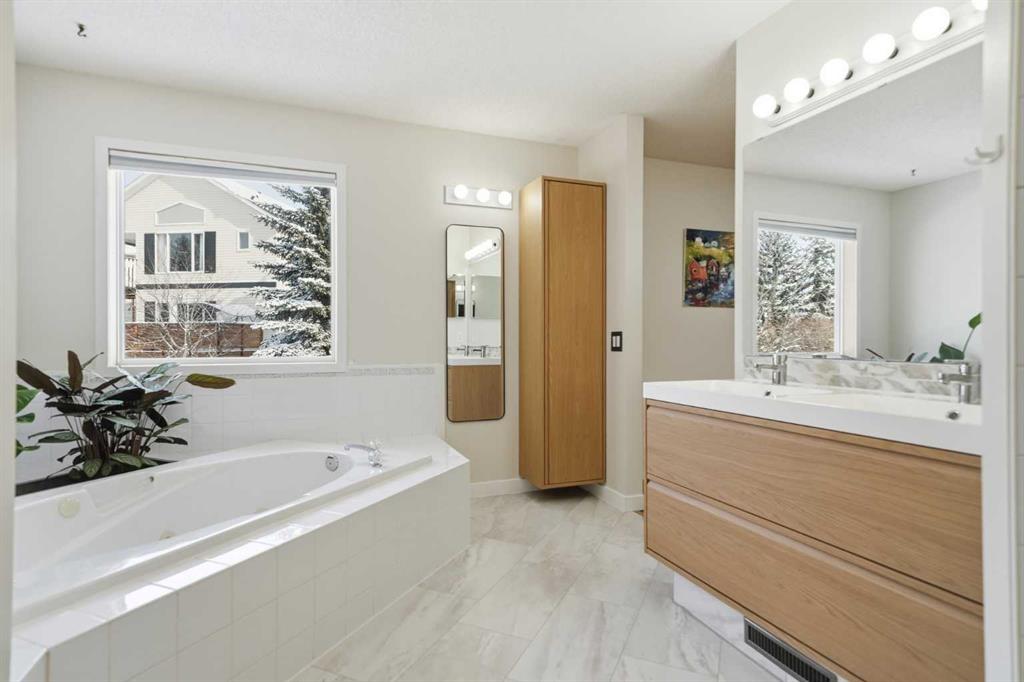 Beautifully updated and well-maintained home in Scenic Acres. Located in one of NW Calgary’s most desirable communities, move-in ready home offers a functional family layout, stylish updates, and major system upgrades already completed. With 4 bedrooms (3 up, 1 down), 3 and a half bathrooms and over 2,800 square feet of living space this home will not disappoint! The main floor features bright, inviting living spaces, a renovated kitchen with solid wood shaker-style cabinetry, built-in coffee bar, upgraded stove, dishwasher, and range hood, plus convenient main-floor laundry and a powder room. Upstairs you’ll find two generous secondary bedrooms, a spacious primary suite, and beautifully refreshed bathrooms, including a renovated main bath and an updated ensuite with new flooring and double vanity. The developed basement adds valuable living space with new subfloor and vinyl plank flooring, a flexible recreation area, an additional bedroom or guest space, a three-piece bathroom, and extra storage. Recent upgrades include triple-pane windows throughout the main and upper floors with remote-control blinds, high-efficiency furnace, high-efficiency air conditioner and heat pump, heat pump hot water heater, garage sub-panel with EV charging capability, fresh paint, new trim, updated light fixtures, and new door hardware. Outside, enjoy a private backyard setting ideal for summer evenings and family gatherings.