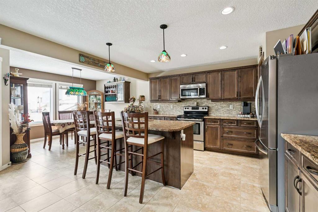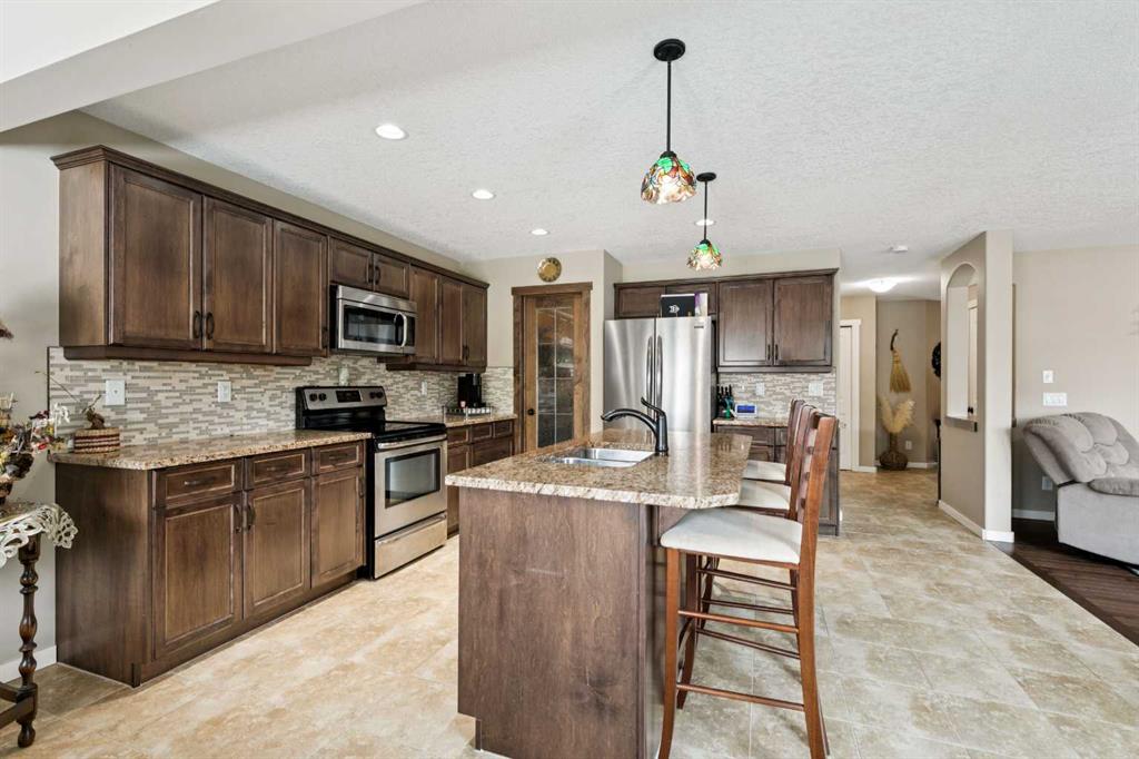 Meticulously maintained and lovingly cared for, this beautifully appointed two-storey home in the coveted King’s Heights community is being offered by its original owner. Built in 2011 and purchased directly from the builder, this property presents a rare opportunity—homes on this quiet street seldom come to market, with the last sale occurring in 2021. From the moment you step into the spacious foyer, you’ll appreciate the thoughtful layout designed for everyday family living. The open-concept main level blends connection and functionality seamlessly. The kitchen is both practical and elegant, featuring custom cabinetry, granite countertops, stainless steel appliances, a large central island with breakfast bar, and a walk-through pantry that connects directly to the mudroom and garage—making busy mornings and grocery runs effortless. The mudroom is a true highlight for growing families. Designed as a functional transition space, it offers ample room for coats, backpacks, sports equipment, and boots—keeping daily life organized and the main living areas clutter-free. With direct access to the pantry and kitchen, the flow is both intentional and efficient, perfectly suited for busy households. A separate dining area offers generous space for holiday gatherings and milestone celebrations, while the inviting living room with a gas fireplace creates the perfect setting for cozy evenings together. Step outside to what can only be described as an urban sanctuary. The beautifully curated backyard is a gardener’s dream—private, peaceful, and thoughtfully designed. Whether enjoying long summer evenings on the patio, gathering around the firepit with friends, or watching children play, this outdoor space is ready to create lasting memories. Upstairs, the spacious primary retreat comfortably accommodates a king-sized bed plus a seating area. The spa-inspired 5-piece ensuite features a soaker tub, standalone shower, dual vanities, and a generous walk-in closet. Two additional large bedrooms and another full 5-piece bathroom provide ideal space for growing families. The vaulted bonus room, with its dramatic wall of windows, is flooded with natural light and offers the perfect space for movie nights, homework sessions, or relaxed family time. Oversized windows throughout the home, all complete with custom blinds, invite abundant natural light into every room. A convenient 2-piece powder room completes the main level. The unfinished basement offers a blank canvas—an expansive space waiting for your creativity to design additional living areas tailored to your family’s needs. Located just steps from ponds, walking paths, parks, schools, and shopping, this home combines space, thoughtful upgrades, and lifestyle in one of Airdrie’s most sought-after family communities. A rare opportunity to put down roots in King’s Heights—move-in ready and built to grow with you for years to come. This home will not last long. Call your favourite realtor and book a private showing today!