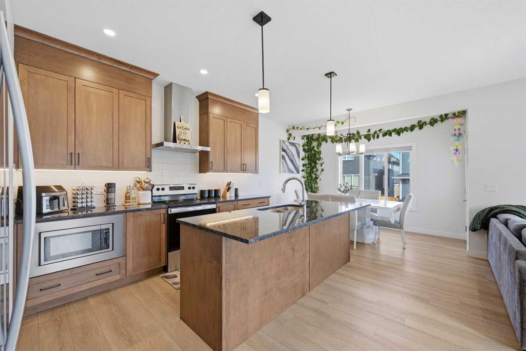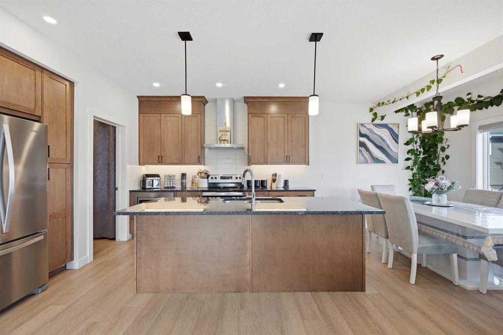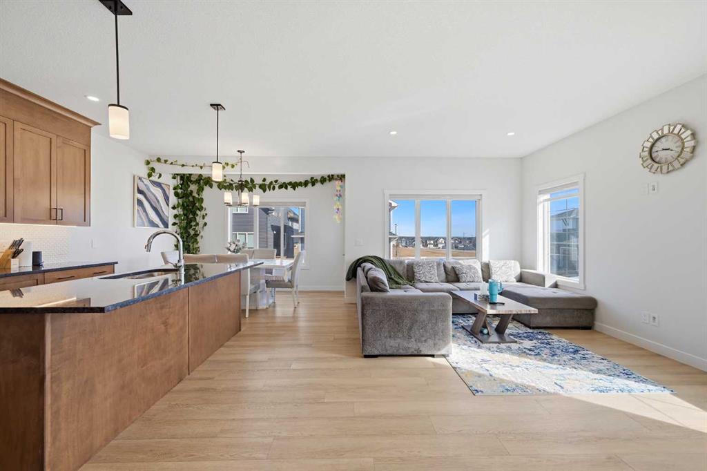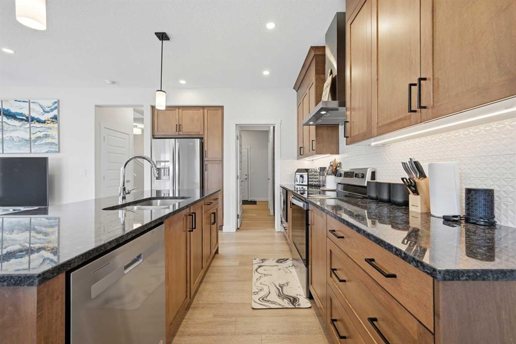 Welcome to 1448 Bayview Point SW — A Stunning 2023 Genesis-Built Home in the Heart of Bayview, Airdrie! Nestled on a desirable corner lot in the beautiful community of Bayview, this home offers over 2,000 sq ft of thoughtfully designed above grade area, loaded with upgrades throughout. With 3 bedrooms + bonus room, 2.5 bathrooms upstairs, and a 2-bed and full bath finished basement, this property is the perfect blend of style, comfort, and functionality. Step inside to a bright and welcoming main floor boasting 9' ceilings, neutral tones, and stunning luxury vinyl plank flooring flowing throughout. The heart of the home is the upgraded gourmet kitchen, complete with quartz countertops, a massive island, and premium finishes — a dream for any home chef. The generous dining area opens through patio doors to the backyard, seamlessly blending indoor and outdoor living. Relax and unwind in the spacious living room, where large windows flood the space with natural light and a cozy fireplace sets the perfect ambiance for entertaining family and friends. Upstairs, the primary bedroom is a true retreat, featuring a luxurious 5-piece ensuite with quartz countertops, a freestanding soaker tub, a separate shower, and a walk-in closet. Two additional generously sized bedrooms — each with their own walk-in closets — a full bathroom with quartz countertops, a convenient upper-floor laundry room, and a large bonus room complete the second floor. The fully finished basement with a separate side entrance features 2 bedrooms, a full kitchen, a full bathroom, and separate laundry to complete the home. Outside, enjoy the corner lot with added space and privacy, and take advantage of the playground directly behind the property — perfect for families with young children right at your doorstep. Located in the sought-after community of Bayview, this home combines modern finishes, smart layout, and an unbeatable location. Homes like this don't last — book your private showing today!