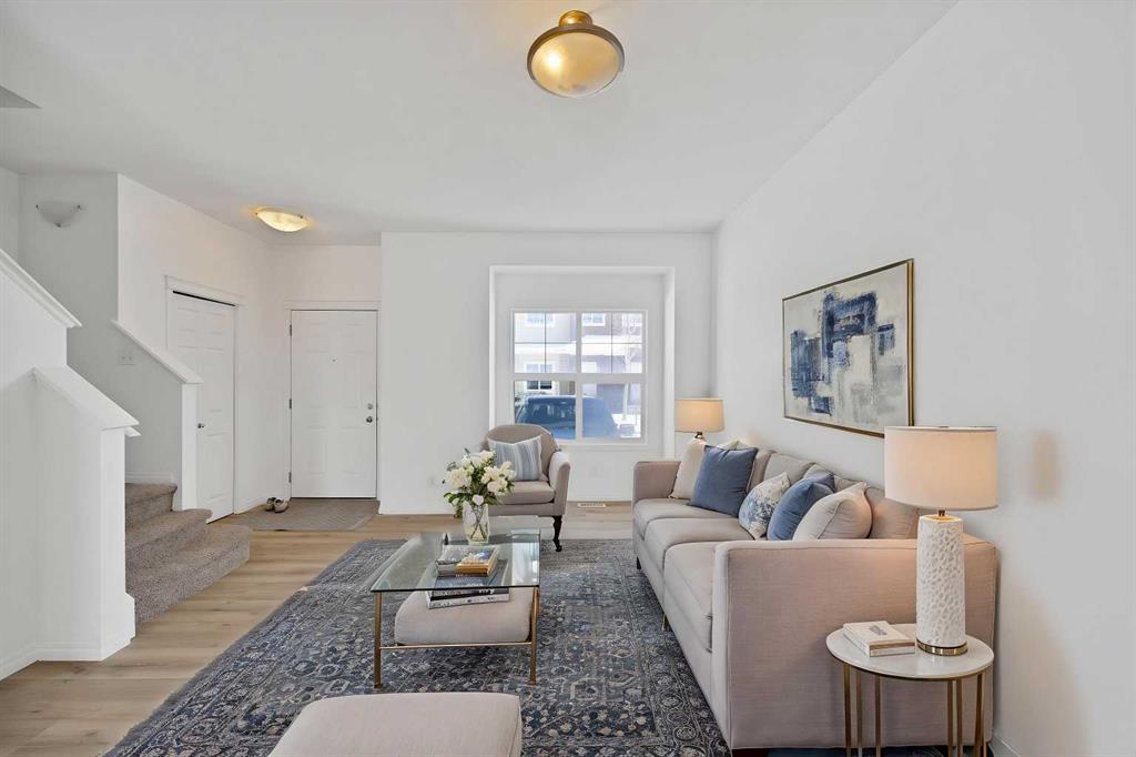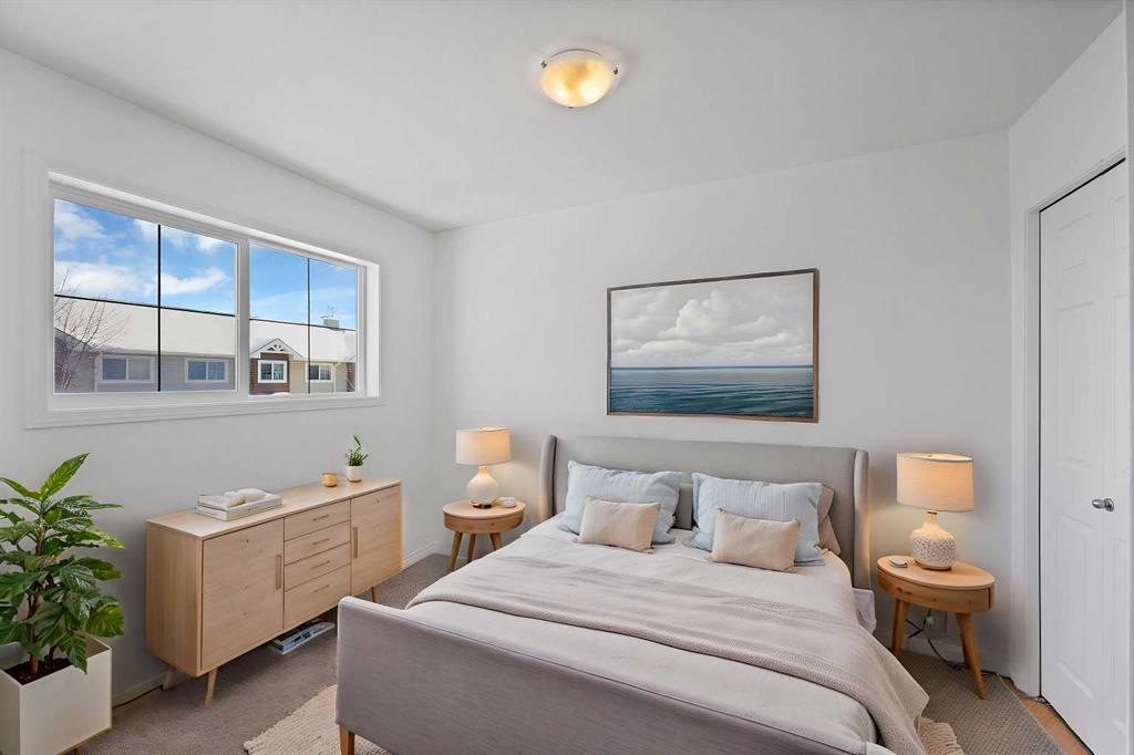 Welcome to Tara Springs. This **move-in-ready townhouse offers 1,151 sqft across the top two levels** and has been beautifully refreshed, making it a fantastic opportunity for buyers looking for a clean and updated home in a convenient location. Recently updated with **brand new paint, new flooring, and new carpet throughout**, the home feels bright, modern, and ready for its next owners without the need for immediate upgrades. Parking is very convenient with **your assigned stall located right outside the front entrance**, while **visitor parking is available on both sides of the unit** for guests. The main floor features a **bright and functional open-concept layout** with large windows that allow natural light to fill the living space. The kitchen offers ample cabinetry, practical counter space, and a breakfast bar that flows into the dining area, creating a comfortable space for both everyday living and entertaining. The dining area connects seamlessly with the living room, making the main floor ideal for gathering with family and friends. Upstairs, you will find **three well-sized bedrooms and two full bathrooms**, including a spacious primary bedroom complete with a **walk-in closet and private ensuite**. The additional bedrooms offer flexibility for family members, guests, or a home office. The **unfinished basement** includes laundry and storage while providing excellent potential for future development to suit your needs. Adding even more value, **roof replacement work in the complex is currently in progress**, meaning buyers will benefit from **brand new roofing without the added cost**. Ideally located close to shopping, restaurants, schools, parks, public transit, and the LRT, this home offers everyday convenience and is a great opportunity for **first-time buyers, downsizers, or investors** looking for a well-maintained property in a vibrant community.