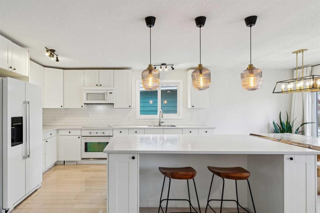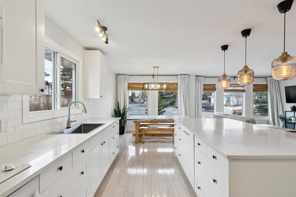 Welcome to this beautifully updated 4-level split offering over 2,100 SQUARE FEET OF DEVELOPED SPACE, perfectly situated on a quiet cul-de-sac on a large pie-shaped lot! PRICED UNDER $670K, this home delivers incredible value with OVER $100,000 IN RENOVATIONS and thoughtful upgrades throughout. Step inside to discover a stunning renovated kitchen featuring sleek quartz countertops and panel-ready appliances that blend seamlessly with the cabinetry for a clean, modern look. Gorgeous hardwood flooring flows throughout the main and lower levels, adding warmth and elegance to the home. With 4 SPACIOUS BEDROOMS PLUS A VERSATILE DEN and 3 BATHROOMS, there’s plenty of room for families of all sizes. Enjoy year-round comfort with CENTRAL A/C, and cozy up around the charming WOOD-BURNING FIREPLACE. One of the home’s standout features is the MASSIVE ROOFTOP PATIO above the garage—an entertainer’s dream! Complete with stair access leading down to the backyard, where you’ll find an additional patio space, perfect for hosting or relaxing in your private outdoor retreat. The home is well maintained with TONS OF UPDATES including: newer windows and doors, new trim, interior painted 2024, new fence, new dryer 2025, updated furnace, newer roof shingles(prior to 2022), extensive landscaping completed, front walkway and brick 2024 There is also a STORAGE ROOM on the lower level. Located just steps from two schools, a block from a playground, and a short walk to the Shawnessy C-Train and a short drive to Superstore, Starbucks, Landmark Theatre and many restaurants. This home combines lifestyle, convenience, and community. A rare opportunity in a prime location—don’t miss your chance to call this one home!