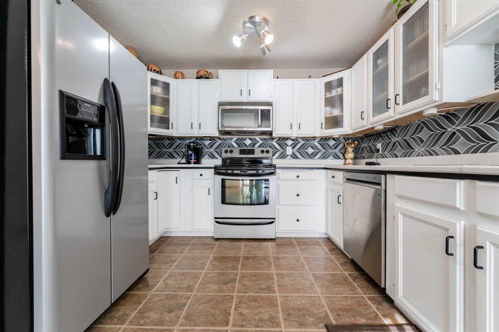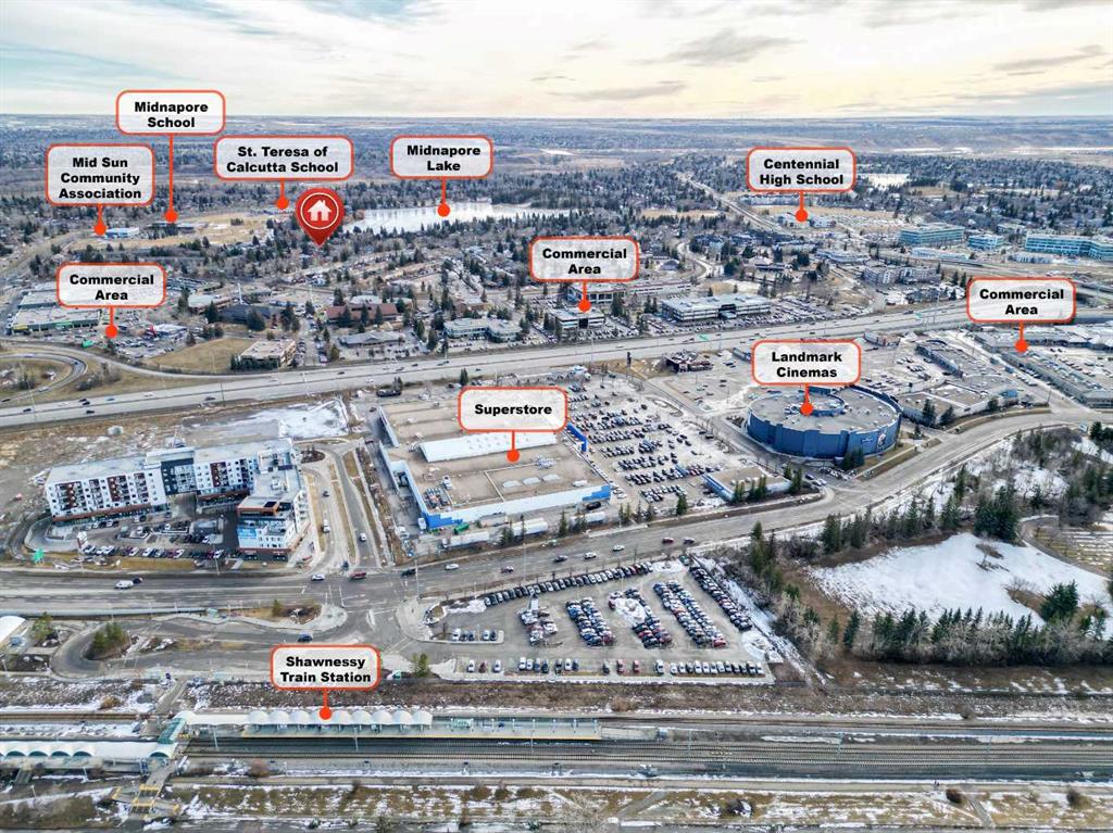 RARE OPPORTUNITY in the sought-after lake community of Midnapore — a semi-detached home with NO CONDO FEES. This home is ONLY attached by the garage wall, offering the feel and privacy of a detached property. This well-maintained home offers a bright and functional layout. The kitchen features stainless steel appliances, including a NEWER dishwasher (2022), along with plenty of cabinetry and natural light. The inviting living room showcases a beautiful stone-faced wood-burning FIREPLACE, creating a warm and comfortable focal point. Just off the living room, a 3-season SUNROOM provides the perfect transition to the patio and backyard. A 2-piece powder room completes the main floor. Upstairs features a spacious primary bedroom with his-and-hers closets and direct access to the full 4-piece bathroom, a well-sized second bedroom, and a generous BONUS ROOM ideal for a family room, home office, or easily converted into a THIRD bedroom. The DEVELOPED basement adds additional living space with a recreation/media area (projector and electric fireplace included) and a combined laundry and full bathroom featuring NEW washer and NEW dryer (2025). The BEAUTIFULLY LANDSCAPED yard is designed for outdoor enjoyment, featuring deck space, a GAS LINE for BBQ, a built-in 6-person HOT TUB, a SPRINKLER SYSTEM, and a large 16' x 8' storage SHED. Recent updates include a NEW hot water tank (2026), NEW furnace motor (2024), upgraded electrical switches and plugs, refreshed paint throughout, and NEW eavestroughs. The home also features an updated SECURITY SYSTEM (2022). Parking includes an ATTACHED GARAGE, driveway, and street parking. Enjoy year-round access to Midnapore Lake with swimming, paddleboarding, fishing, skating, movie nights, and community events — a lifestyle RARELY available.