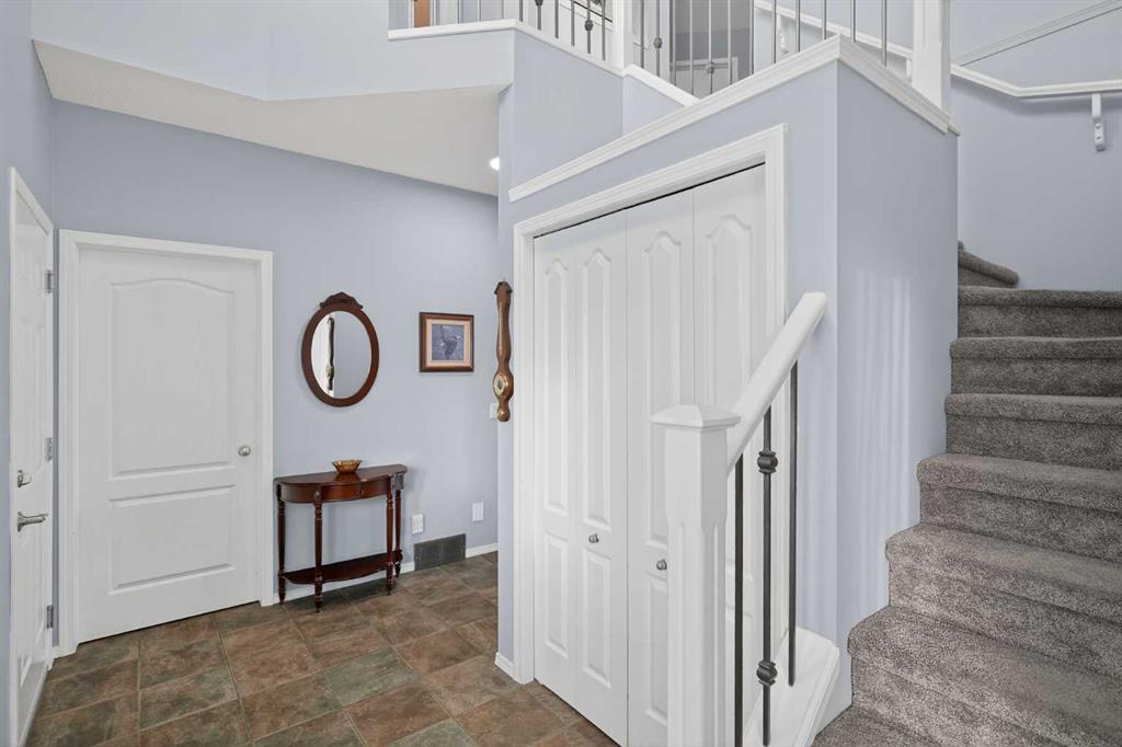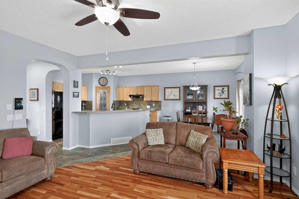 Welcome to Silver Creek. One of Airdrie's most sought after communities. This 3 bedroom, 2.5 bathroom, fully finished home truly does have it all. Gorgeous curb appeal welcomes you as you approach the home with mature trees and a quaint garden. Entering the home you are greeted with high ceilings in the entryway, tile floors leading you into your open floor plan. The kitchen is a chef's dream with ample counter space, newer appliances, tons of cabinetry, an island, making it the perfect area for entertaining or cooking at home with the family. The dining room is next to the kitchen and overlooks not only your north facing backyard but your expansive living room as well. A gas fireplace illuminates the living room adding a great feeling of comfort and gives you a great area for home movies or board games. Your half bathroom and main floor laundry area finish off the main level before heading upstairs. The primary suite is large enough for a king size bed as well as all of your additional bedroom furniture and features a huge walk-in closet, spa inspired ensuite bathroom and new triple pane window. The second and third bedrooms are also a great size with large closets and your 4 piece second bathroom completes the upstairs. The basement is fully finished with a massive entertainment space, office area and wet bar, perfect for game nights or having friends over. The back yard is really what sells this home. Unobstructed north views of expansive Alberta wilderness brings wildlife to your door and stunning sunrises along with peace, quiet and privacy. Sitting on your deck with a nice glass of wine or coffee in the morning will have you never wanting to leave. Airdrie is a growing city with great schools, shopping, parks, pathways and access to all of the amenities that you might need. THE SELLERS ARE GENEROUSLY INCLUDING A SNOW BLOWER AND LAWN MOWER SO YOU CAN ENSURE YOUR NEW HOME IS WELL MAINTAINED. Do not miss out on this opportunity to own this exclusive home backing on to one of the most beautiful views in the entire city.