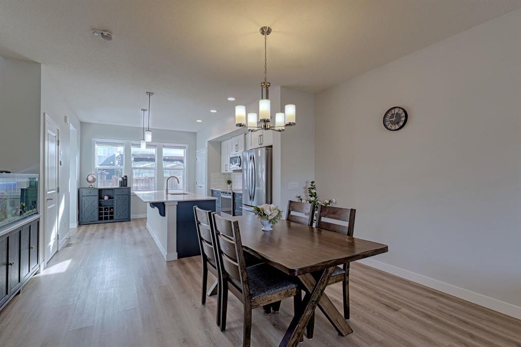 Welcome to 132 Wolf Willow Blvd SE, a stylish and thoughtfully upgraded duplex built by Shane Homes, offering the popular Vista floor plan in the vibrant community of Wolf Willow. Designed with modern living in mind, this home features a bright, open-concept layout filled with natural light and contemporary finishes throughout. The main level showcases a beautifully appointed kitchen that will impress any home chef, complete with a large central island, quartz countertops, Whirlpool stainless steel appliances, and a French door refrigerator with an interior ice maker. The eye-catching two-tone cabinetry, upgraded drawer storage, and thoughtful design details elevate both style and functionality. The adjoining dining area and spacious living room create a seamless flow—perfect for entertaining or relaxing—with added lighting and window coverings enhancing the space. Upstairs, the primary retreat offers dual walk-in closets and a private 3-piece ensuite. Two additional generously sized bedrooms are complemented by a well-finished 4-piece bathroom featuring quartz counters. A conveniently located upper-level laundry room with Whirlpool washer and dryer adds everyday practicality for busy households. This home is loaded with upgrades, including energy-efficient LED lighting, additional lighting in bathrooms, soft-close cabinetry throughout, and custom storage solutions. The integrated Smart Home package includes a Nest doorbell, camera, thermostat, smart lock, Google Mini speaker, smart plugs, and dimmable lighting for both the kitchen island and front porch. Step outside to enjoy the sunny, fully landscaped backyard featuring a large 20' x 14' composite deck and a BBQ gas line—ideal for summer gatherings. Located in the sought-after community of Wolf Willow, residents enjoy access to scenic pathways, the Bow River, nearby environmental reserves, and close proximity to Fish Creek Park and Blue Devil Golf Club. The neighbourhood also offers convenient local amenities including shopping, dining, childcare, and more. A perfect blend of modern design, location, and value—this home is ready for you to move in and enjoy. Book your showing today and explore the 3D tour!