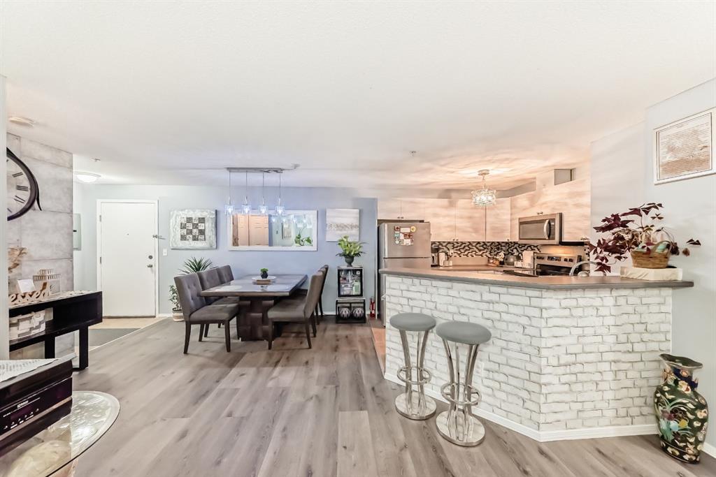 Welcome to Unit 3205 at 16969 24 Street SW — a beautifully maintained and thoughtfully updated condo offering comfort, style, and exceptional value. This spacious 2-bedroom, 2-bathroom home features a functional layout ideal for professionals, downsizers, or investors. The modern kitchen showcases sleek finishes and ample cabinetry, seamlessly flowing into the open-concept living and dining area, where rich LVP flooring adds warmth and elegance. The primary bedroom offers excellent space and privacy, complete with a walk-through walk-in closet leading to a full ensuite. The second bedroom and bathroom are perfectly positioned for guests or family. Enjoy a sunny south-facing patio, perfect for relaxing all season long. Additional features include in-suite laundry, one titled underground parking stall, and a rare titled storage locker (8.5 ft x 8.5 ft). Located in the desirable community of Bridlewood, close to shopping, schools, parks, and major roadways, this move-in-ready unit offers the perfect blend of comfort, functionality, and convenience. Don’t miss your opportunity to call it home.