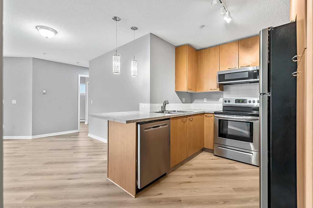 Stop renting and start building equity in a home that truly has it all. Perfectly located just steps from Mount Royal University, this beautifully updated 2 bedroom + den, 2 bathroom condo offers incredible value—including the rare bonus of TWO titled underground parking stalls conveniently located near the elevator. Whether you're a student, investor, first-time buyer, or downsizer, this is the opportunity you’ve been waiting for. Inside, you’re welcomed by a bright and inviting open-concept living space filled with natural light from large west-facing windows. The cozy gas fireplace creates the perfect place to unwind after a long day, while the stylish kitchen features sleek stainless steel appliances, generous counter space, and a casual dining area ideal for everything from quick breakfasts to hosting friends. The smart, well-designed layout places the bedrooms on opposite sides of the living area, creating privacy that’s perfect for roommates, guests, or working from home. The spacious primary retreat features a walk-in closet and private ensuite, while the second bedroom sits conveniently beside a full guest bath. A versatile den provides the perfect space for a home office, study nook, or creative workspace. Step outside onto your large covered patio with a gas BBQ hookup—a fantastic extension of your living space where you can relax, grill, and enjoy warm summer evenings. This well-managed building offers amenities that enhance everyday living, including a fitness centre, social room, bike storage, and a beautifully landscaped courtyard with gazebo—perfect for enjoying a quiet moment outdoors. The location is unbeatable. Walk to Mount Royal University, coffee shops, restaurants, pubs, and shopping, with quick access to Glenmore Park, major transit routes, Crowchild Trail, Glenmore Trail, and downtown. Smart, stylish, and superbly located—this is the kind of home that makes owning feel easy.
