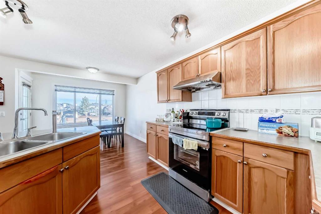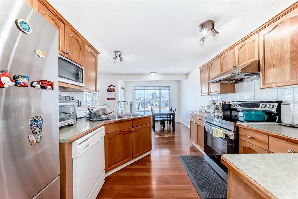 Great value front drive home in a highly desired community. NEW paint all over. Very well maintained conditions. This home features an inviting open-concept layout with a spacious great room and living area. The oak kitchen offers both warmth and functionality, complemented by a bright dining nook and convenient rear entry leading to the deck—perfect for indoor-outdoor living. The main floor also includes a well-placed laundry room for added convenience. The front foyer welcomes you with a built-in bench and elegant oak railings that continue throughout the home, showcasing fine craftsmanship. Upstairs, you will find three generously sized bedrooms, including a comfortable primary suite complete with a walk-in closet and a private four-piece ensuite bath. Outside, the property is beautifully landscaped and fully fenced, and the double attached garage provides ample parking and storage. Quality workmanship is evident throughout, making this home both stylish and functional. Come and visit!