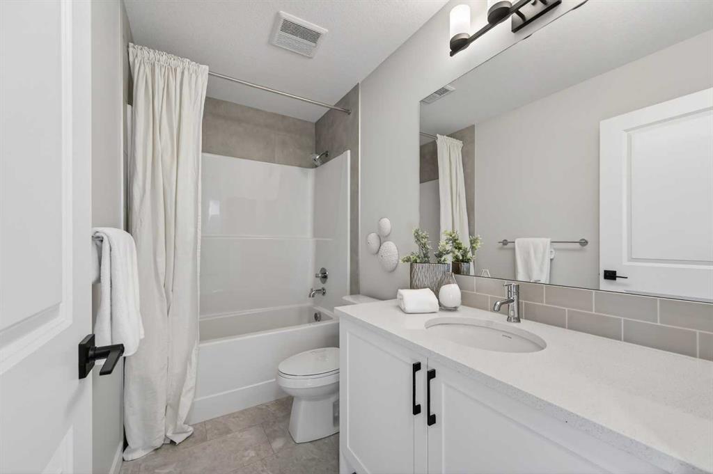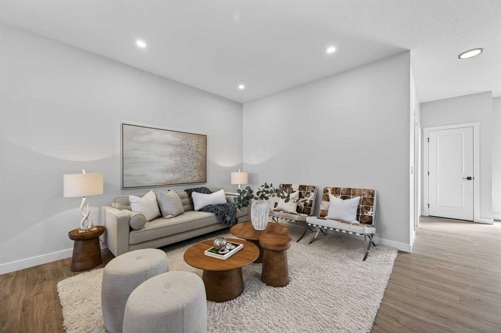 Welcome to 420 Lewiston Landing. This well-laid-out, brand-new Genesis home offers over 1,700 sq ft of above-grade living space. The main floor features a bright, open living and dining area with a functional kitchen that includes ample prep space, beautiful cabinetry, and sleek stainless steel appliances. The main floor is a dream for entertaining, and those summer evenings are calling you with direct access to the rear deck and backyard. A convenient main-floor bedroom and a full 3-piece bath add flexibility for guests, family, or a home office. Upstairs, you’ll find three bedrooms, including a spacious primary with a walk-in closet and a private ensuite. Two additional bedrooms share a full bath, and the upper laundry keeps daily routines simple. The lower level remains undeveloped, offering 9' ceilings and a side entrance, providing a blank canvas for future plans, whether you’re considering additional living space, a gym, or extra storage. Lewiston is a new, award-winning master-planned community in Northeast Calgary, Alberta, designed to blend nature with urban convenience. Located near Stoney Trail and Deerfoot Trail, it offers quick access to downtown (20 mins) and the airport making this a great place to call home. *RMS has been applied to construction plans provided by the builder and taxes are to be assessed.