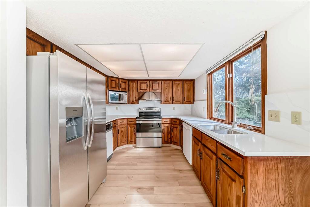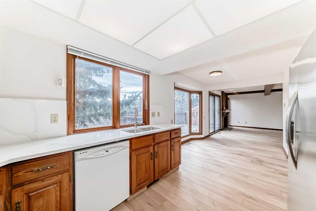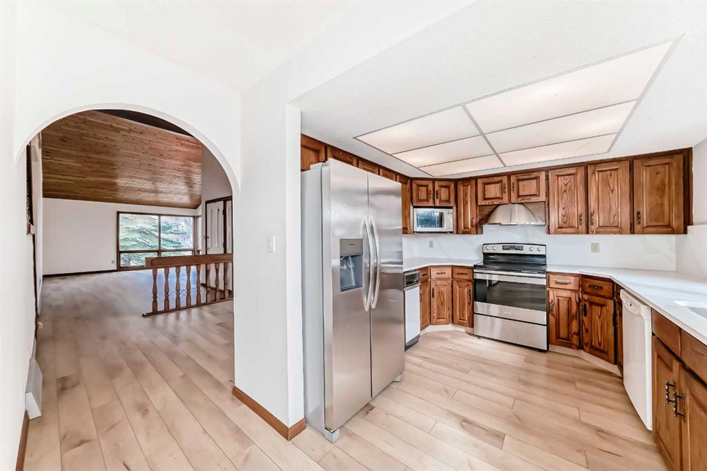 Located in the prestigious community of Strathcona SW, this exceptional home offers the perfect blend of elegance, space, and everyday functionality—just 15–20 minutes’ drive to Downtown Calgary and 6-7 minutes' drive to 45th Street LRT Station. Known for its upscale atmosphere, beautiful surroundings, and strong family appeal, Strathcona is one of Calgary’s most sought-after neighborhoods. This spacious property features over 2,200 sq. ft. of above-grade living space, complemented by a fully developed basement, offering a total of five bedrooms and 3.5 bathrooms. The upper level boasts four generously sized bedrooms, including a bright and airy primary suite with its own private balcony—perfect for relaxing and enjoying the serene surroundings. The main floor welcomes you with soaring ceilings that enhance the sense of space, along with brand-new vinyl plank flooring and fresh paint throughout, creating a modern and move-in-ready feel. The home is equipped with new appliances, including a refrigerator, washer, and dryer, adding both convenience and value. A double attached garage provides ample parking and storage space. The fully finished basement offers incredible flexibility, featuring a large bedroom, a spacious recreation area, a full bathroom, and a separate kitchen—ideal for extended family living or potential rental income. Step outside to a beautifully designed terraced backyard with a solid retaining wall, backing directly onto a picturesque ravine. This rare setting offers stunning views, exceptional privacy, and a peaceful connection to nature—truly a dream home environment for families seeking both comfort and lifestyle.